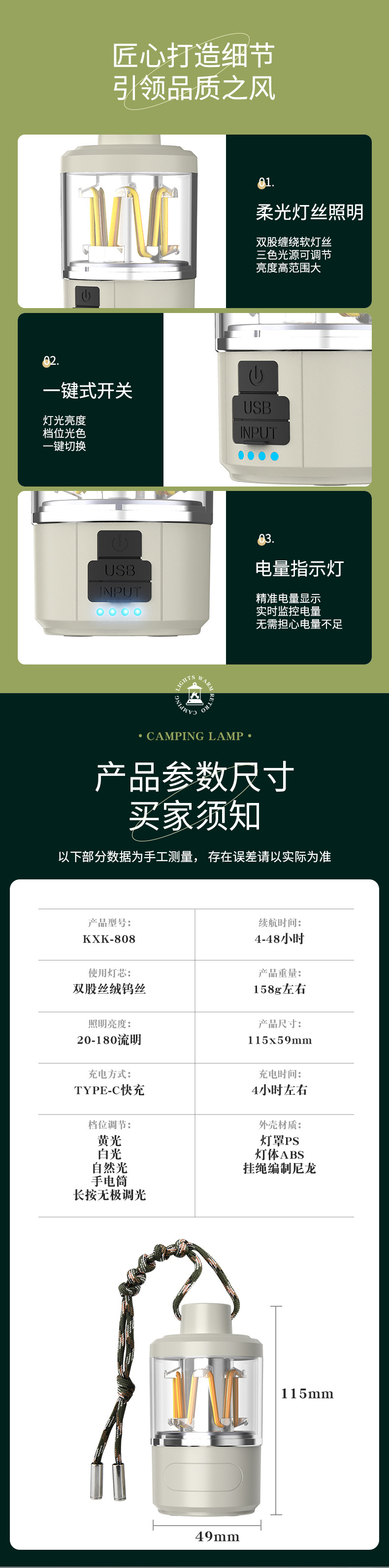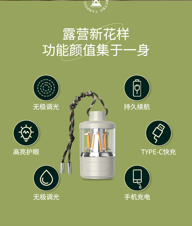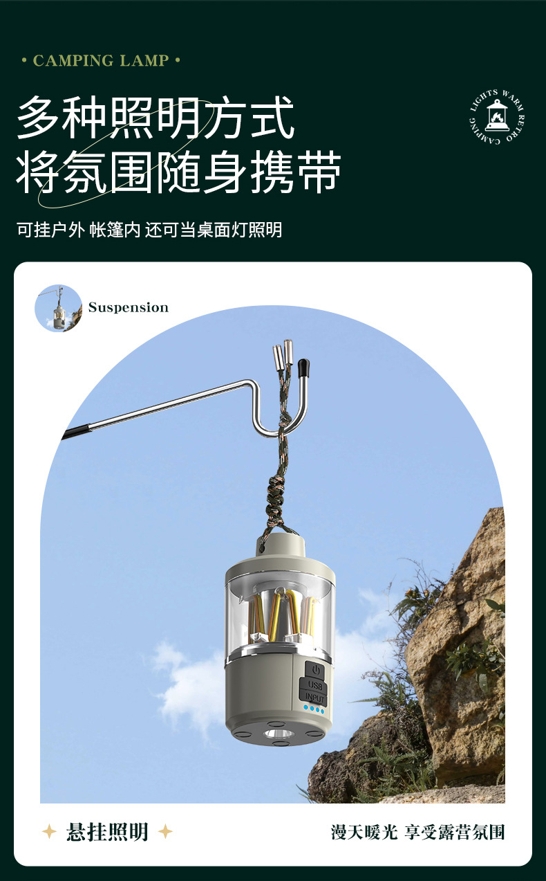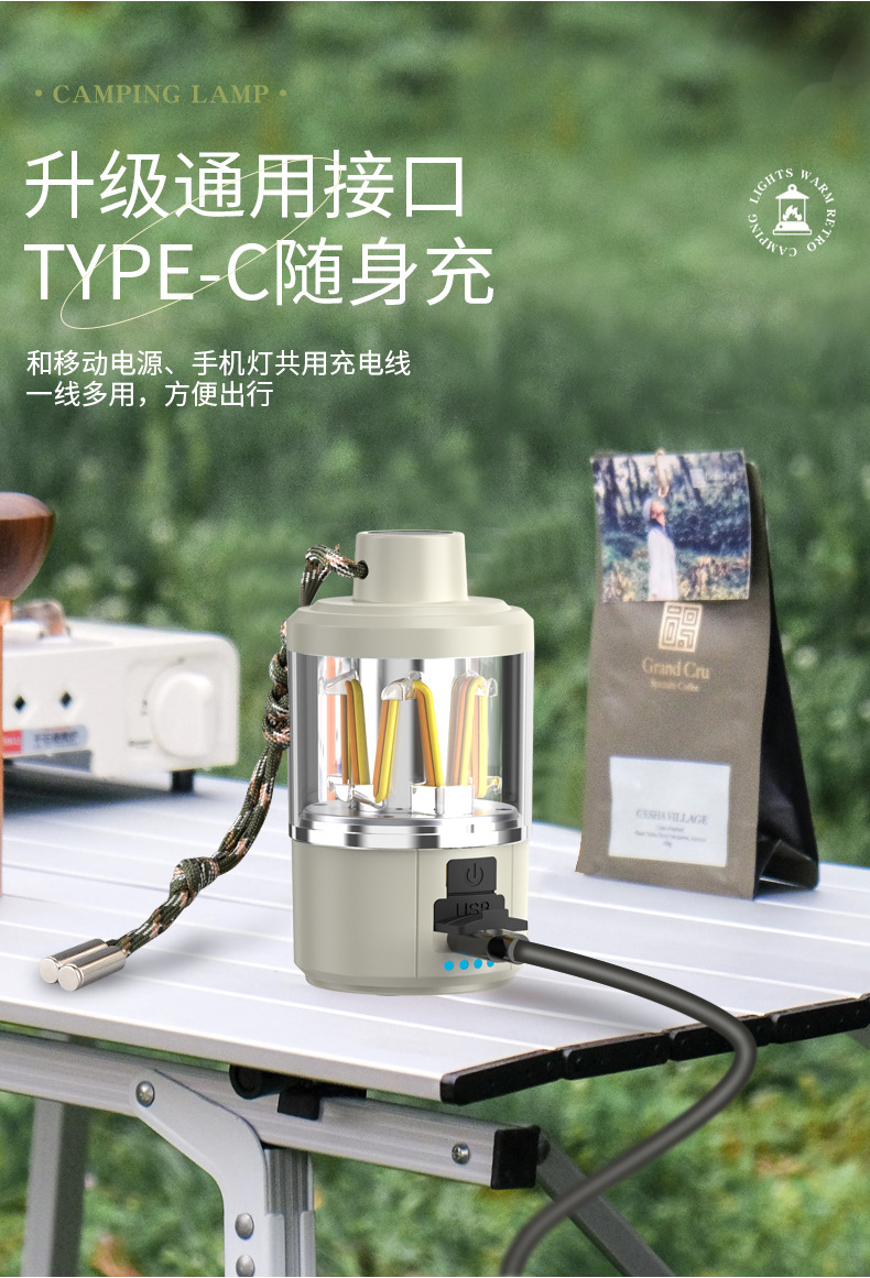 Luz de camping de luz suave transfronteriza súper larga resistencia carga rápida atenuación de tres velocidades Luz de camping luz de trabajo para acampar al aire libre