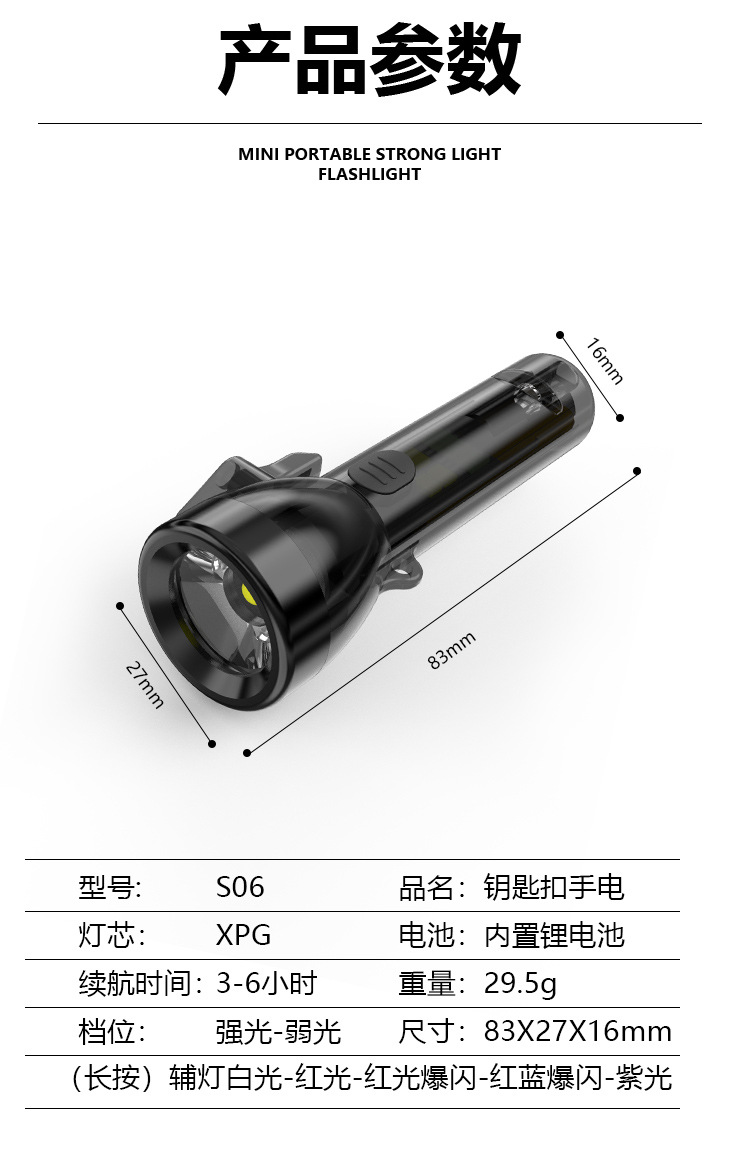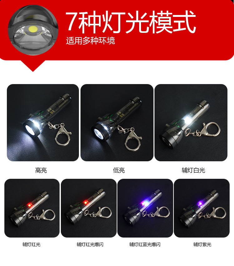 Llavero al aire libre transfronterizo luz de la herramienta de emergencia luz multicolor luz fuerte linterna ultra-pequeña linterna portátil