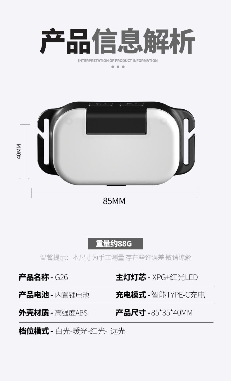 | Número de artículo | G26 cuadrado COB luz de cabeza |