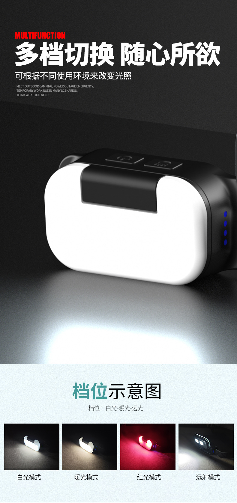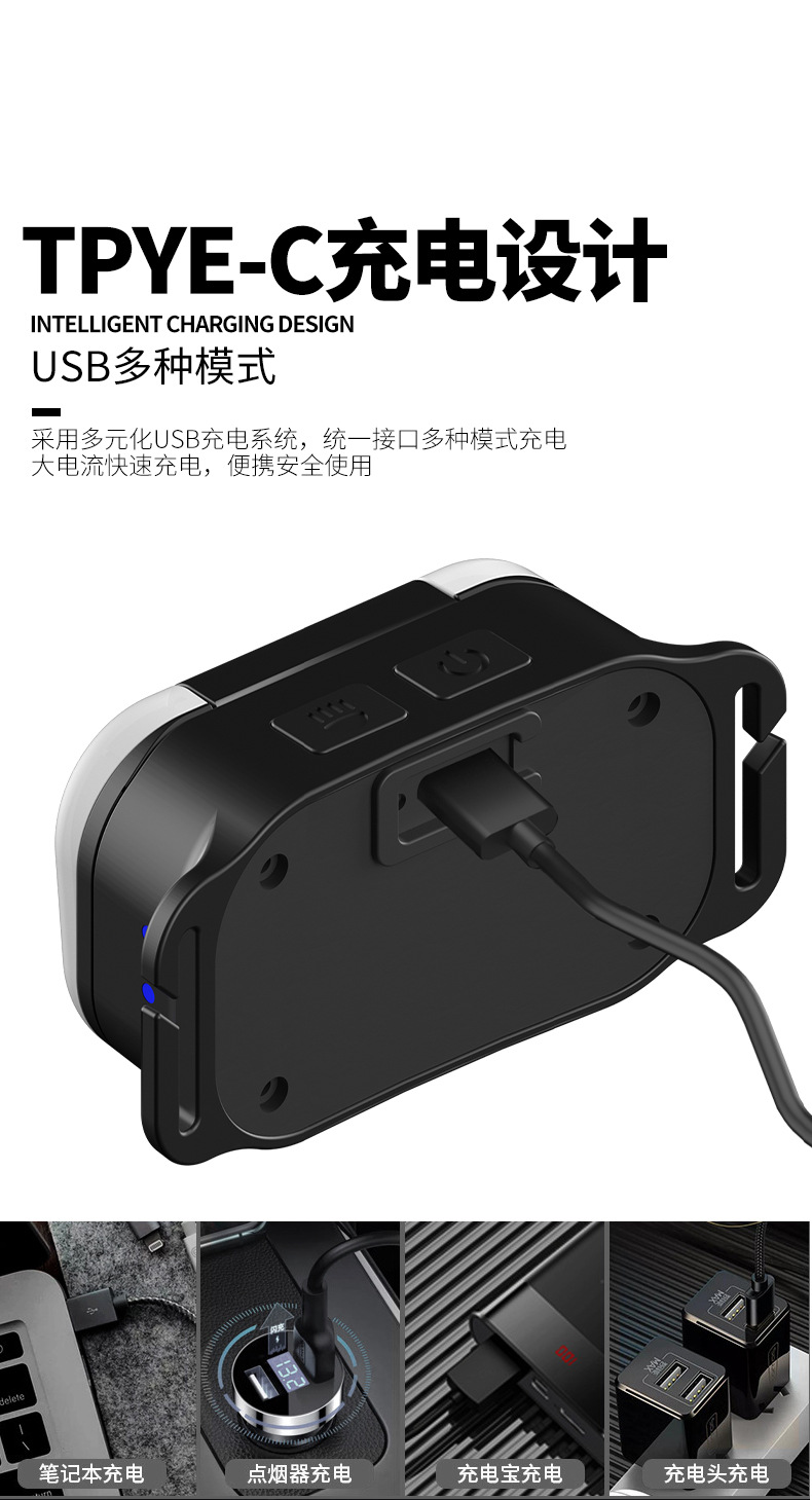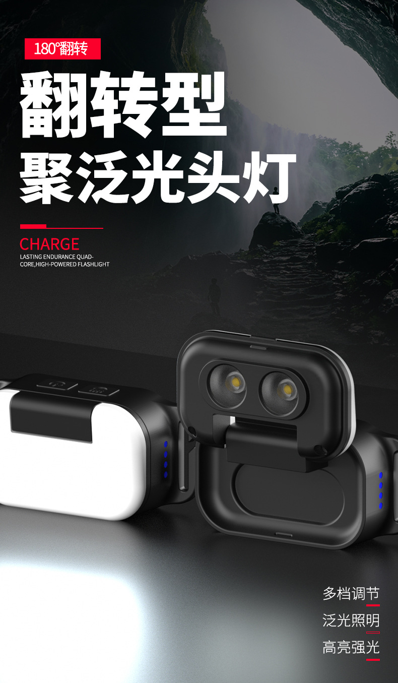 Transfronteriza luz eléctrica fuerte luz de cabeza 180 ° ajuste de fichaje inundación luz de cabeza a prueba de agua luz de reparación de cabeza de trabajo