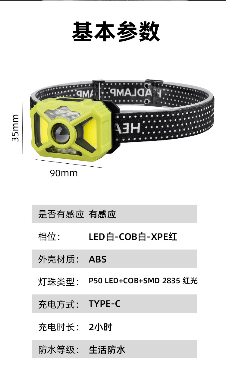 Transfronterizo inteligente inducción alta luz luz de cabeza de doble interruptor multi-granos portátil al aire libre trabajo de bicicleta aventura luz de cabeza