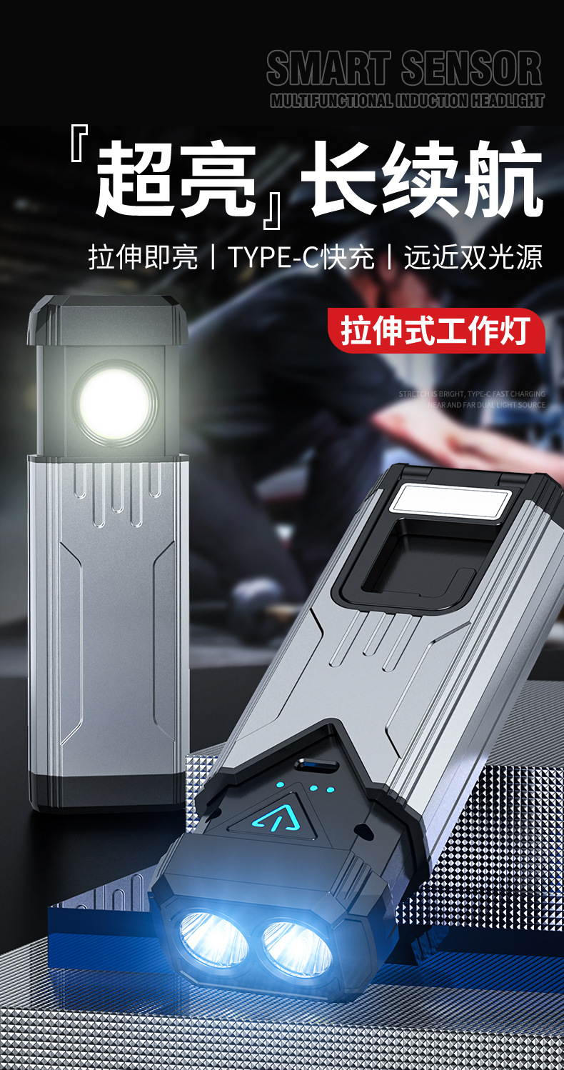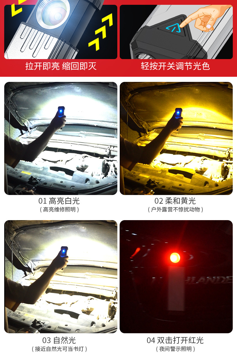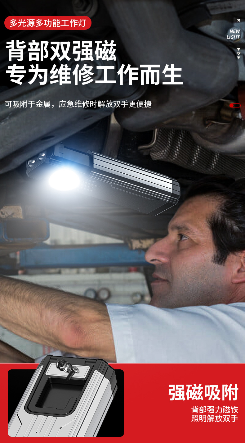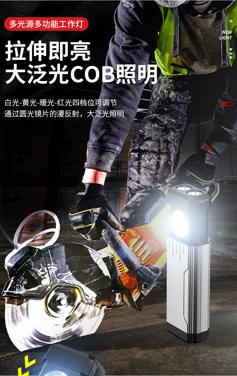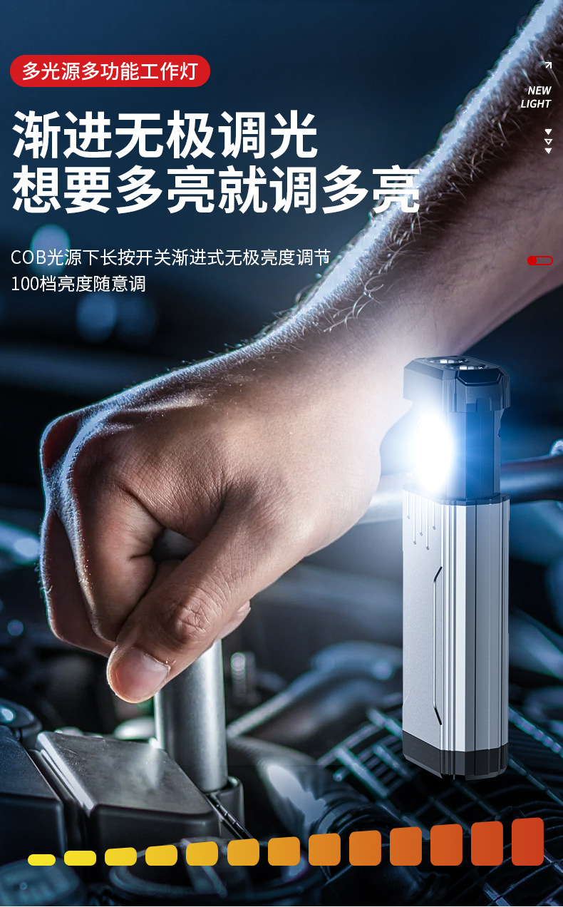 Interruptor de estiramiento de lámpara de trabajo portátil transfronteriza sin polar atenuación ultra brillante portátil de espalda magnética al aire libre reparación de automóviles