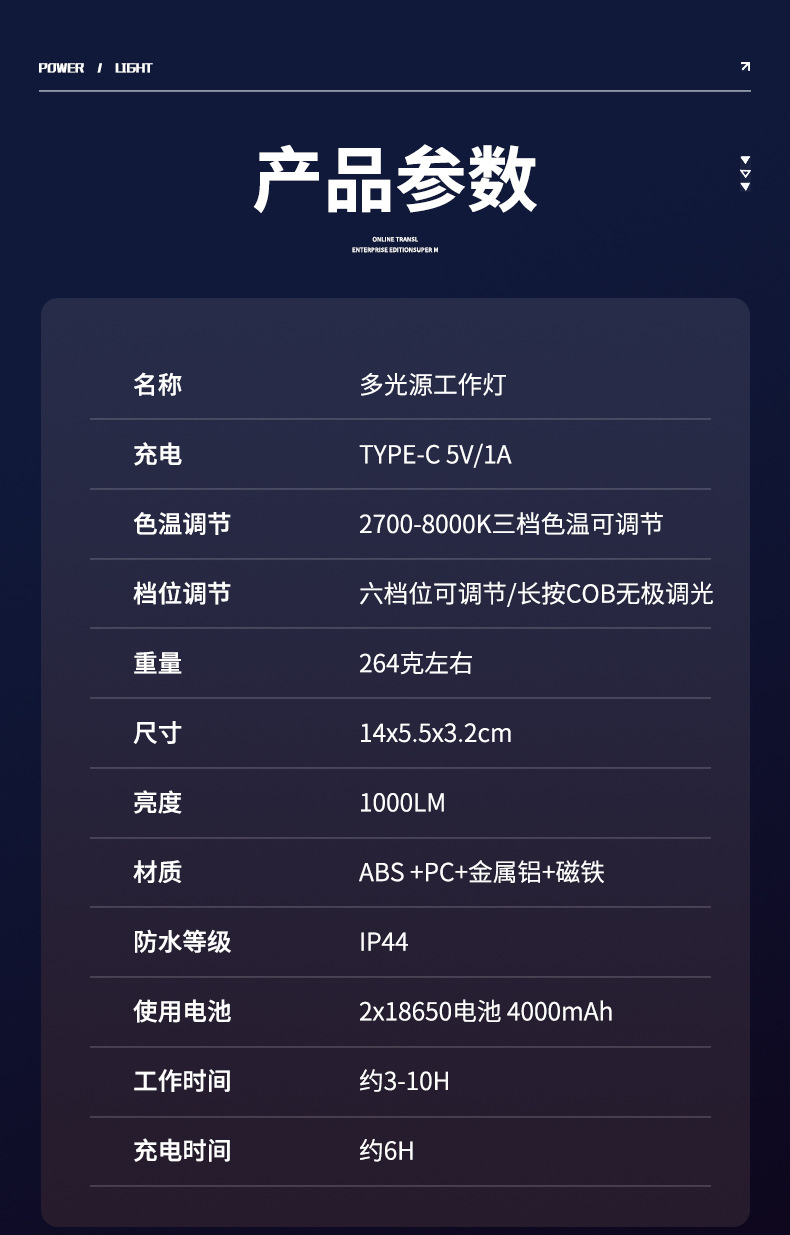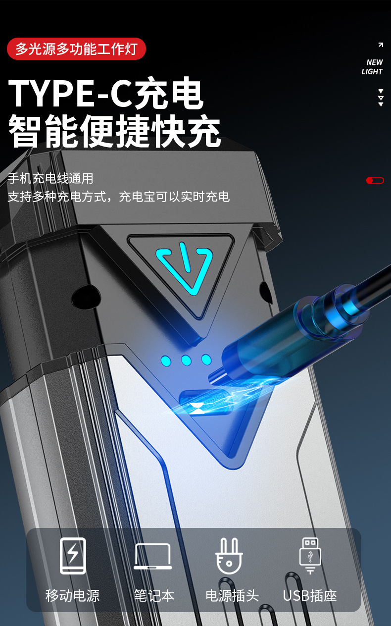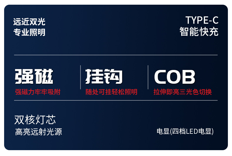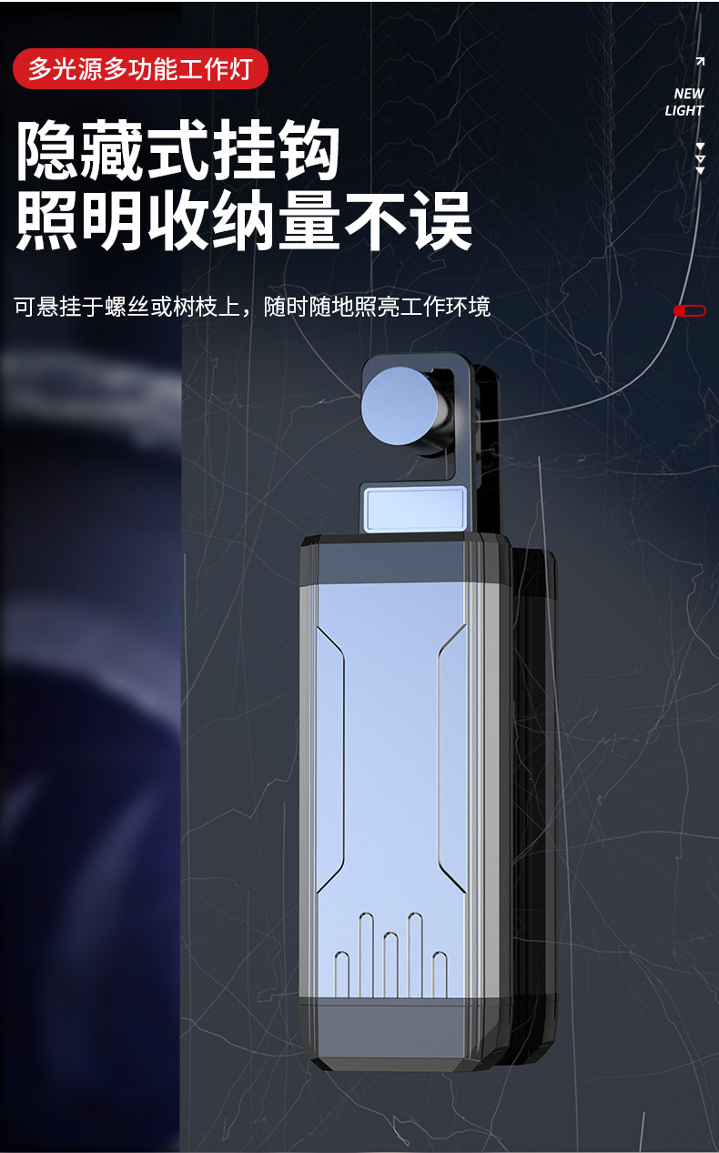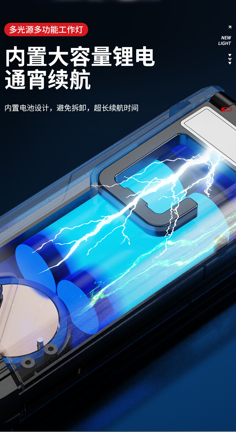 Interruptor de estiramiento de lámpara de trabajo portátil transfronteriza sin polar atenuación ultra brillante portátil de espalda magnética al aire libre reparación de automóviles