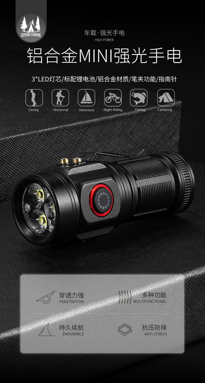Cruz-frontera al aire libre mini linterna portátil sostenedor de la pluma de diseño ligero camping aventura brújula deportes linterna