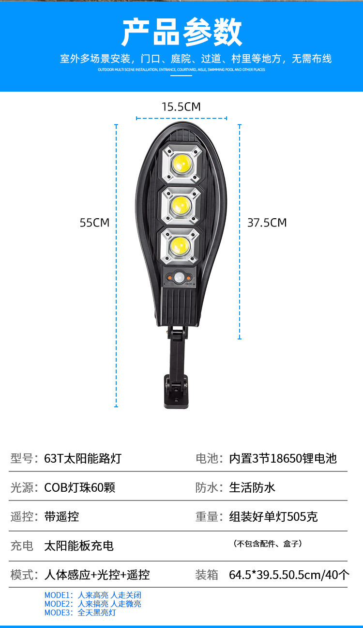 | Número de pedido | Lámpara de calle solar 3 cuadrado tipo LL63T |