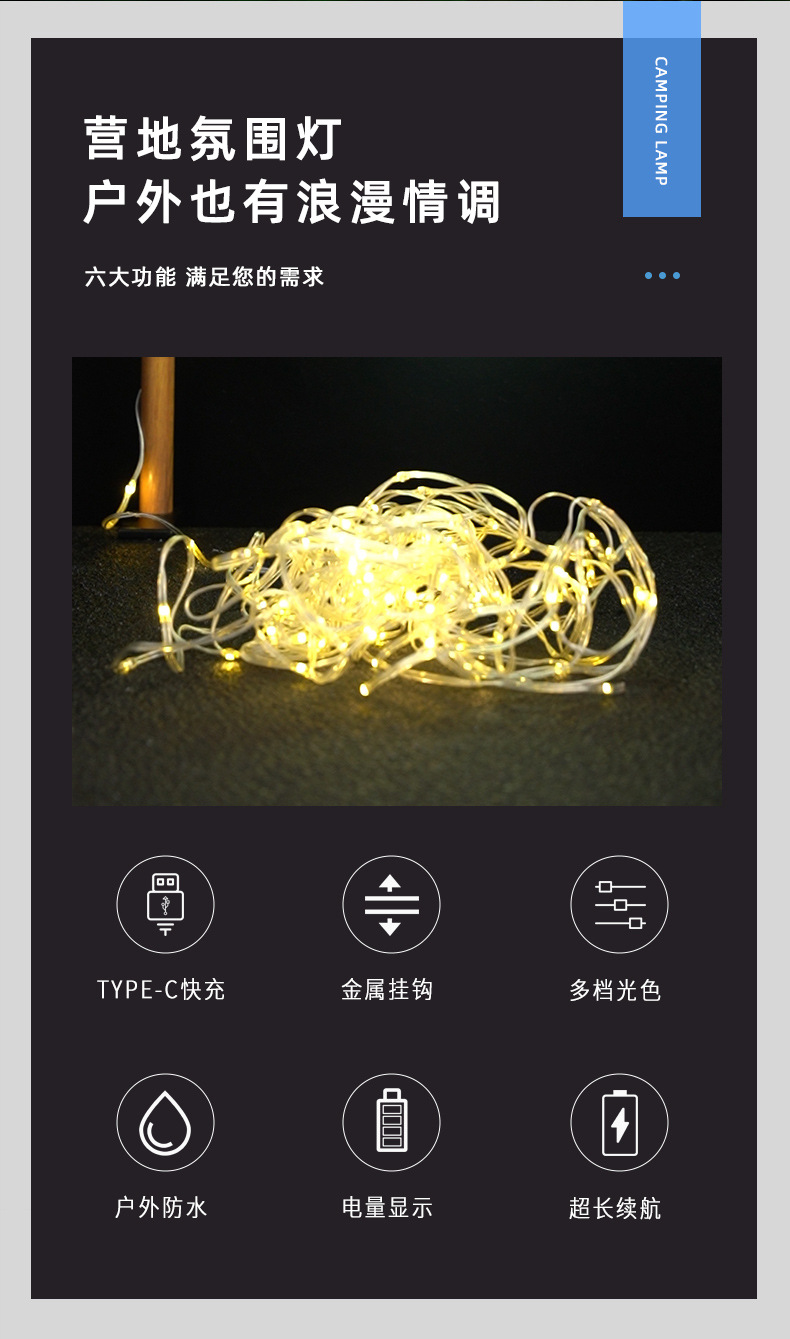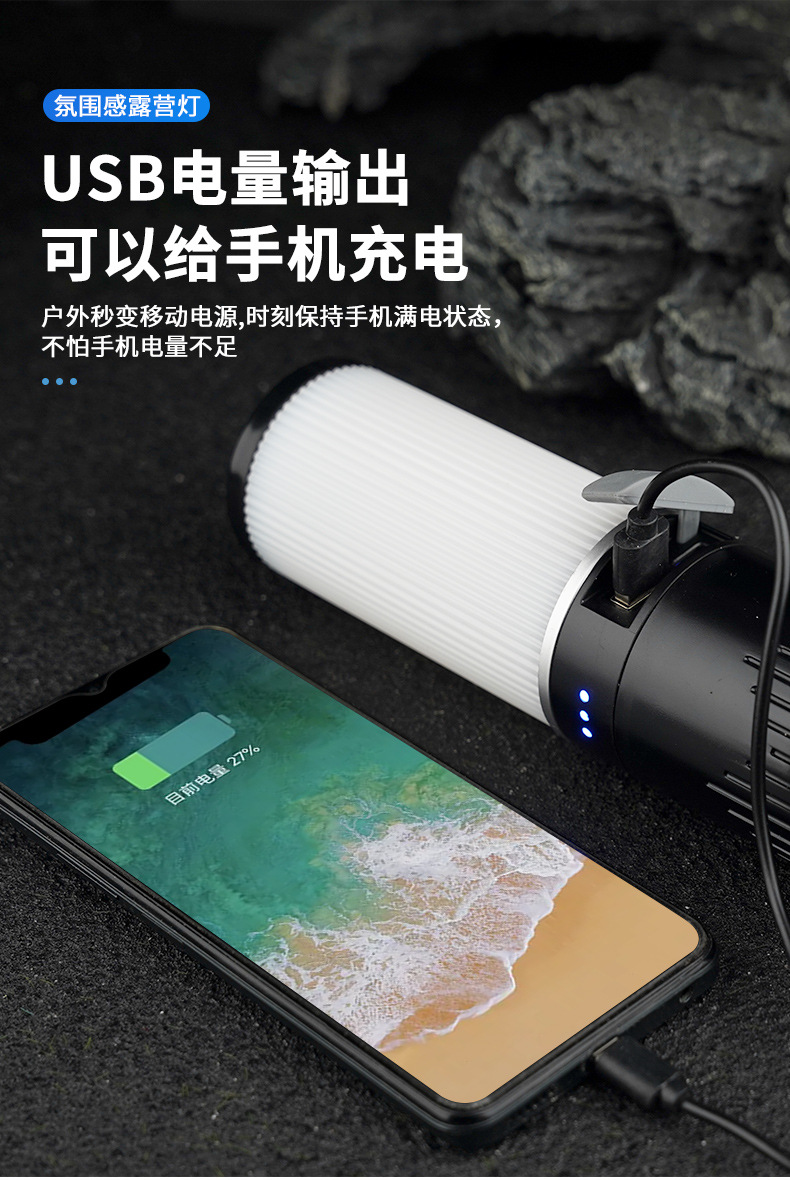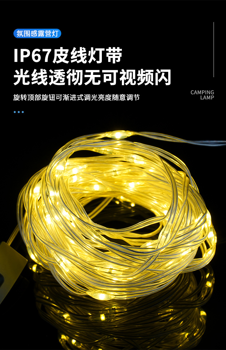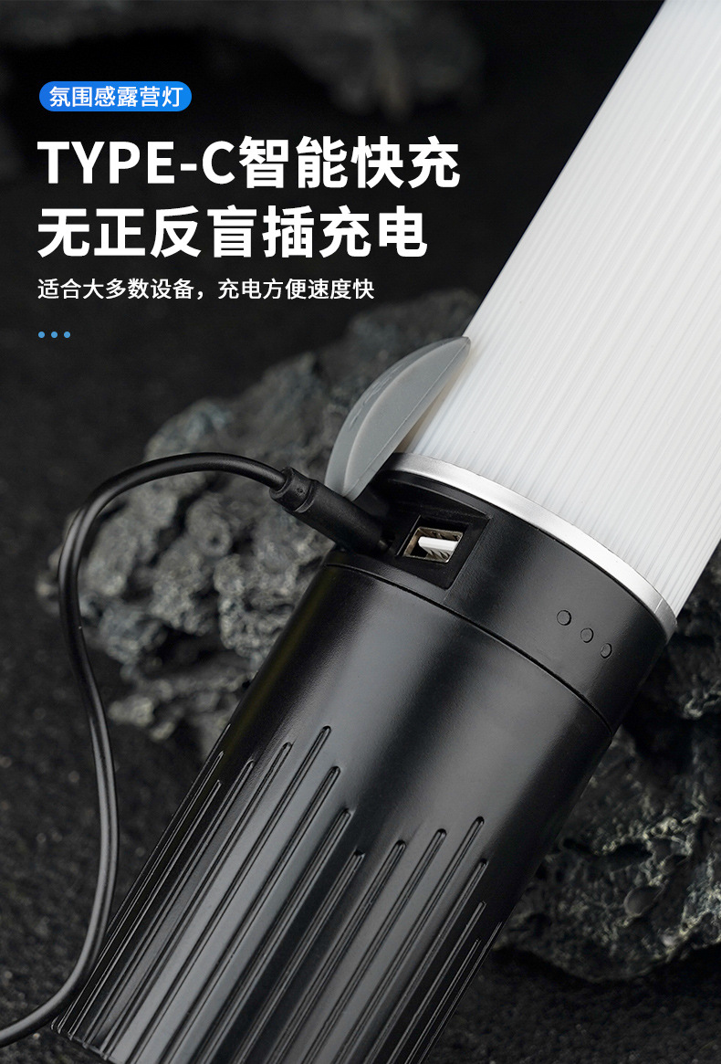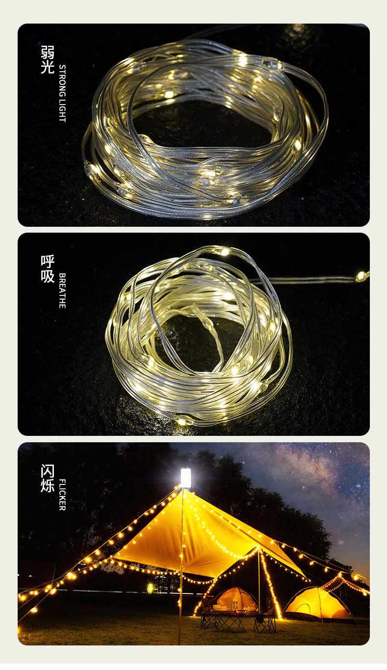 Luz de camping al aire libre transfronteriza color cambiante efecto de luz 10m con luz de ambiente recargable IPX4 grado impermeable camping luz palo