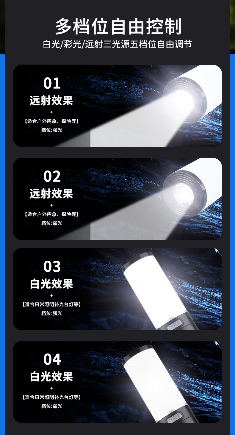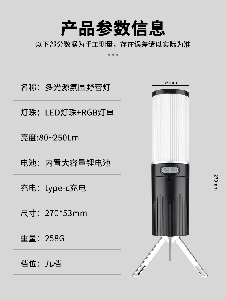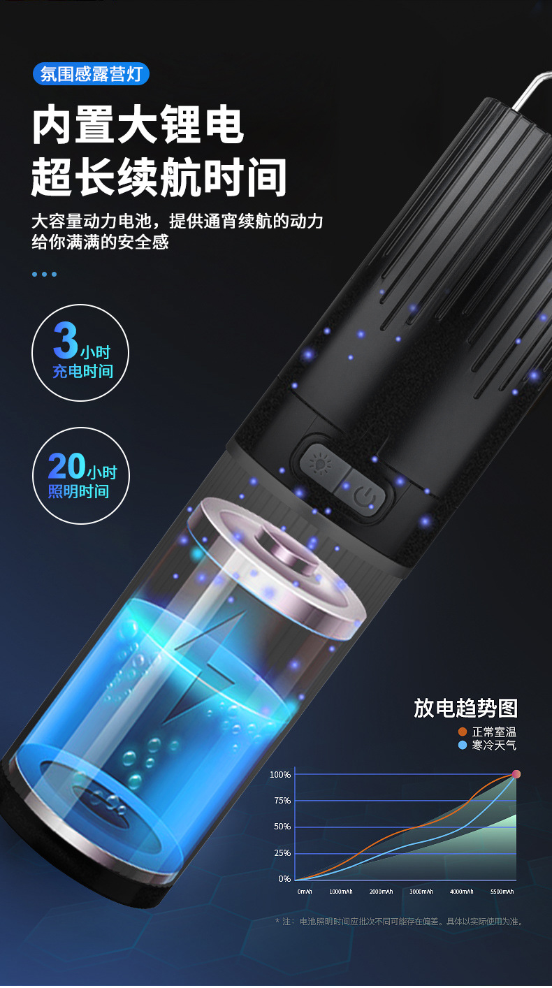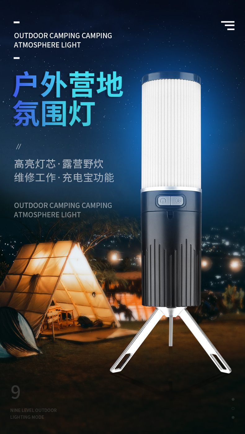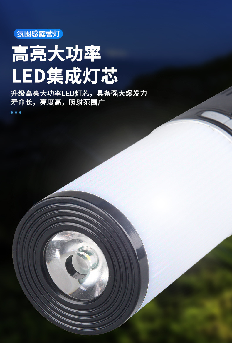 Luz de camping al aire libre transfronteriza color cambiante efecto de luz 10m con luz de ambiente recargable IPX4 grado impermeable camping luz palo