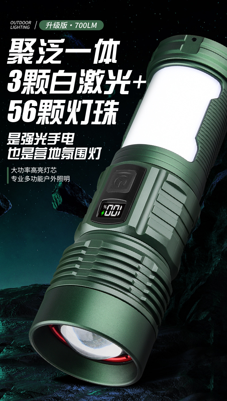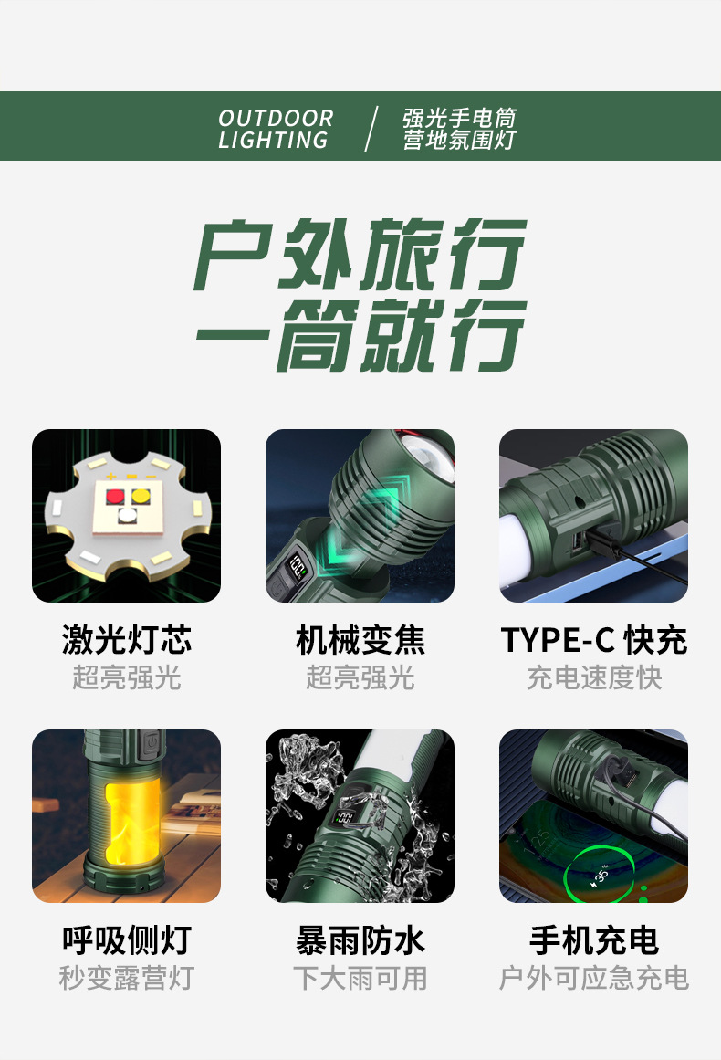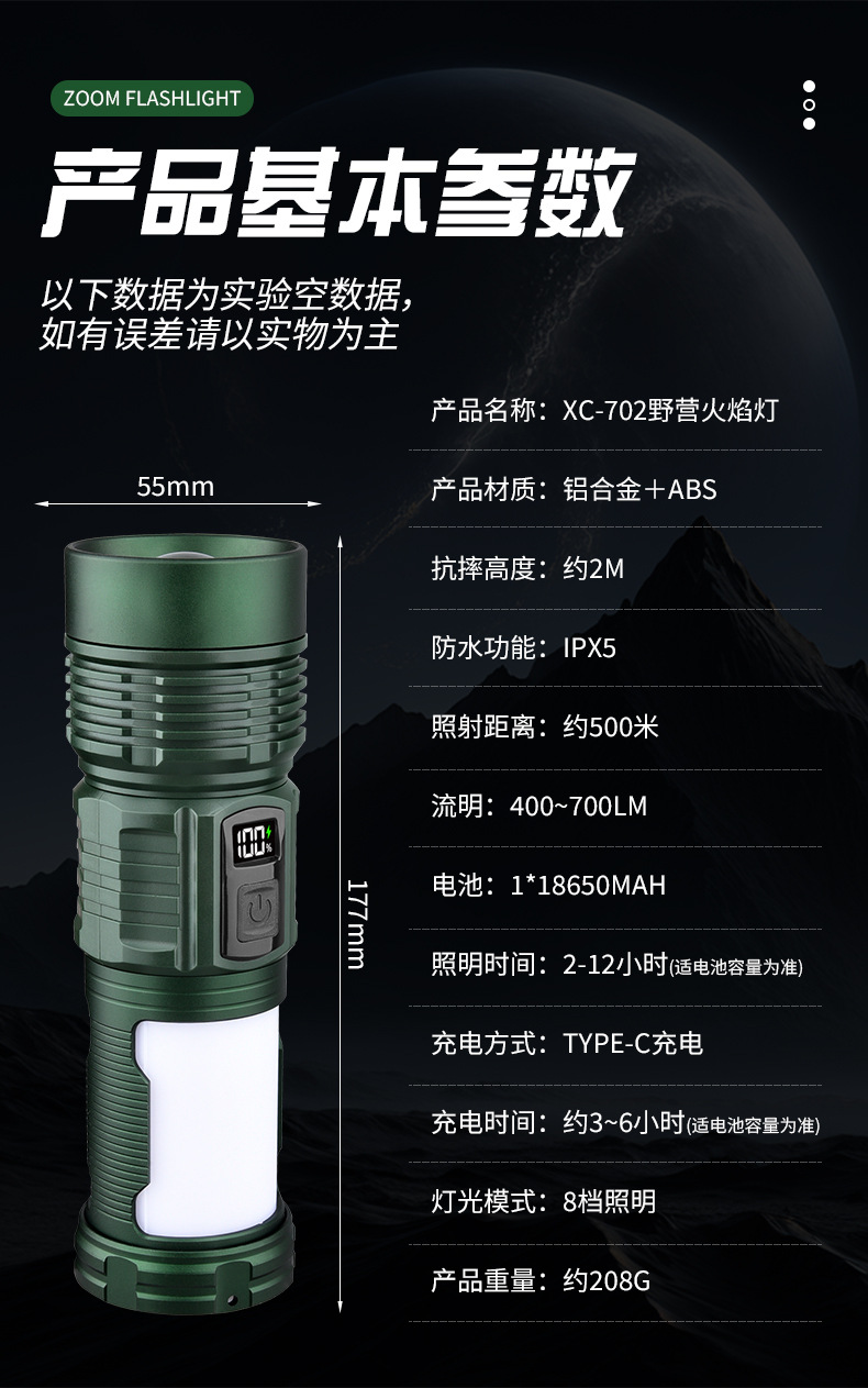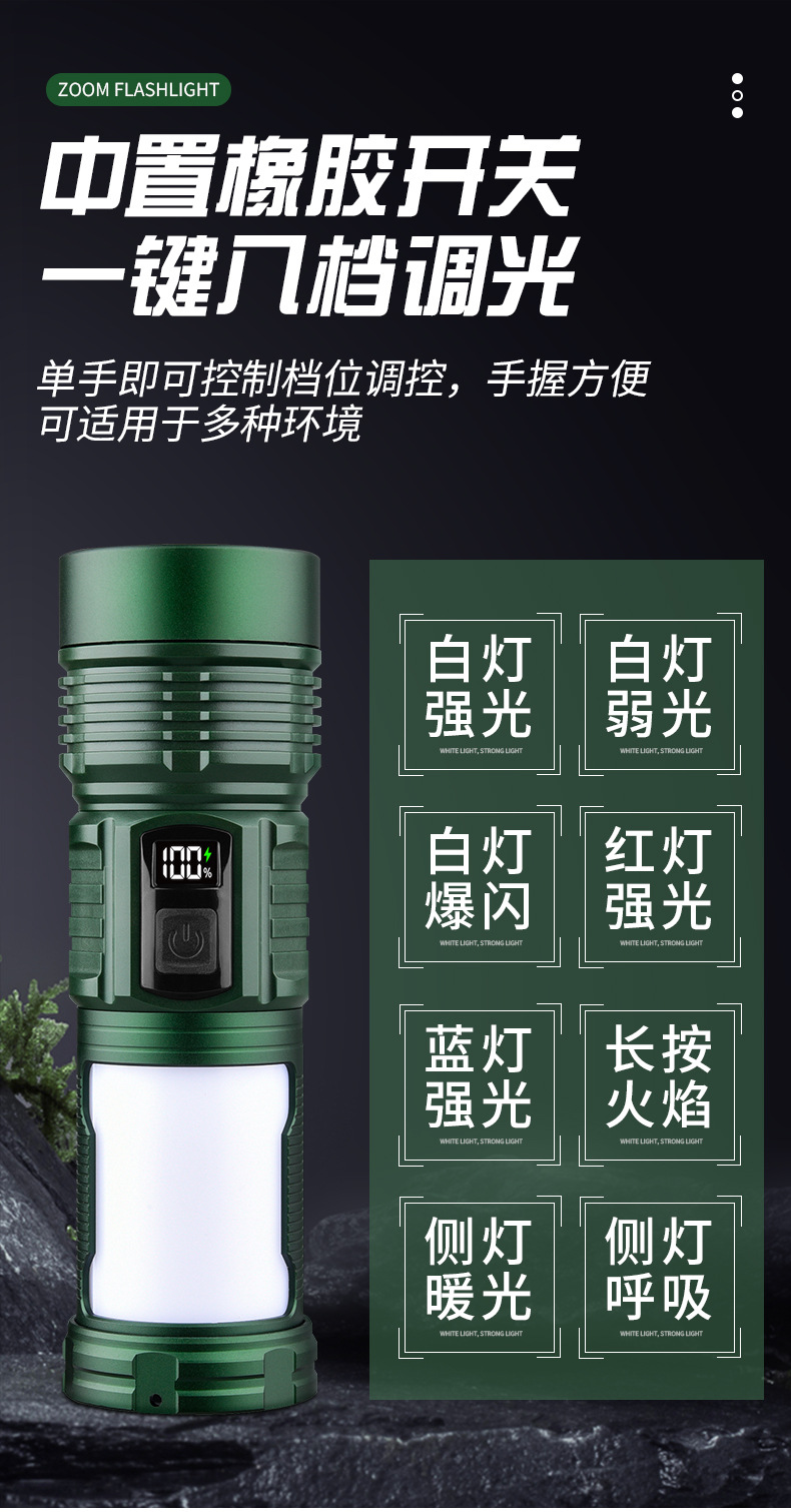Lintera al aire libre transfronteriza larga duración luz suave luz de atmósfera cuatro fuentes de luz penetración iluminación linterna de aleación de aluminio