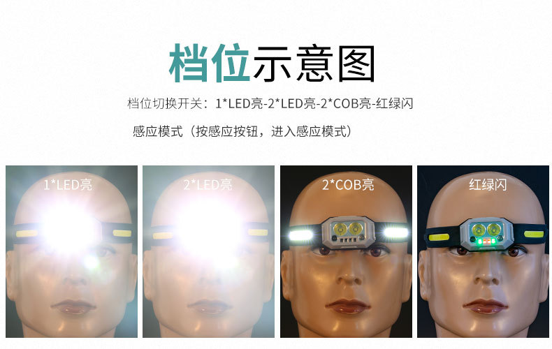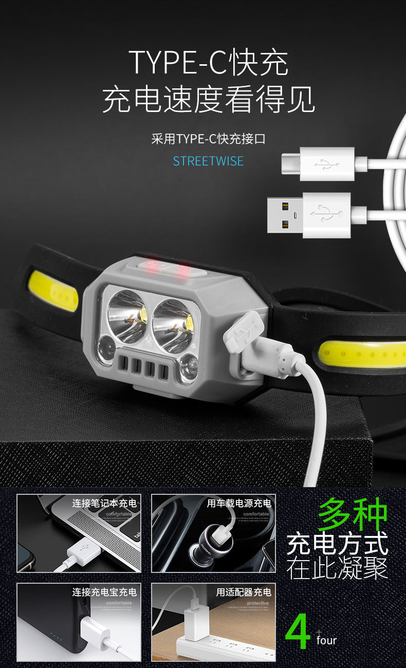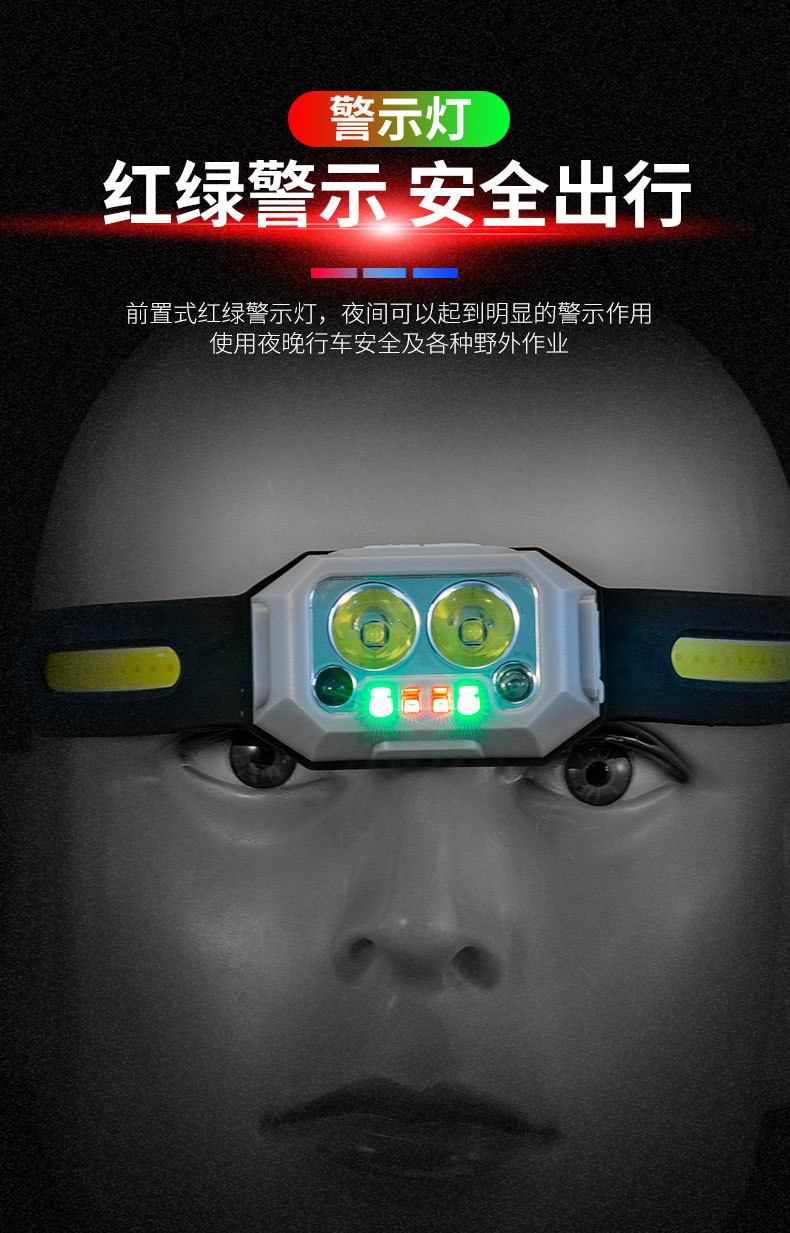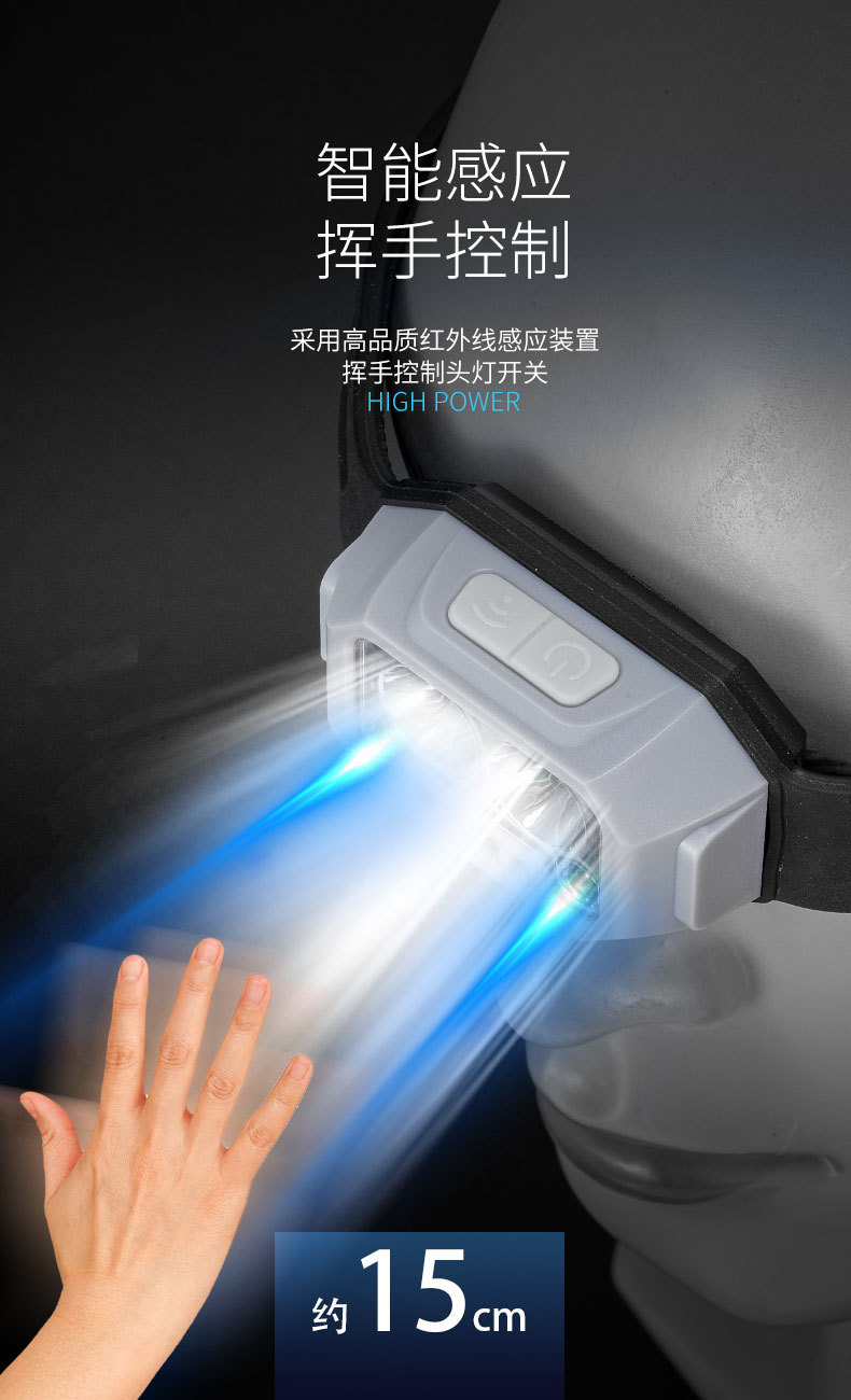Transfronterizo al aire libre mini faro gesto inducción semáforo resalte faro recargable batería de litio luz de trabajo