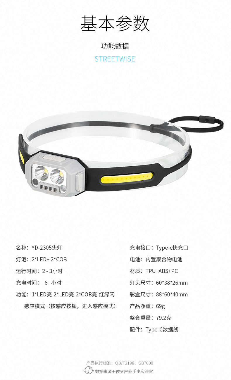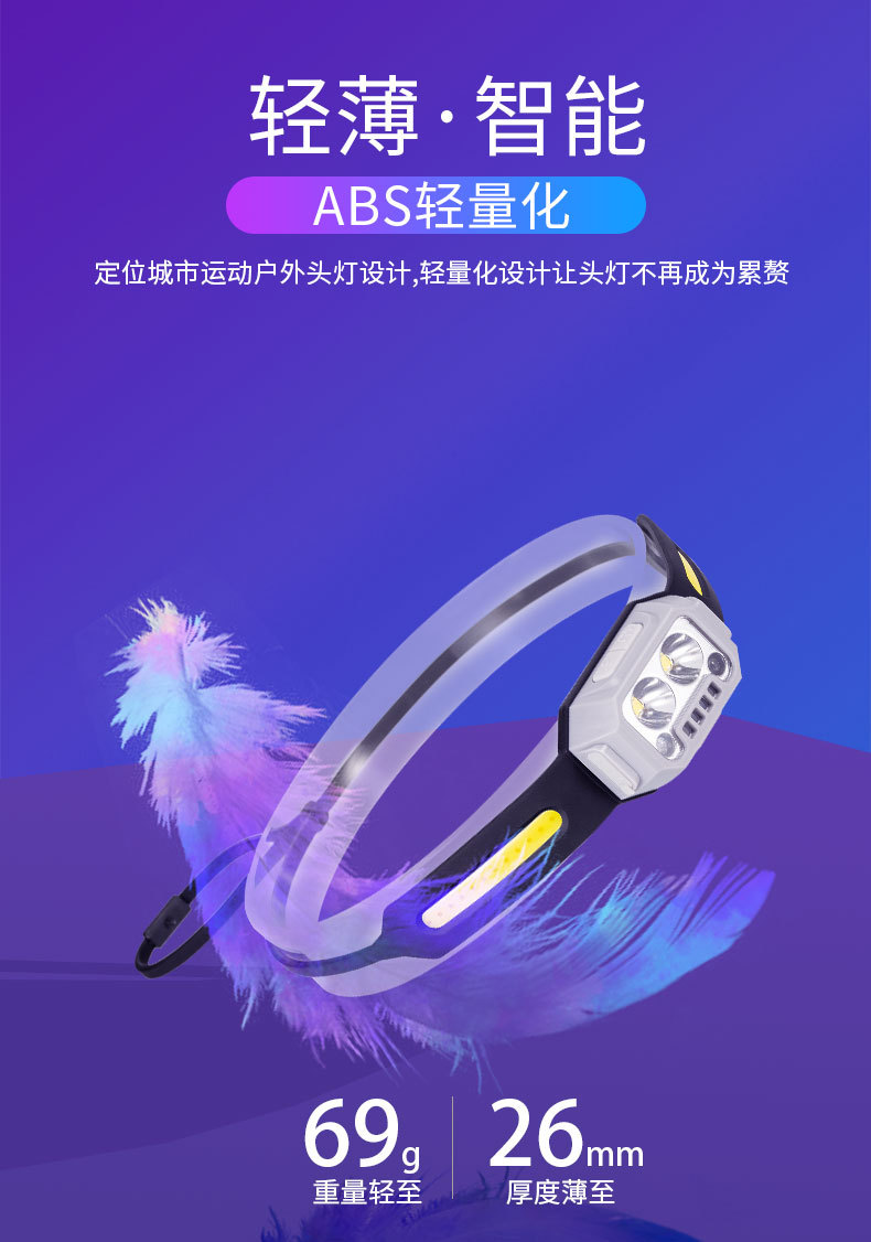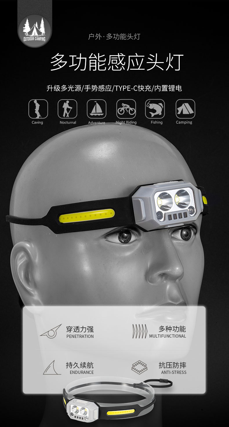 Transfronterizo al aire libre mini faro gesto inducción semáforo resalte faro recargable batería de litio luz de trabajo