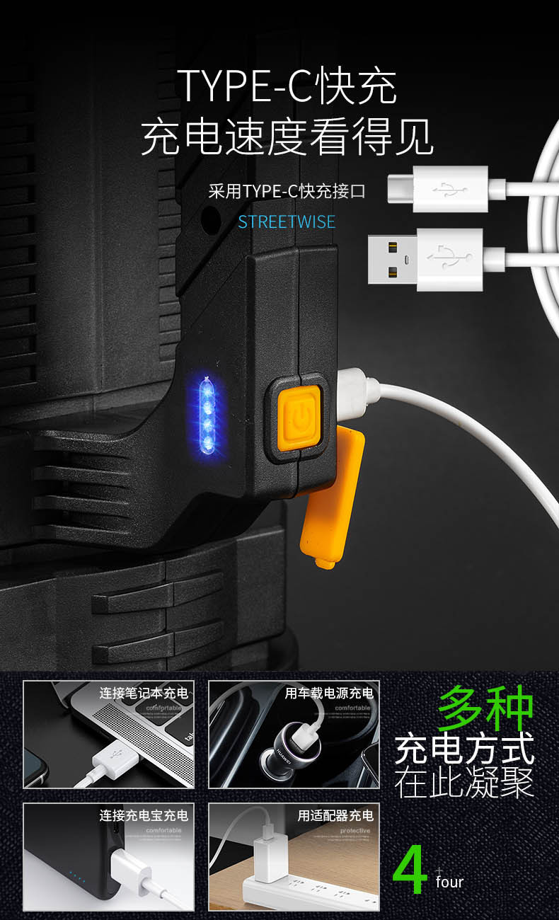 Transfronterizo de alto brillo tipo arma de fuego largo carga portátil luz de trabajo de prospector portátil de alta duración