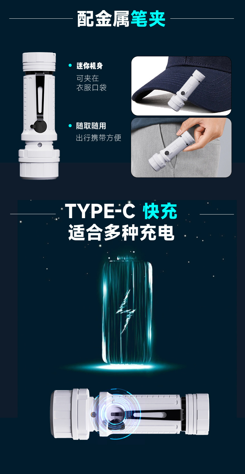 Lintera portátil al aire libre iluminación ultra brillante lámpara de bolígrafo de metal ligera mini bolsillo de carga linterna de emergencia