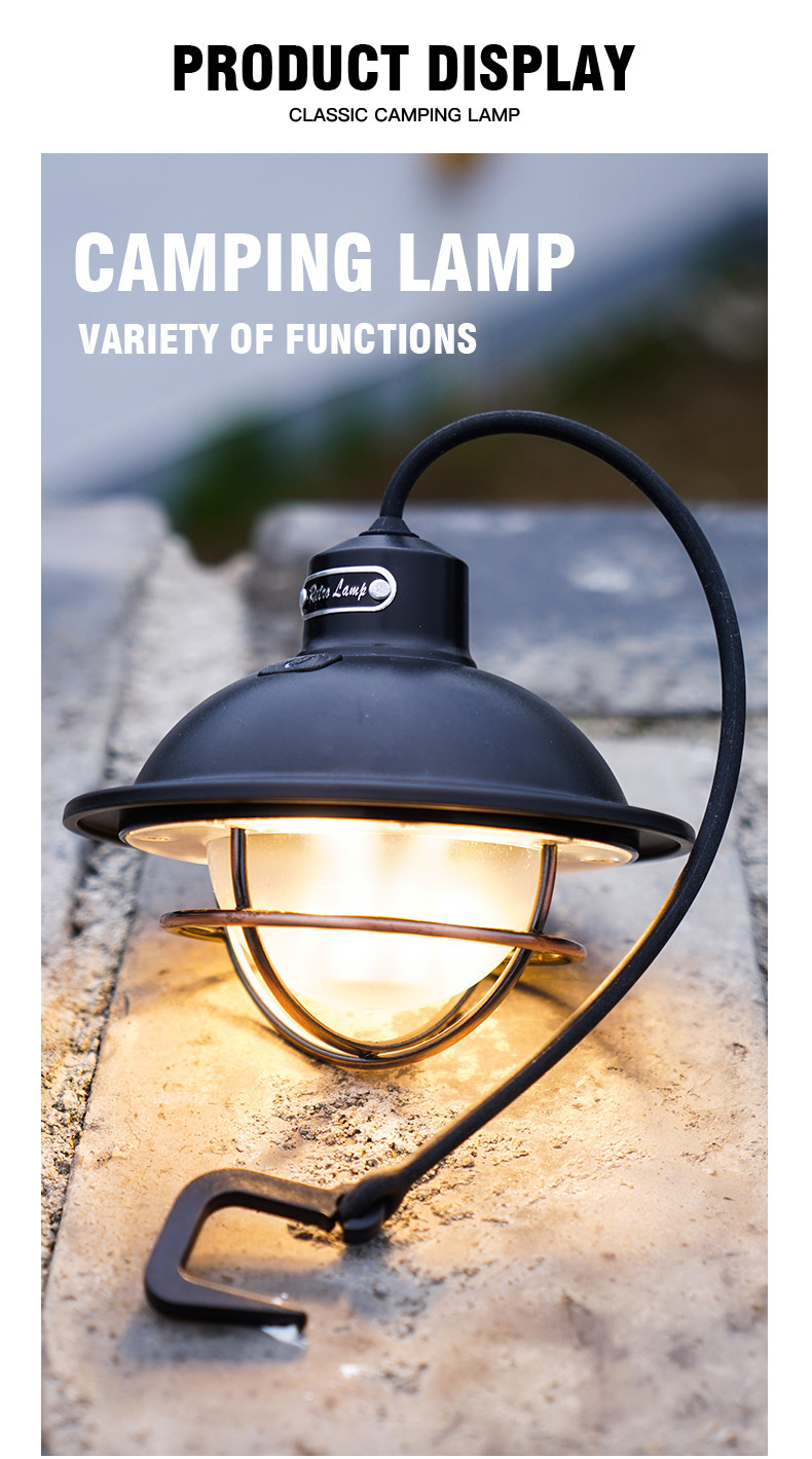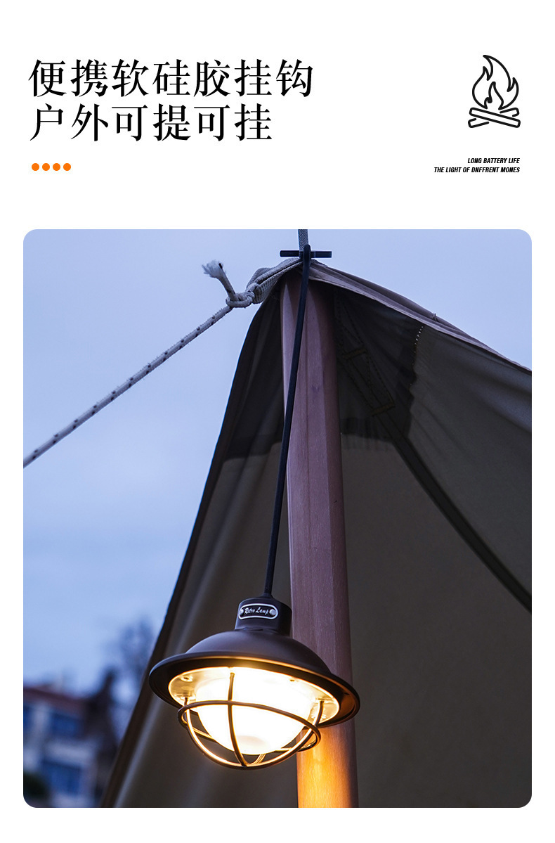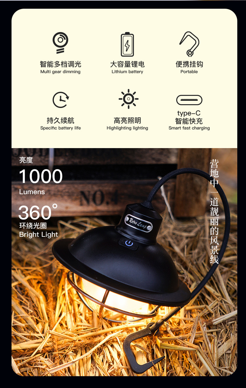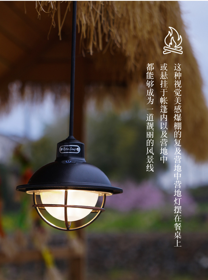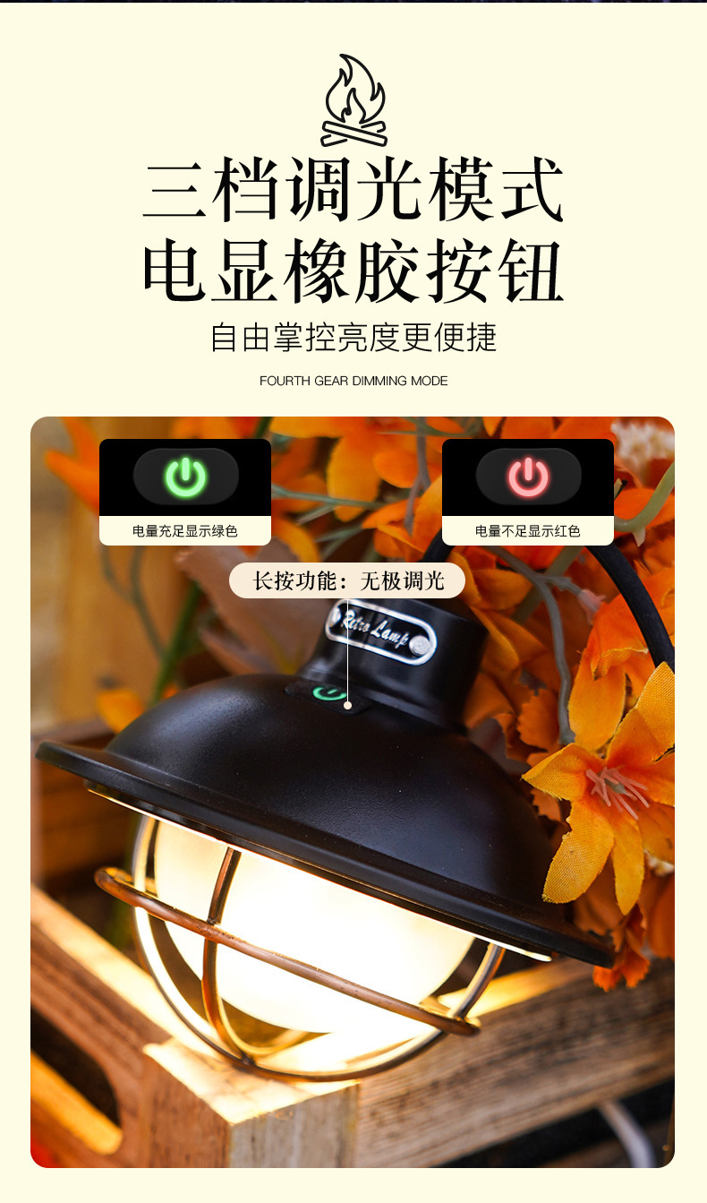 Luz de caballo retro transfronteriza luz caliente sin electrodos de atenuación al aire libre larga duración gancho lámpara de camping atmósfera lámpara de camping