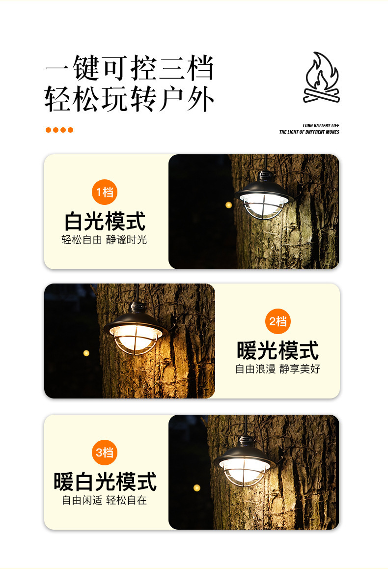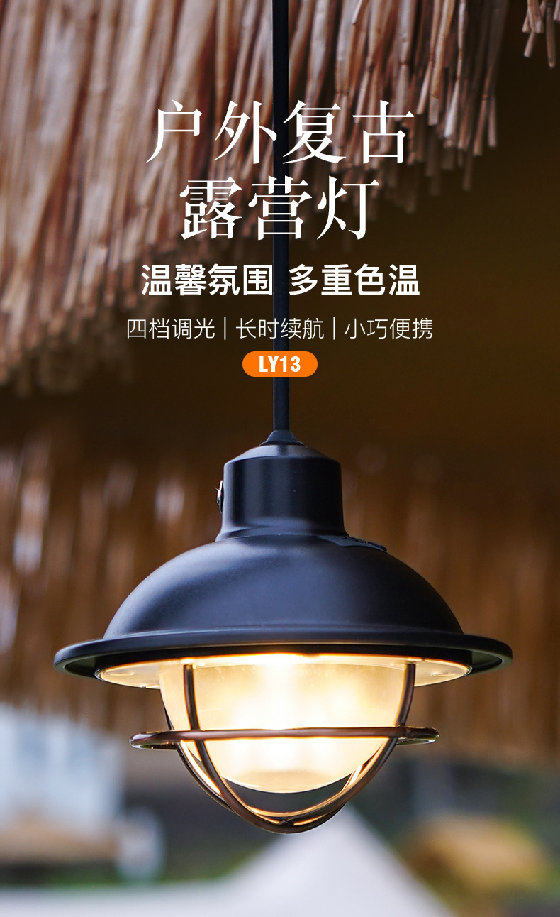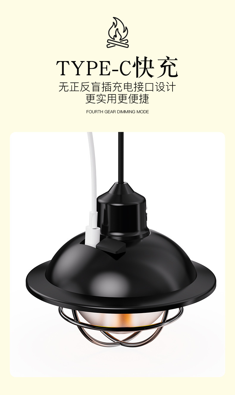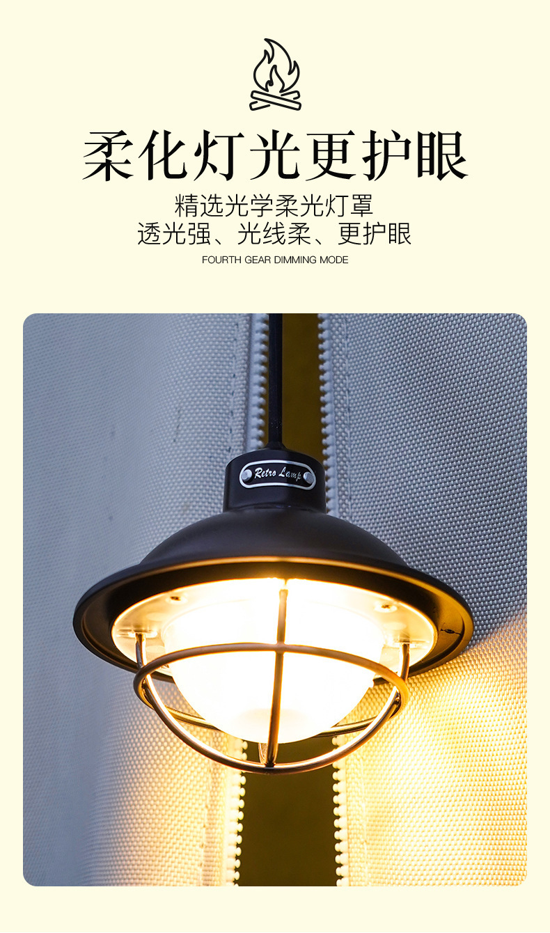 Luz de caballo retro transfronteriza luz caliente sin electrodos de atenuación al aire libre larga duración gancho lámpara de camping atmósfera lámpara de camping