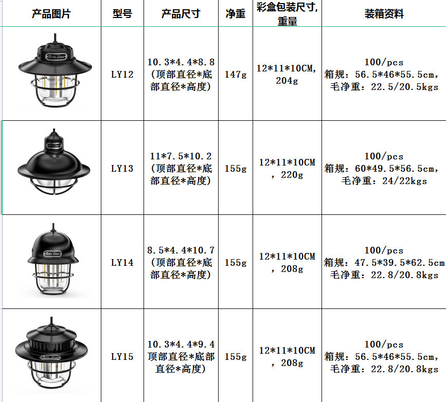 | Color | Lámpara de campamento de Teng de Goma ly12, lámpara de campamento de Teng de Goma ly13, lámpara de campamento de Teng de Goma ly14, lámpara de campamento de Teng de Goma ly15 |