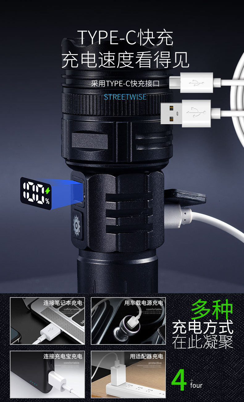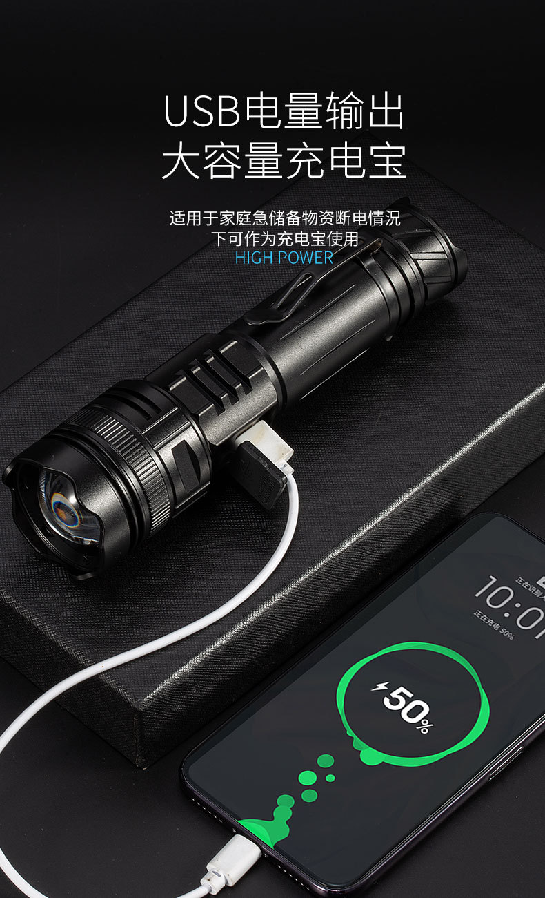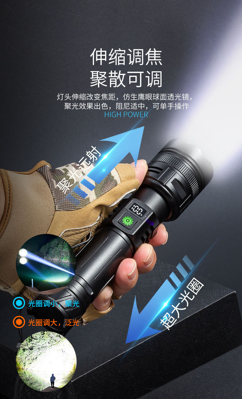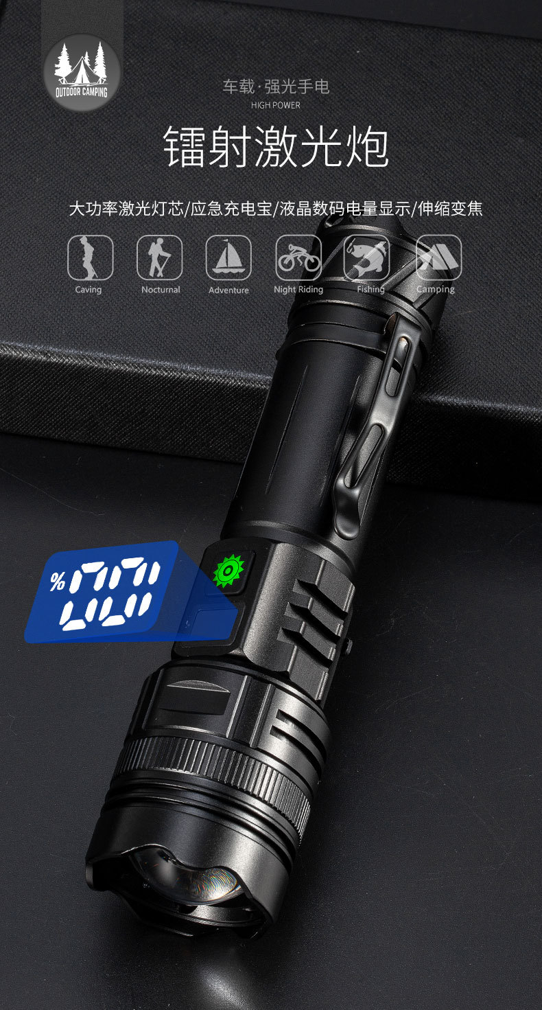 Linterna al aire libre del hogar 20W anti-falsificación identificación luz púrpura carga tesoro portátil pantalla LCD linterna