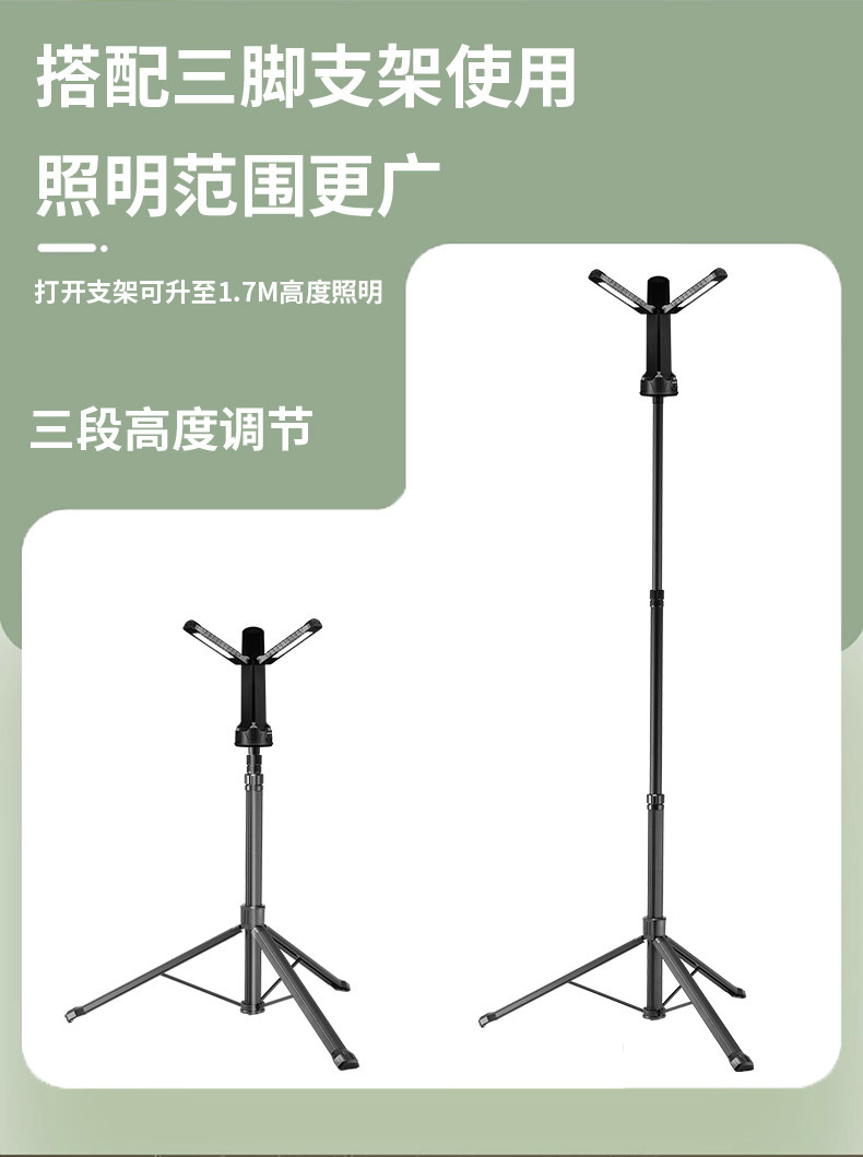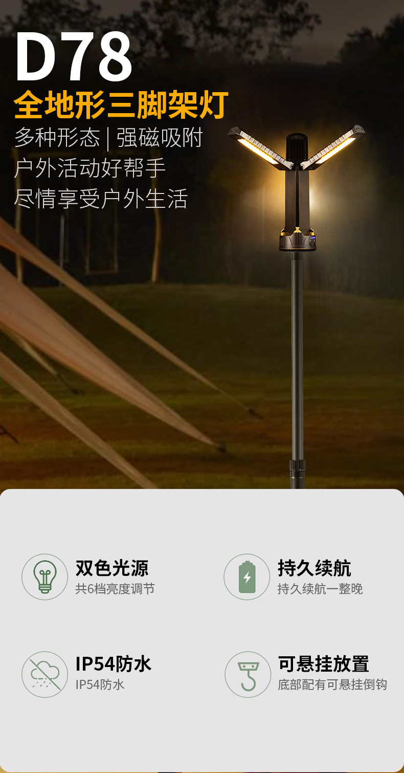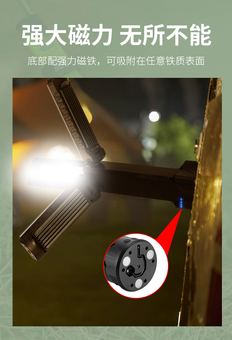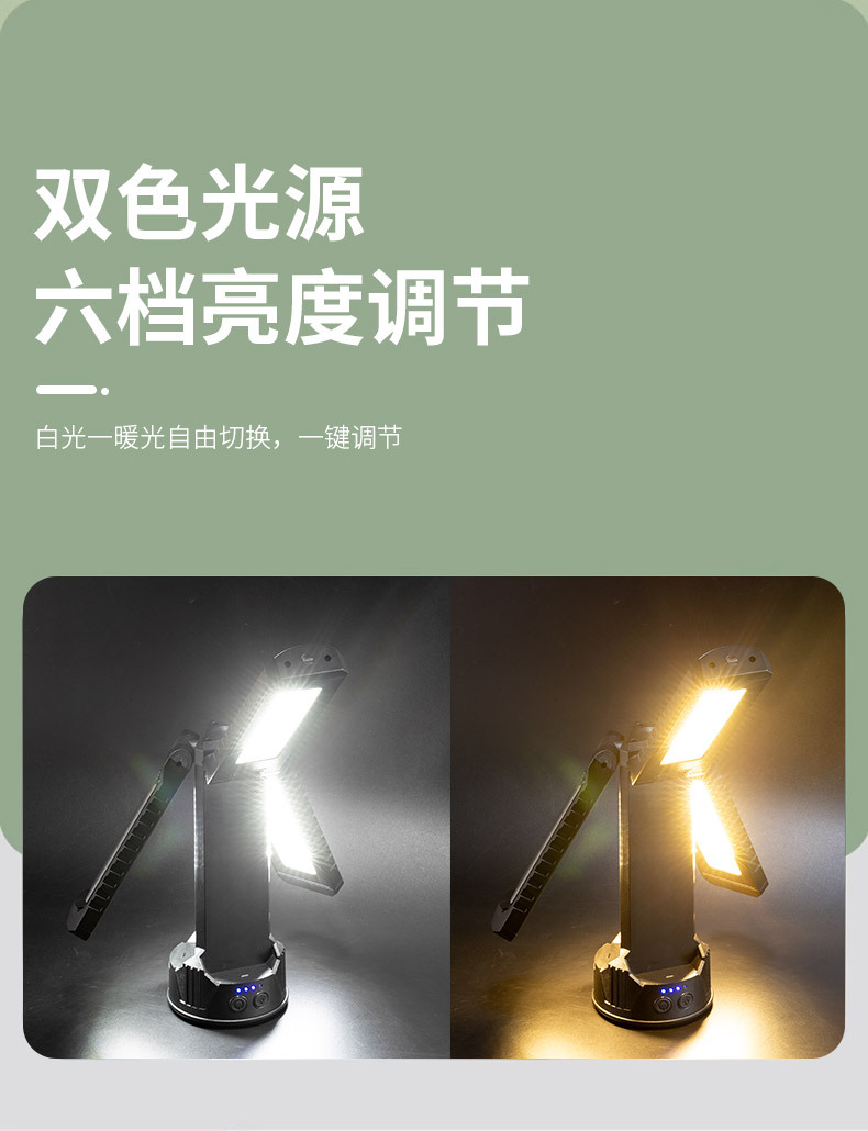 Luz de trípode todoterreno transfronteriza, luz ambiental de dos colores amarilla y blanca, luz de campamento de alto brillo para exteriores de adsorción magnética fuerte