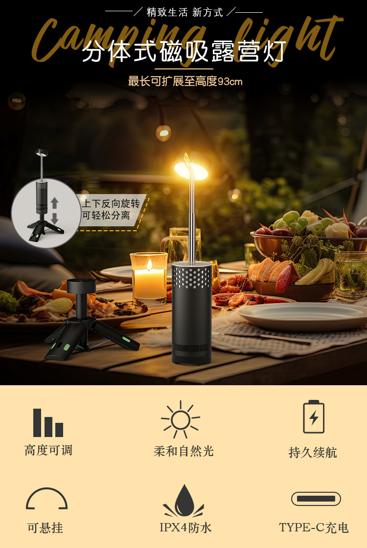 Luz de camping de atmósfera transfronteriza trípode magnético de mantenimiento lámpara de camping colgante de mano lámpara de exploración resistente a caídas