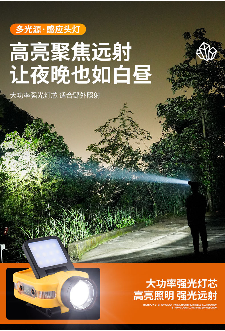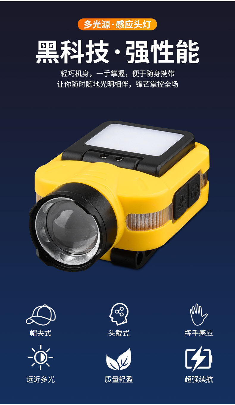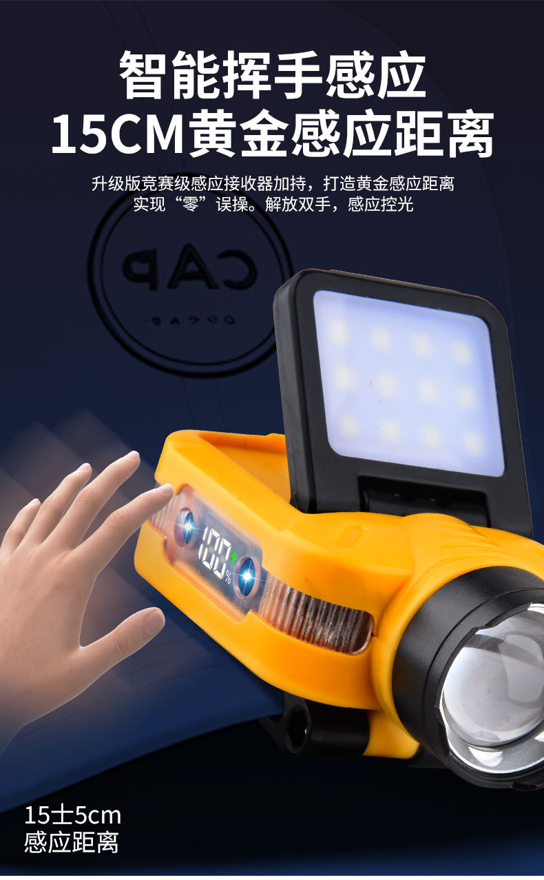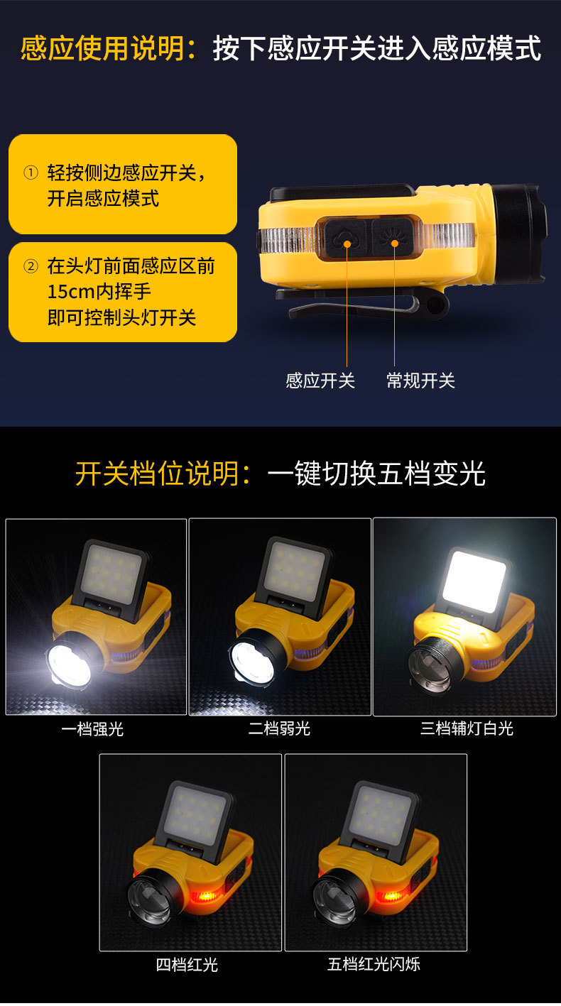 Luz transfronteriza de luz fuerte inducción ajustable de cinco velocidades lámpara de clip de sombrero desmontable luz de alta potencia luz de luz remota al aire libre