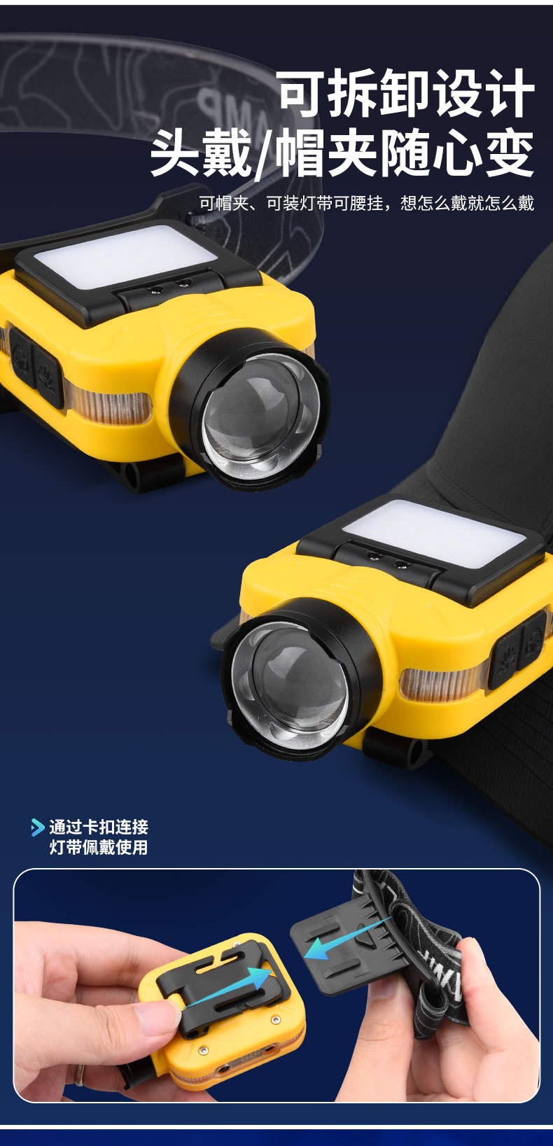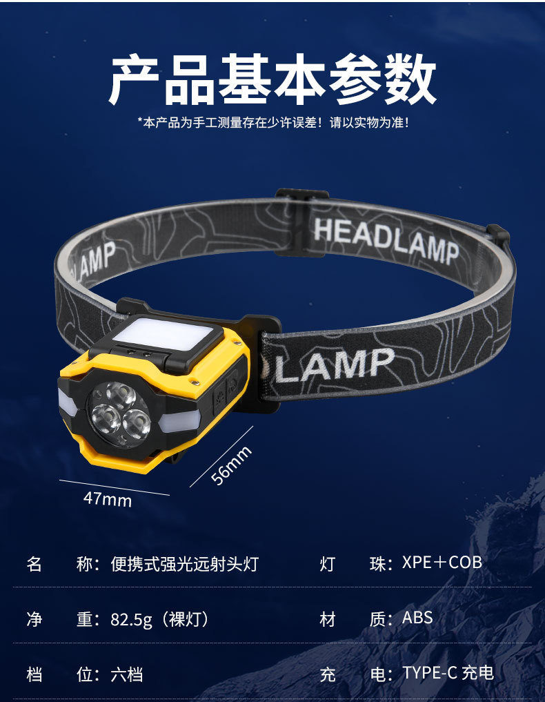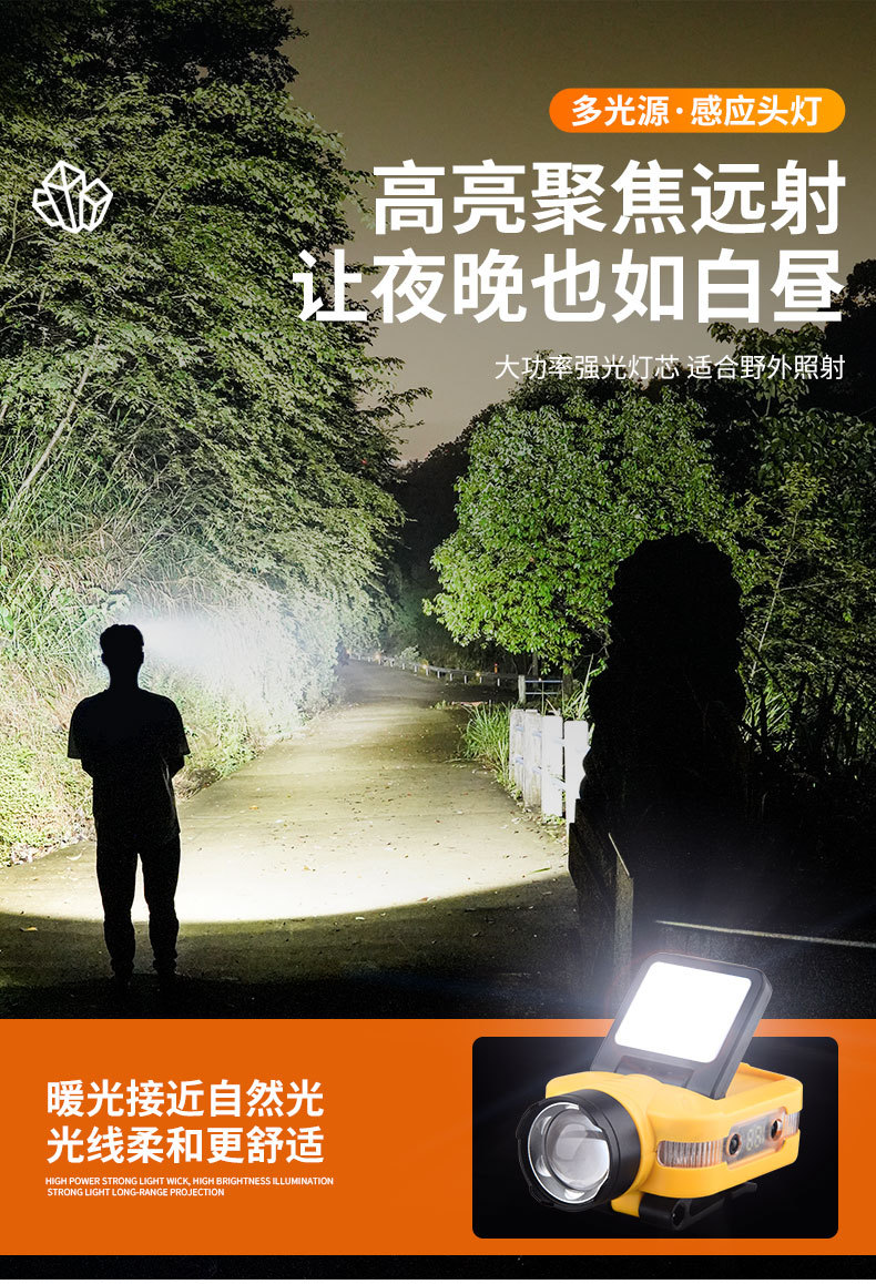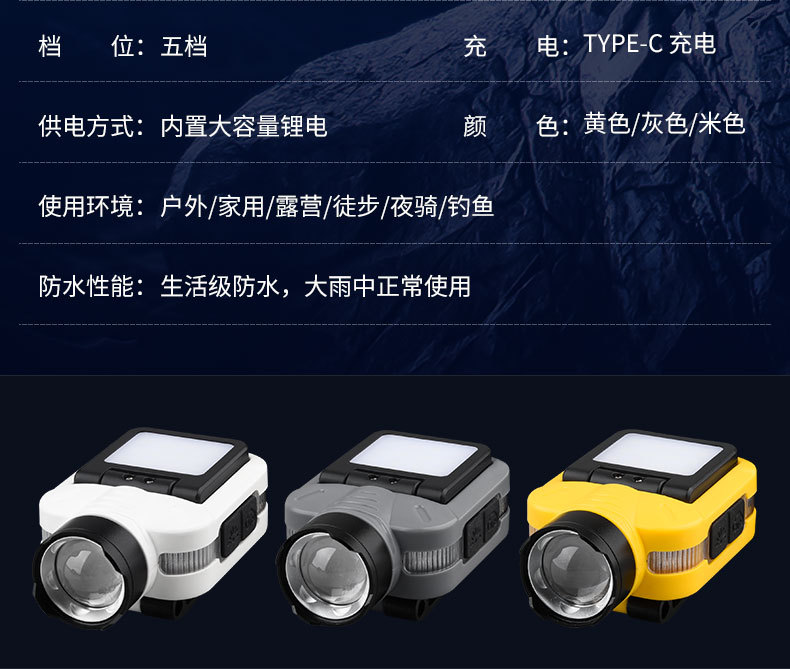 Luz transfronteriza de luz fuerte inducción ajustable de cinco velocidades lámpara de clip de sombrero desmontable luz de alta potencia luz de luz remota al aire libre