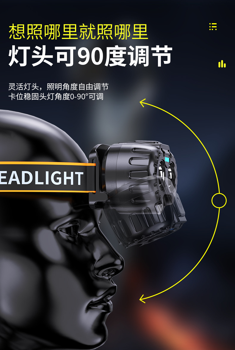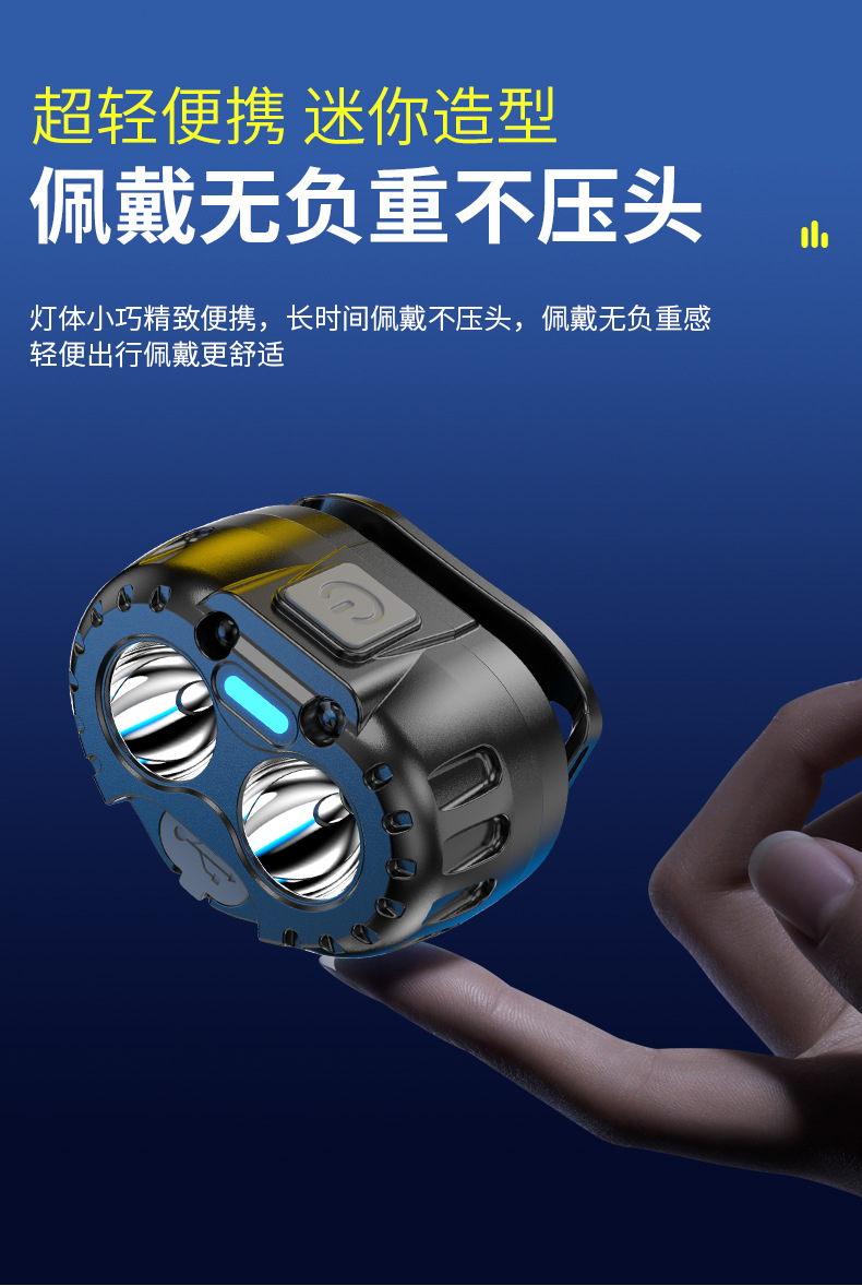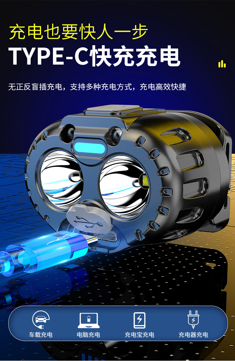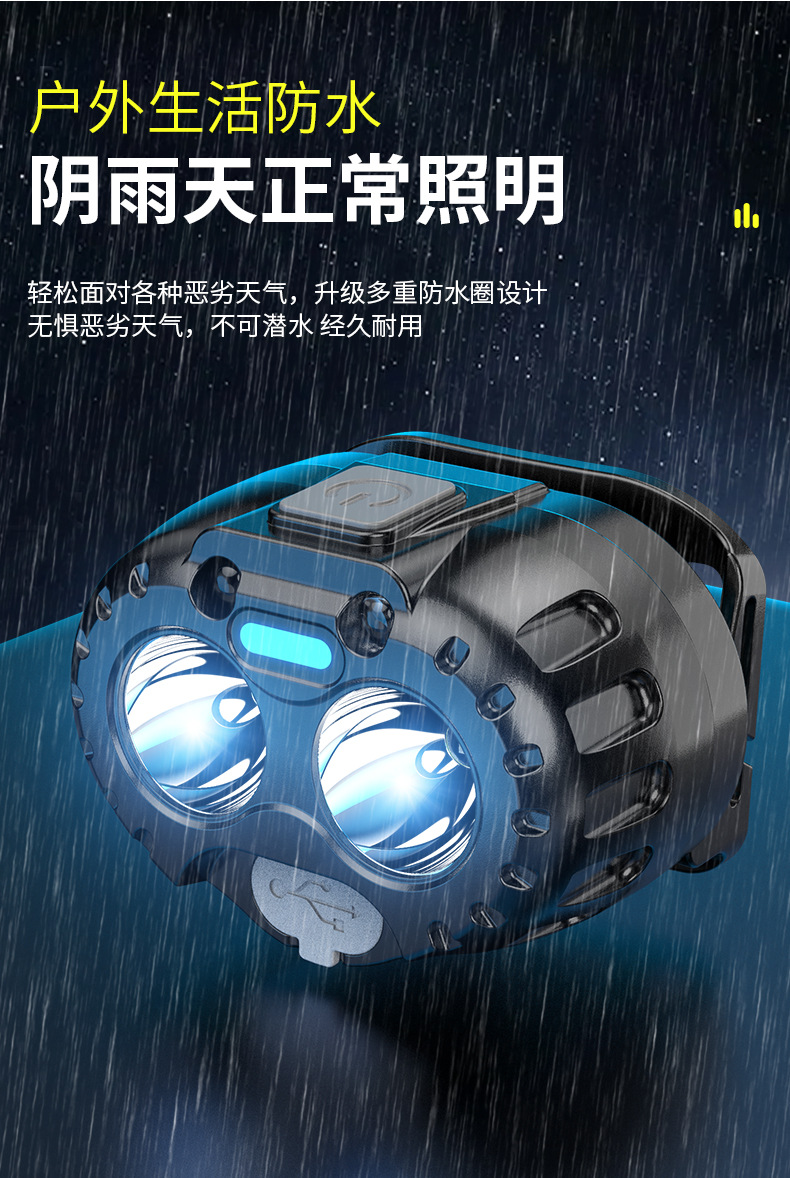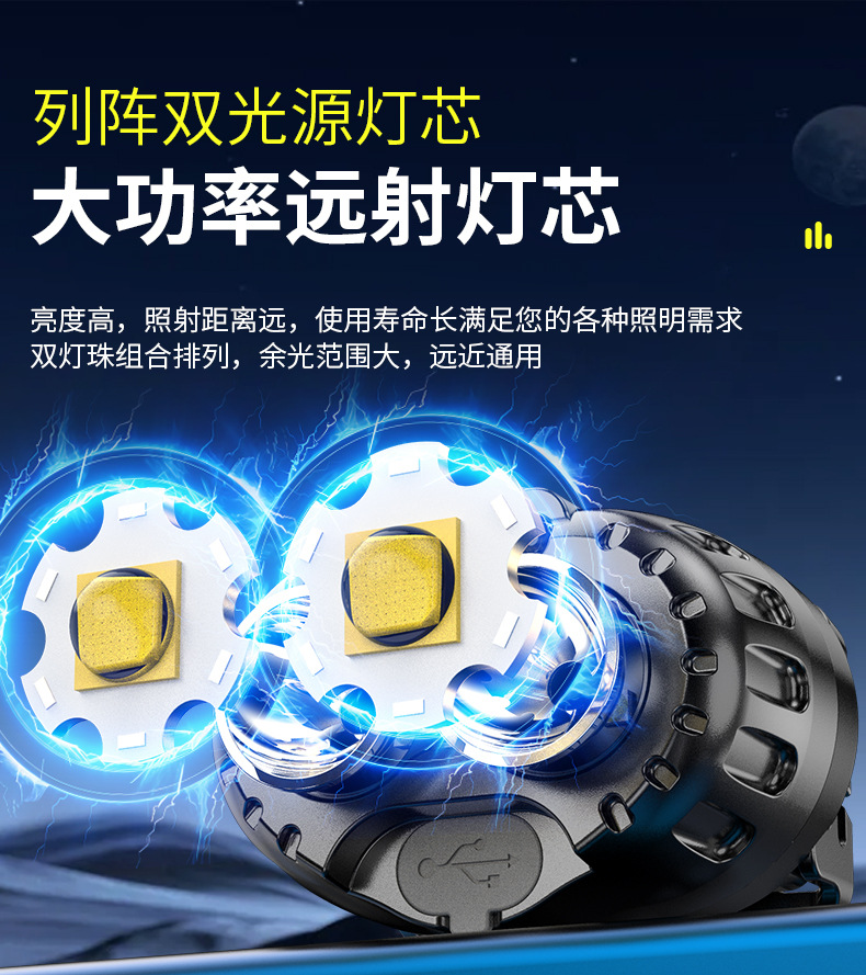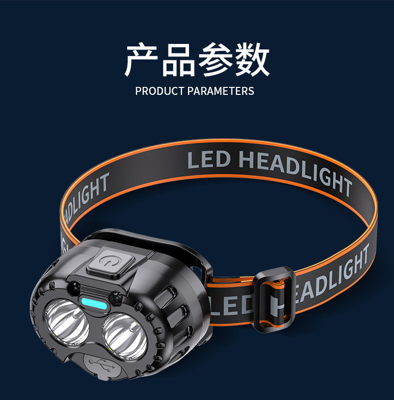 Faros de pesca nocturna transfronterizos, batería de larga duración, faros de inducción de fuente de luz dual, mini faros de pantalla de carga rápida montados en la cabeza