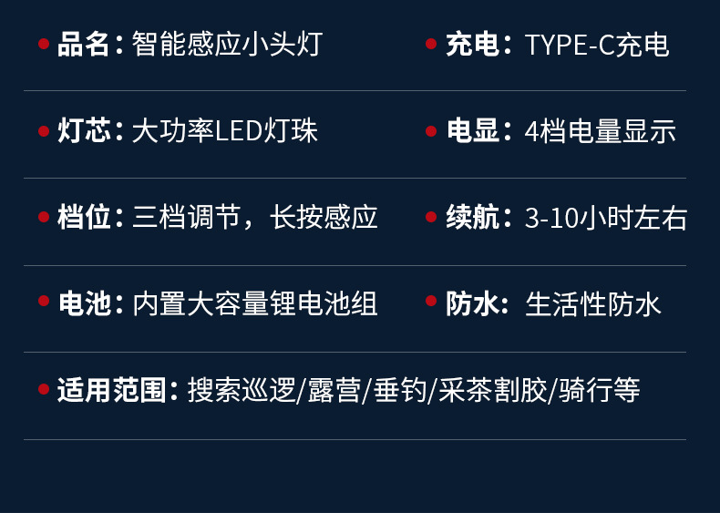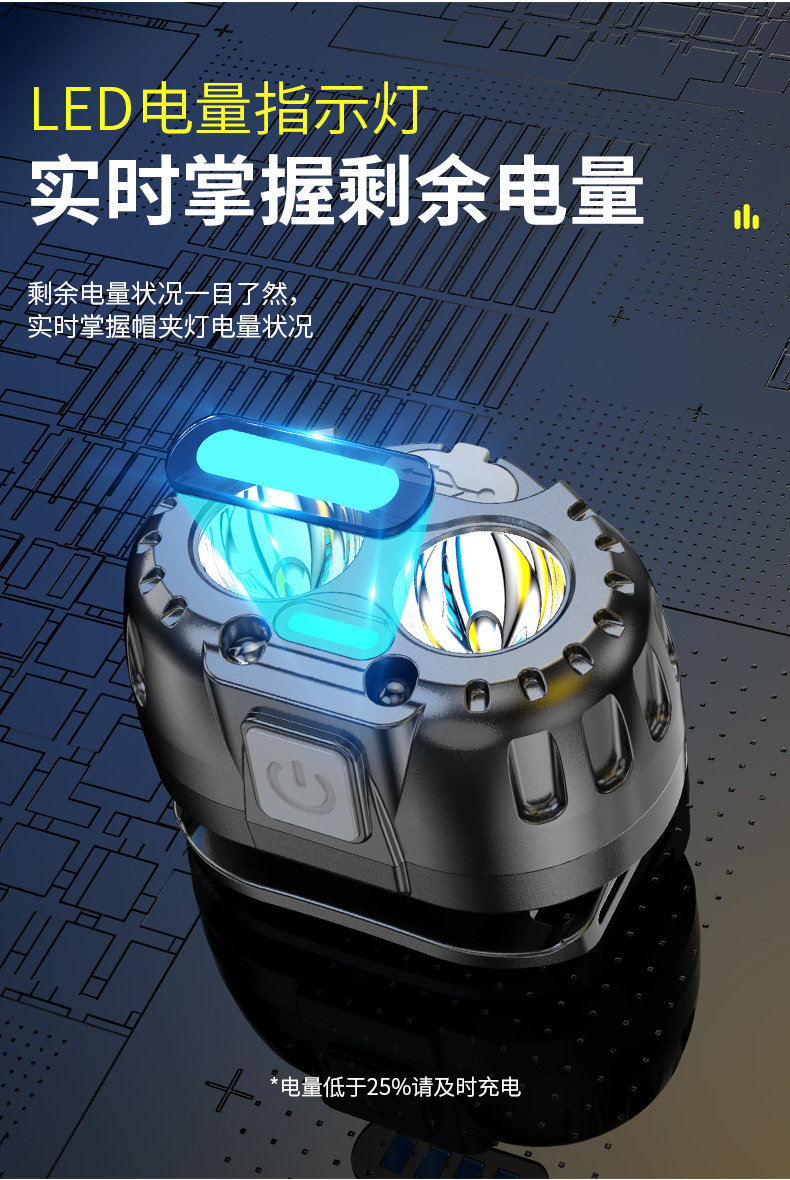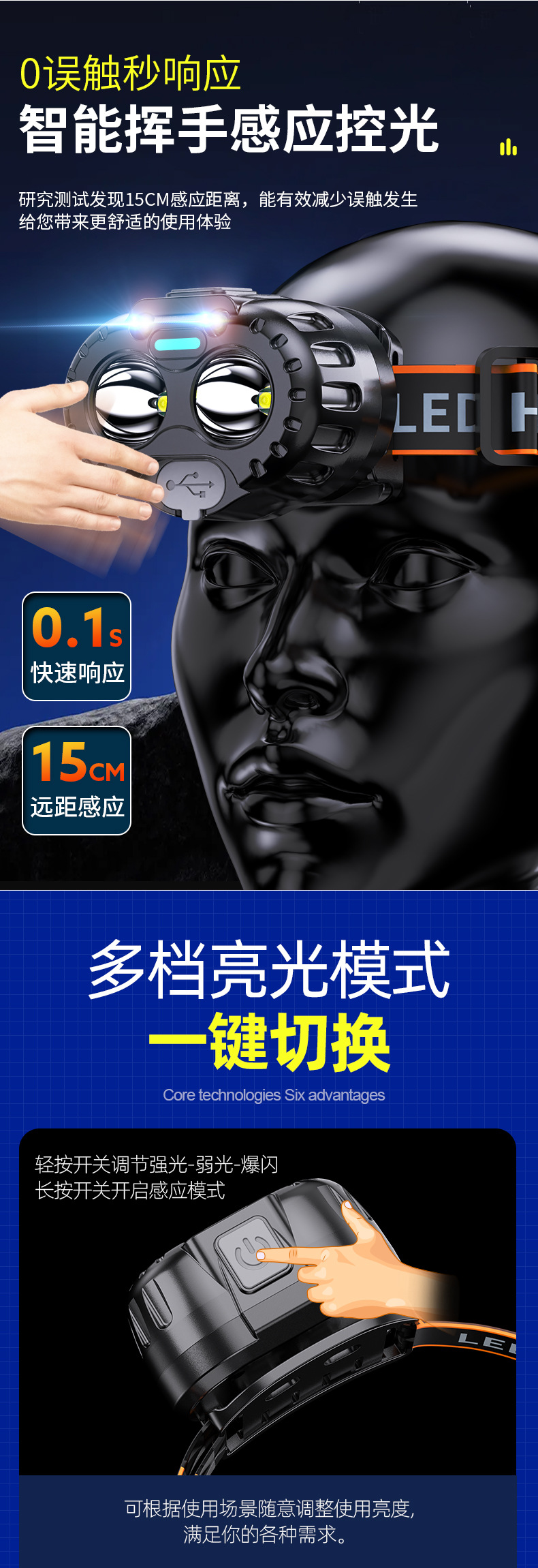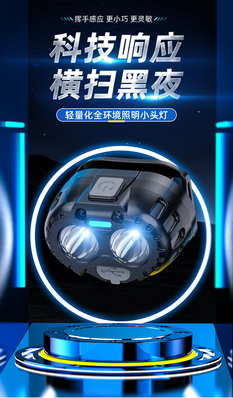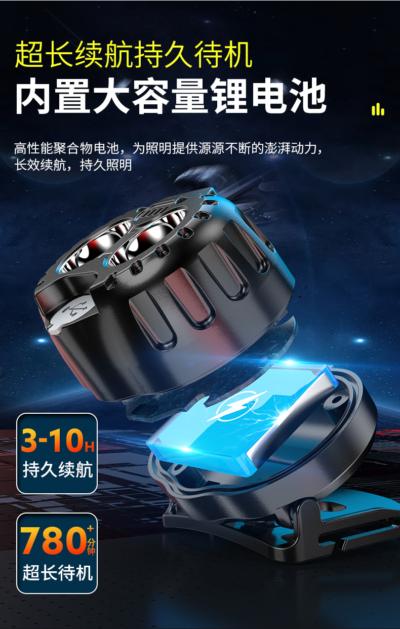 Faros de pesca nocturna transfronterizos, batería de larga duración, faros de inducción de fuente de luz dual, mini faros de pantalla de carga rápida montados en la cabeza