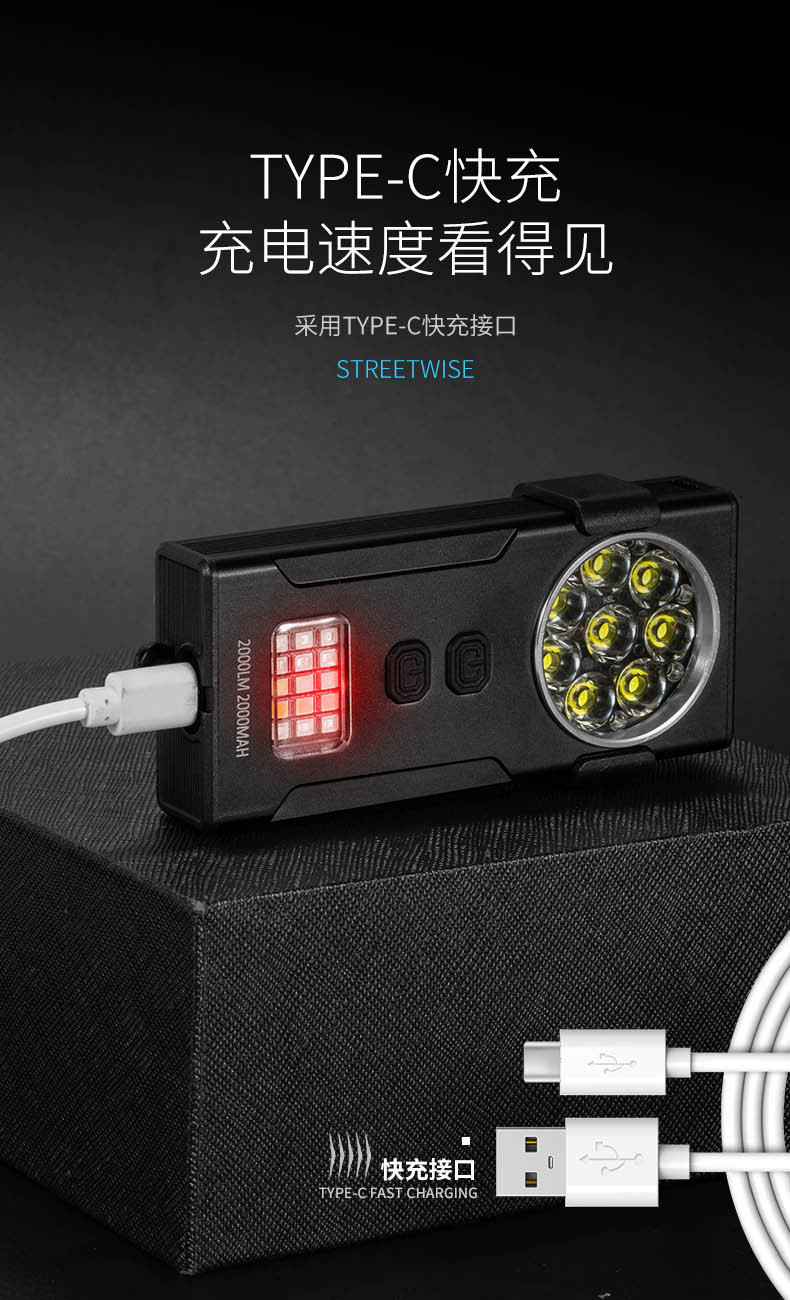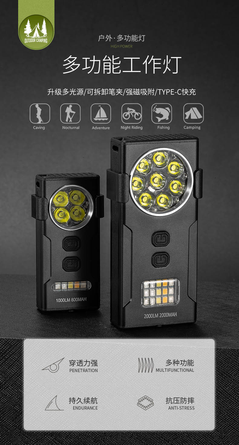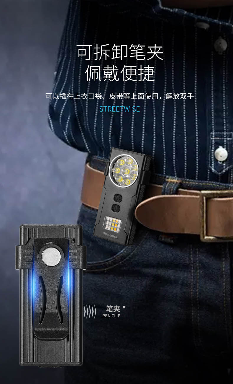 Explosiones transfronterizas adsorción magnética mini portable llavero luz de trabajo Tipo-c carga rápida XTE * 8 luz de trabajo