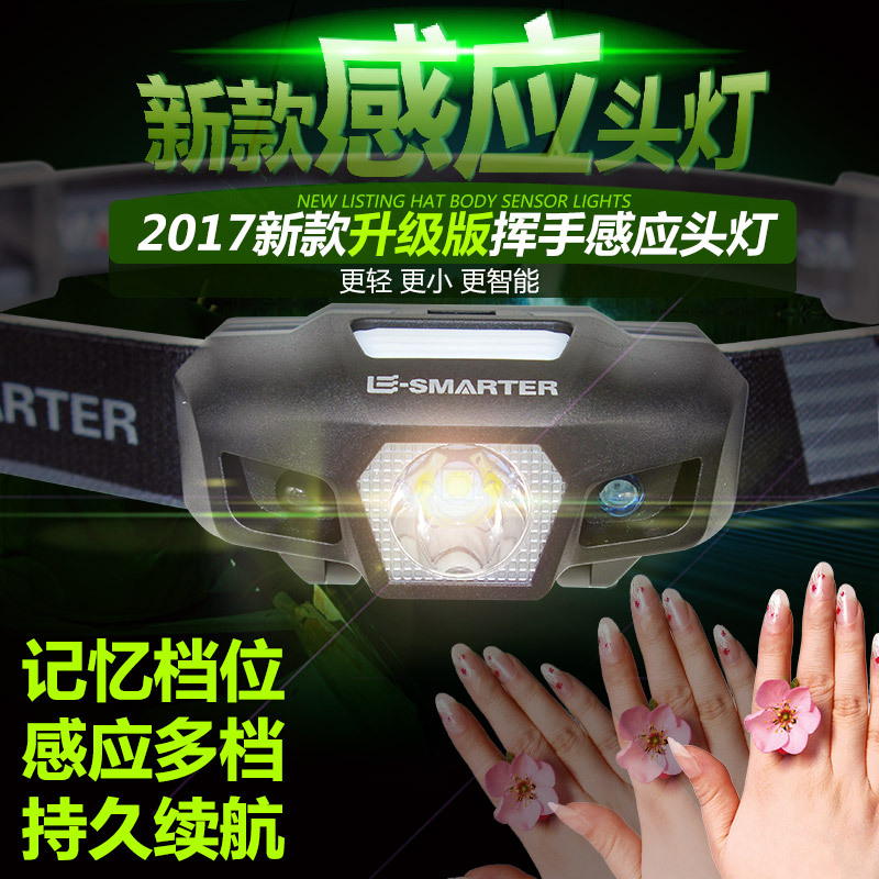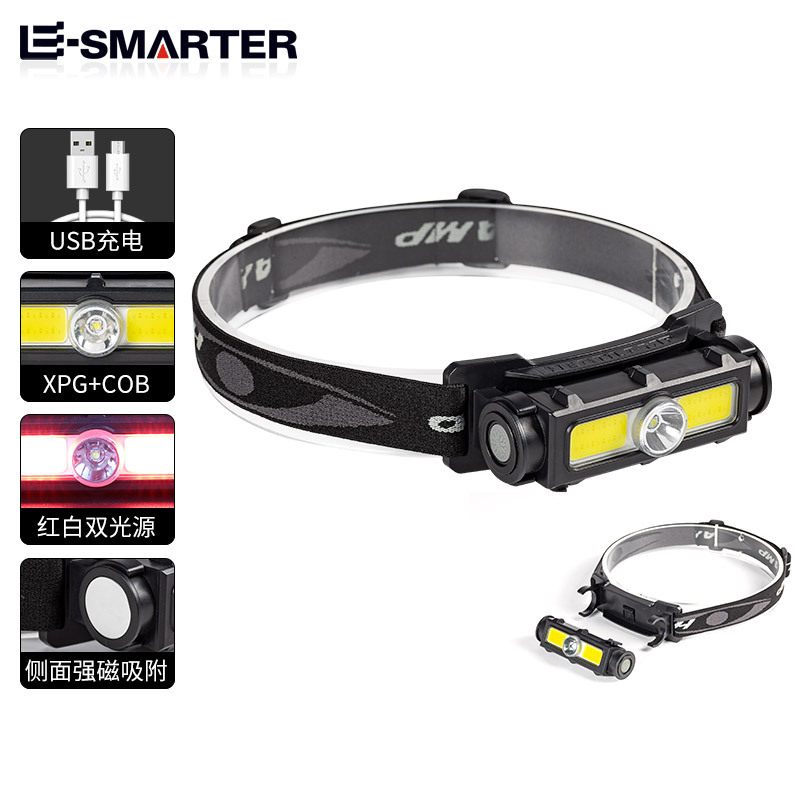 Nuevo LED transfronterizo mini multifunción para agitar luz de cabeza de sensor COB aventura al aire libre pesca luz de reparación de luz fuerte