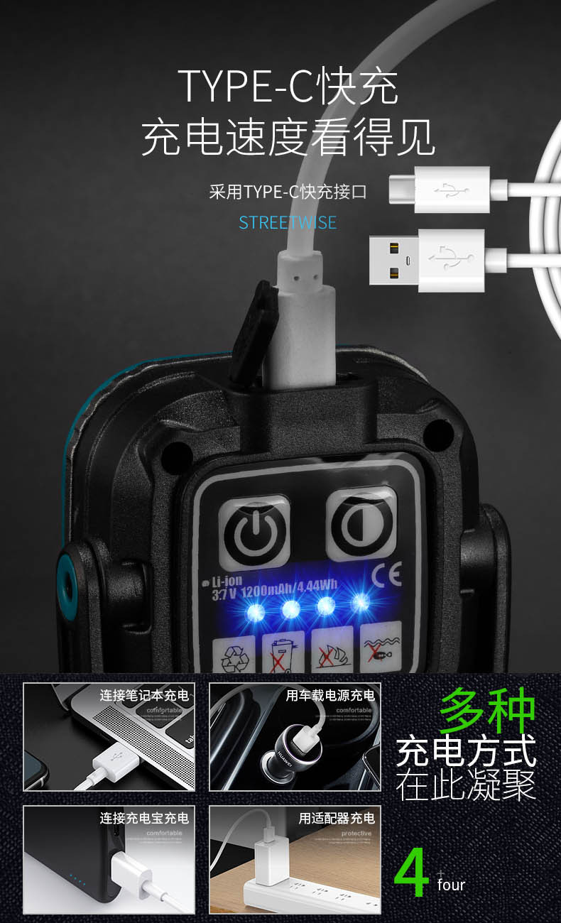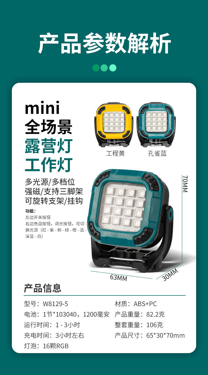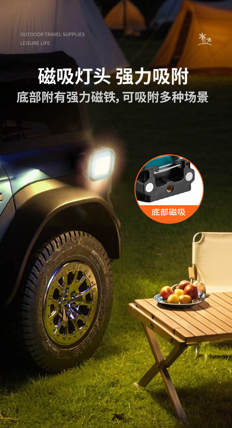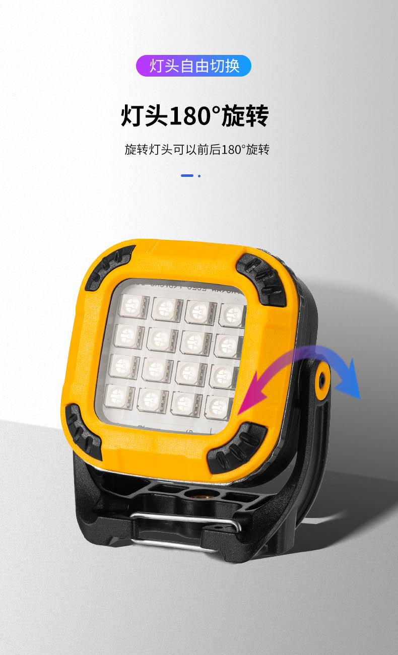 Lámpara de trabajo de escena completa transfronteriza con cabezal de lámpara giratoria multi-posición de adsorción magnética fuerte lámpara de jardín lámpara de camping al aire libre lámpara de mantenimiento