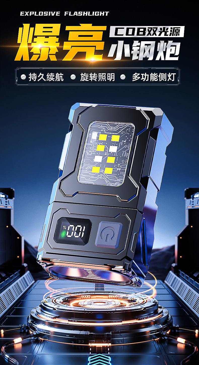Transfronteriza explosión brillante inundación pequeña linterna llavero lámpara lateral larga duración batería de litio luz fuerte cañón de acero mini linterna