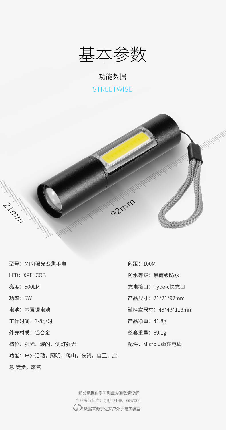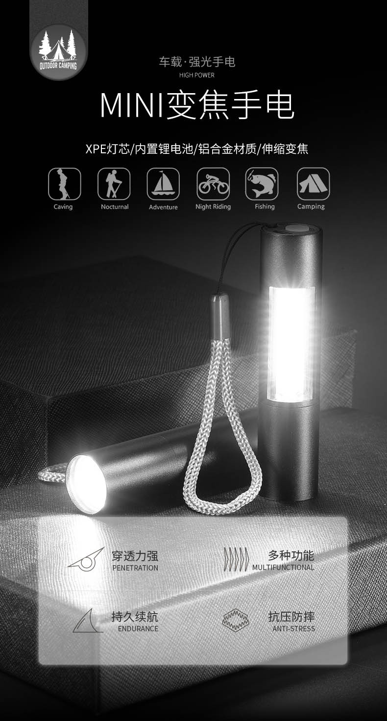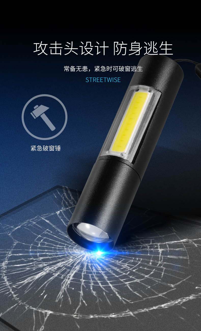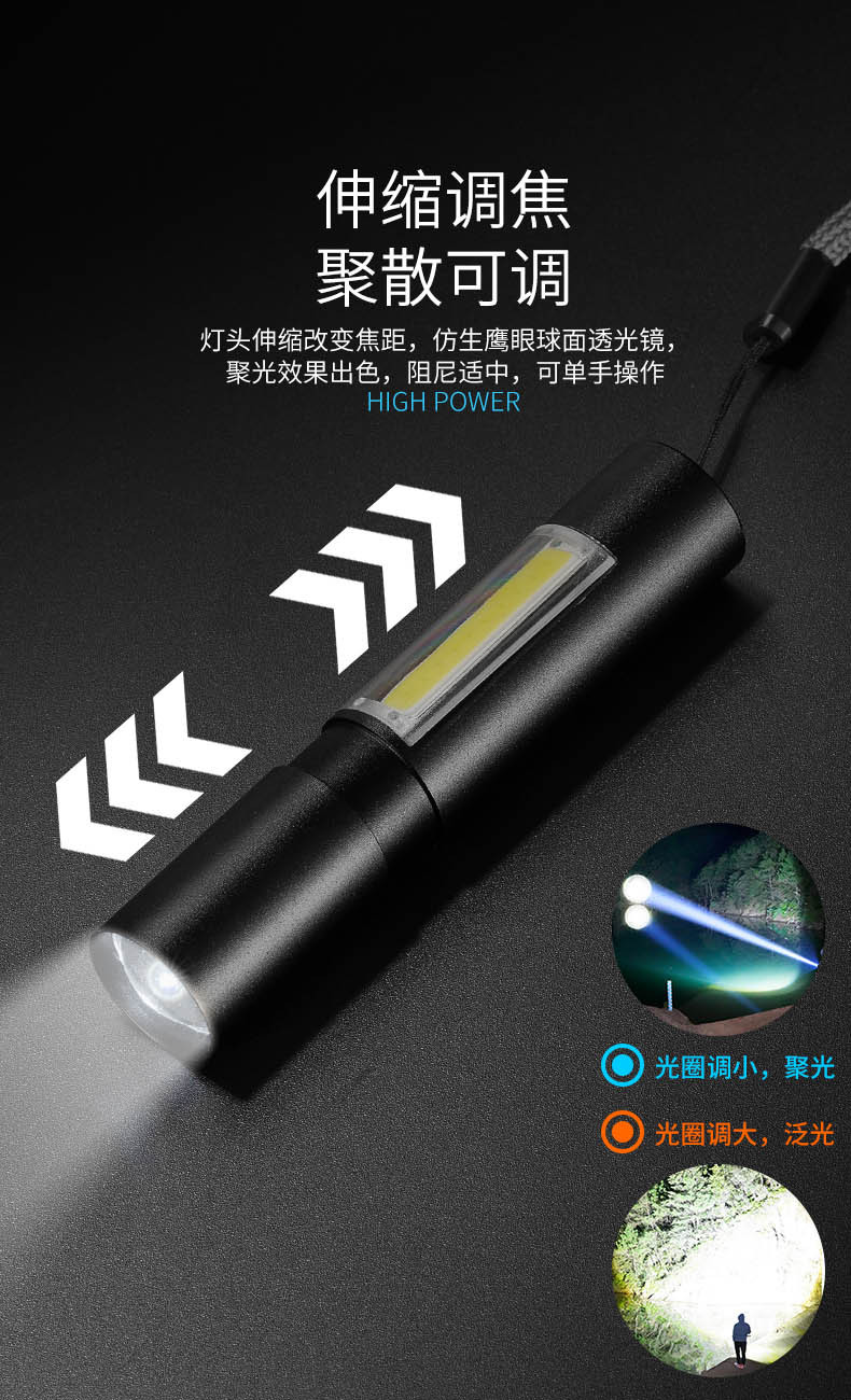 Explosión transfronteriza simple mini linterna de aluminio telescópico zoom COB portátil de larga duración pequeña linterna