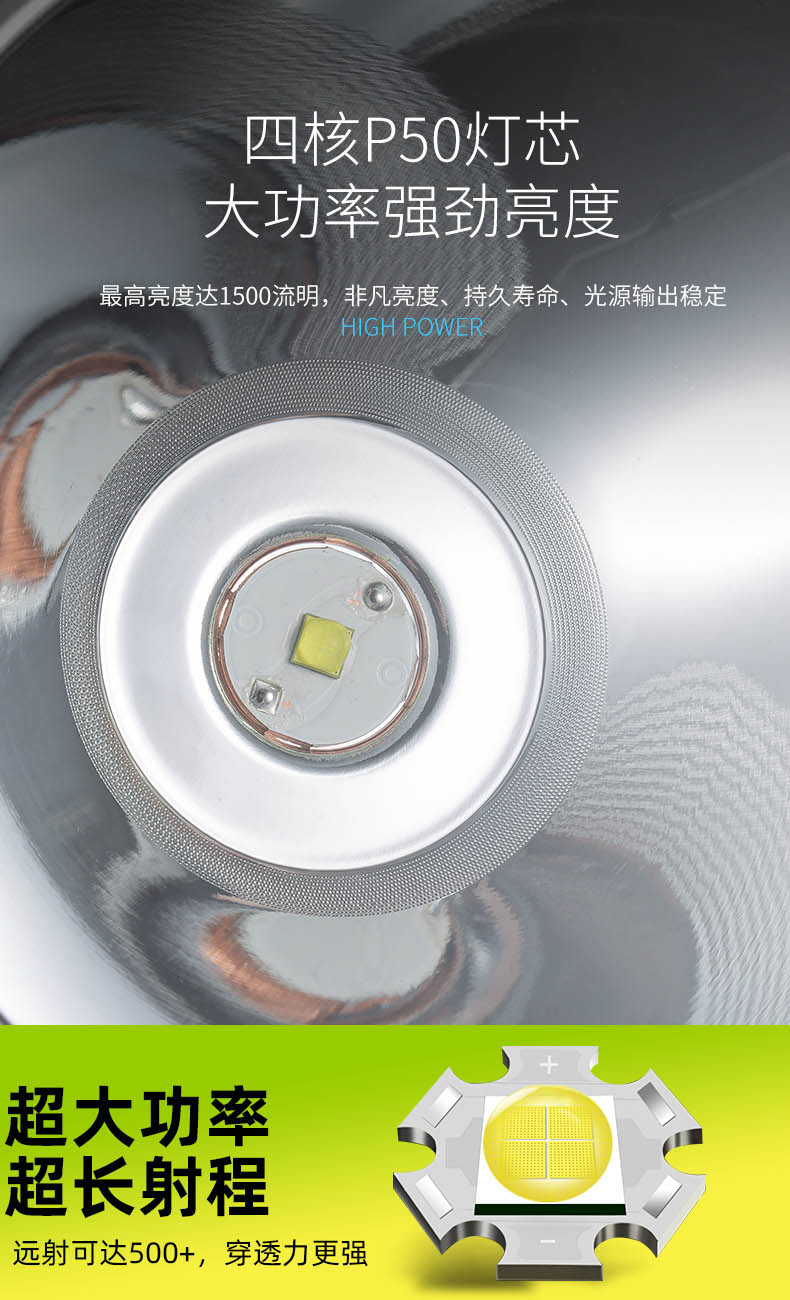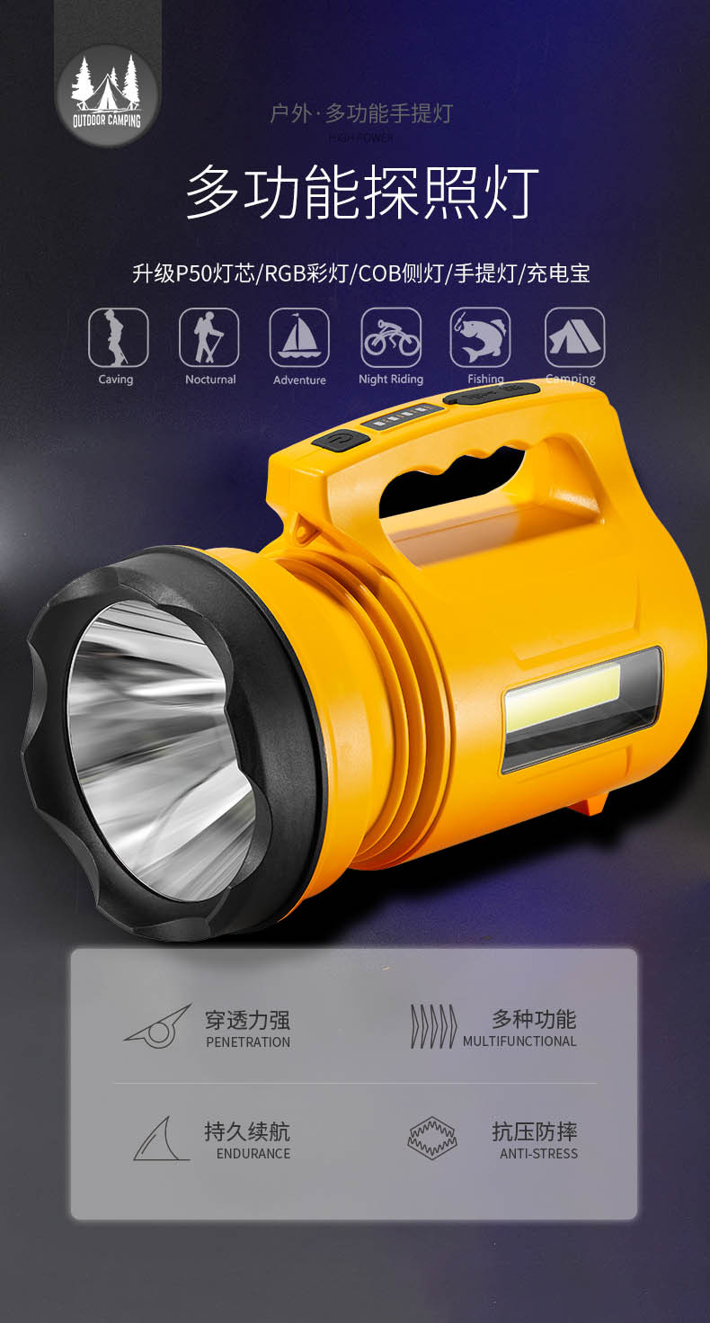 Nuevos productos transfronterizos RGB lámpara de mano de búsqueda de viaje al aire libre luz de búsqueda de luz de larga duración P50 lámpara de mano