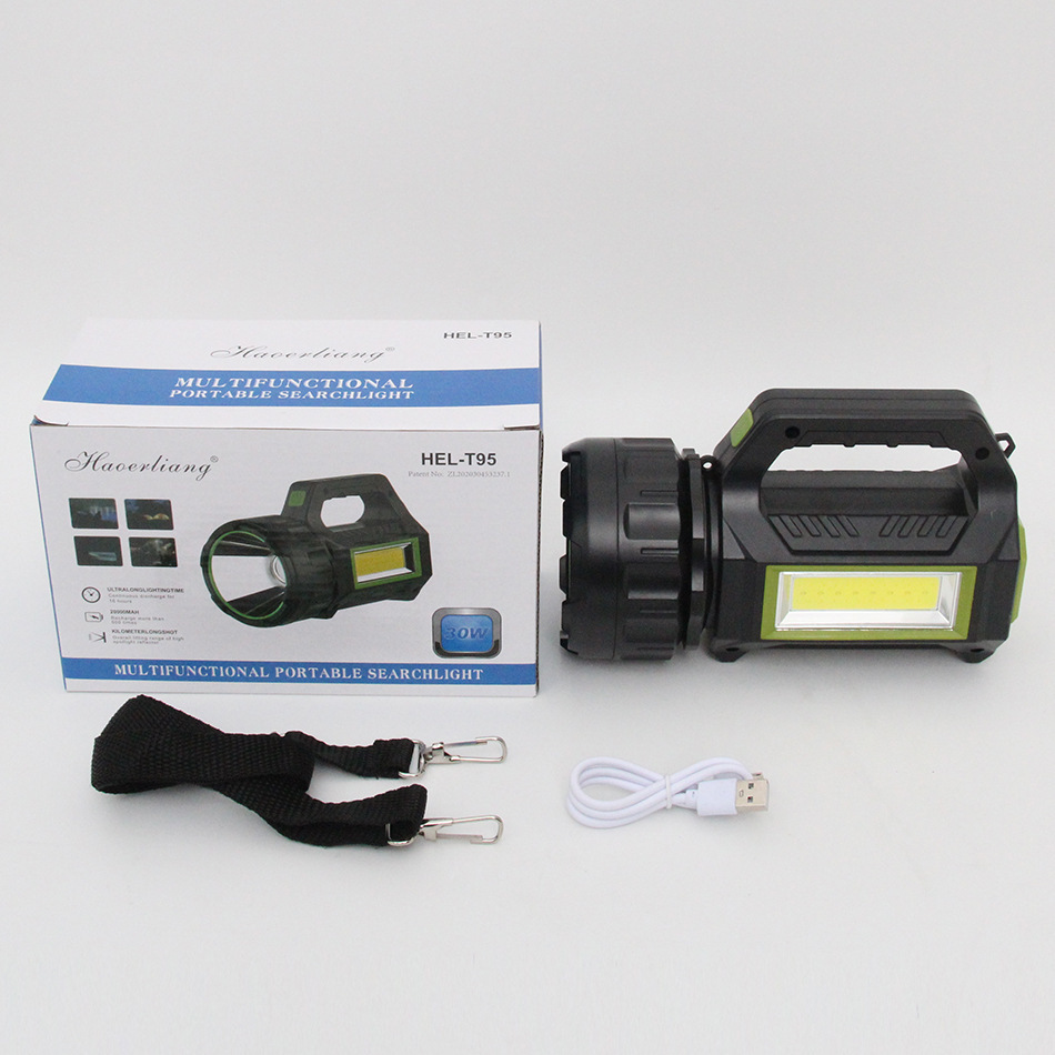 Lintera solar multifuncional con luz lateral de trabajo COB luz de luz intensa al aire libre luz de detección USB luz de advertencia blanca roja