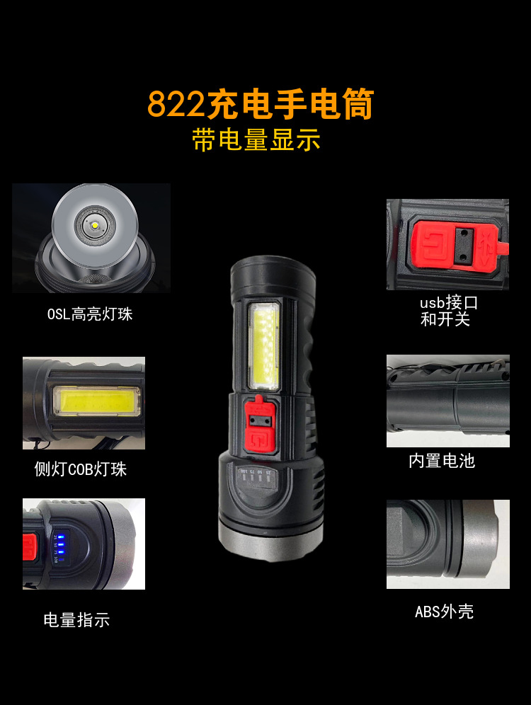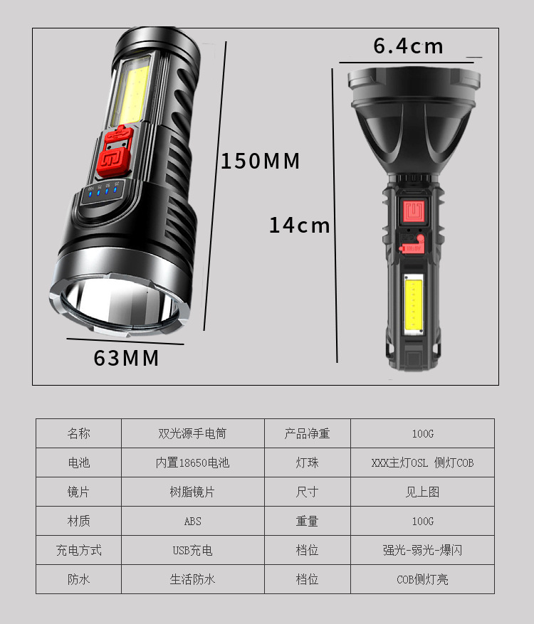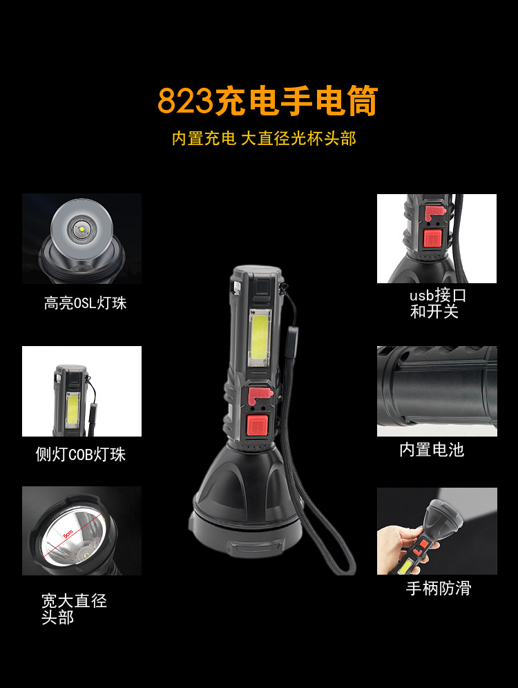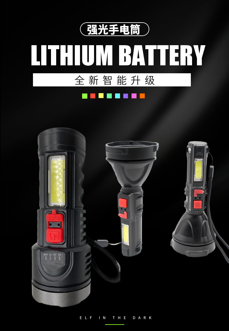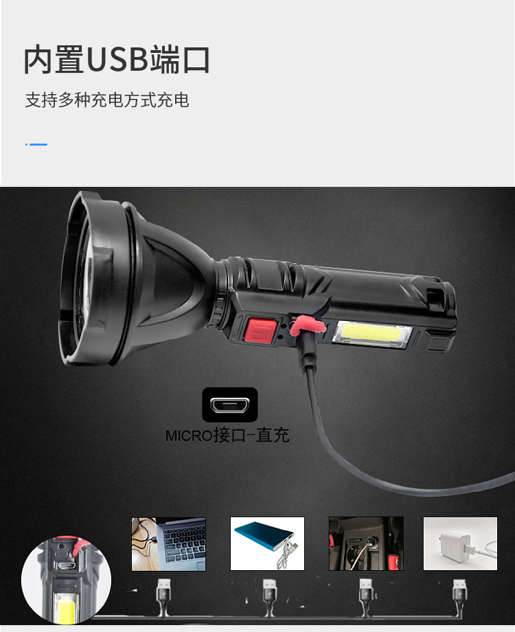 Linterna USB recargable fuerte luz remota al aire libre hogar multifuncional portátil mini linterna con luz lateral COB