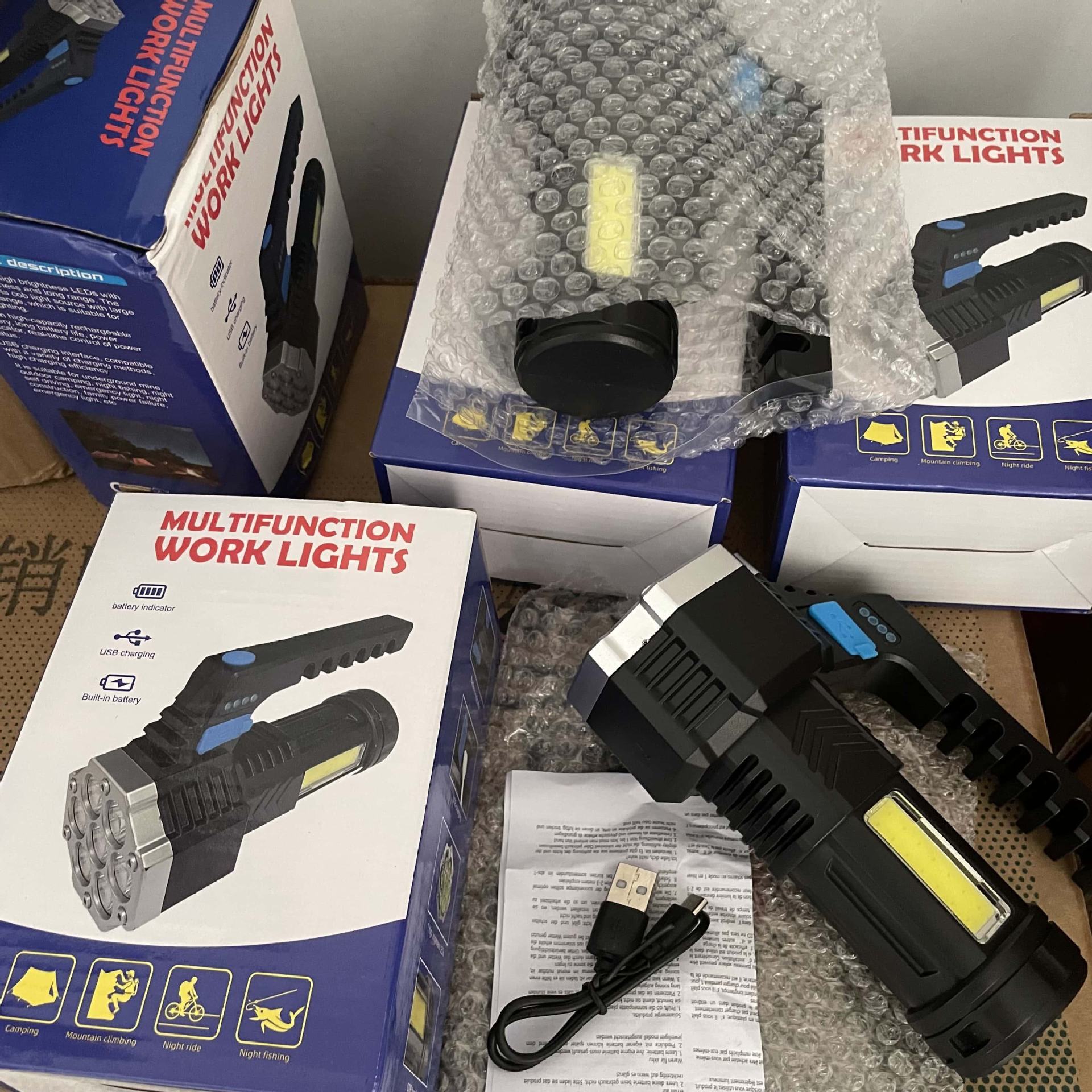 Transfronterizos siete núcleos luz intensa lámpara portátil USB carga muestra la linterna lateral COB linterna de mano de emergencia doméstica linterna