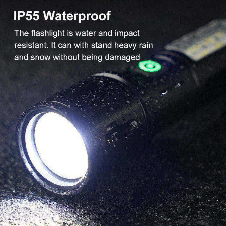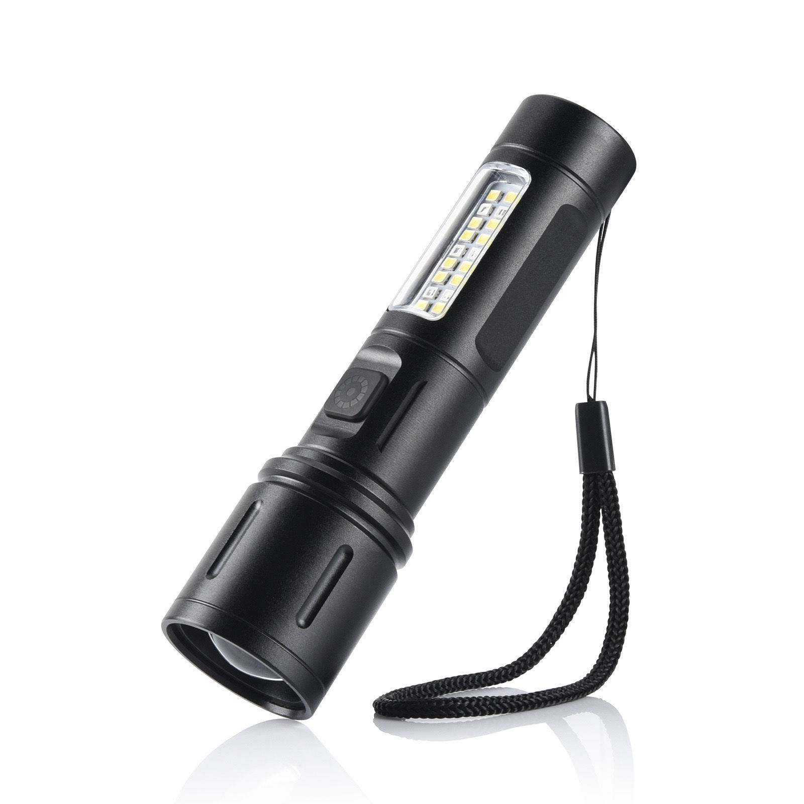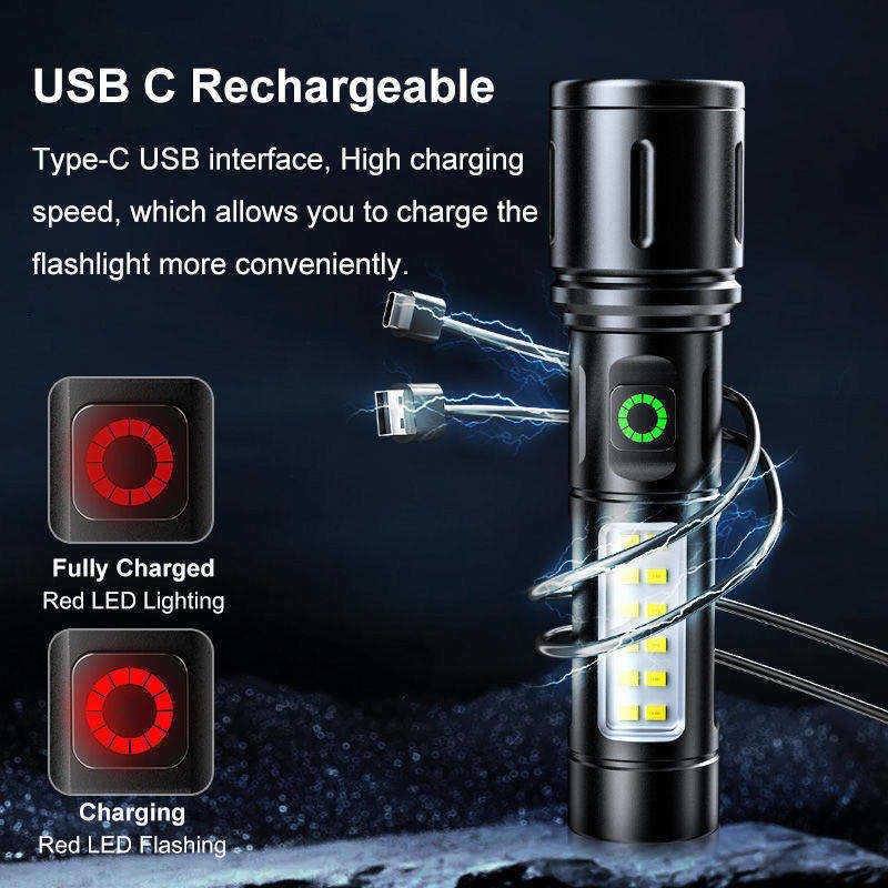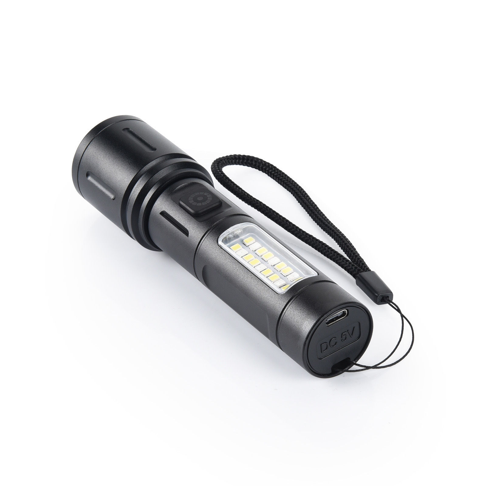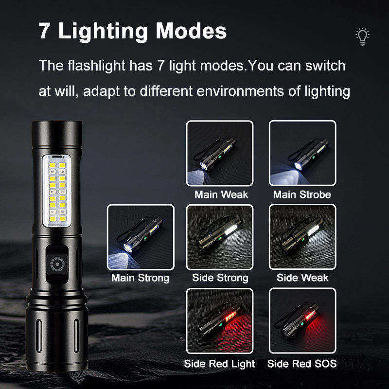 Antorcha láser blanca telescópica zoom con lámpara lateral de aleación de aluminio iluminación de luz intensa antorcha portátil multifuncional