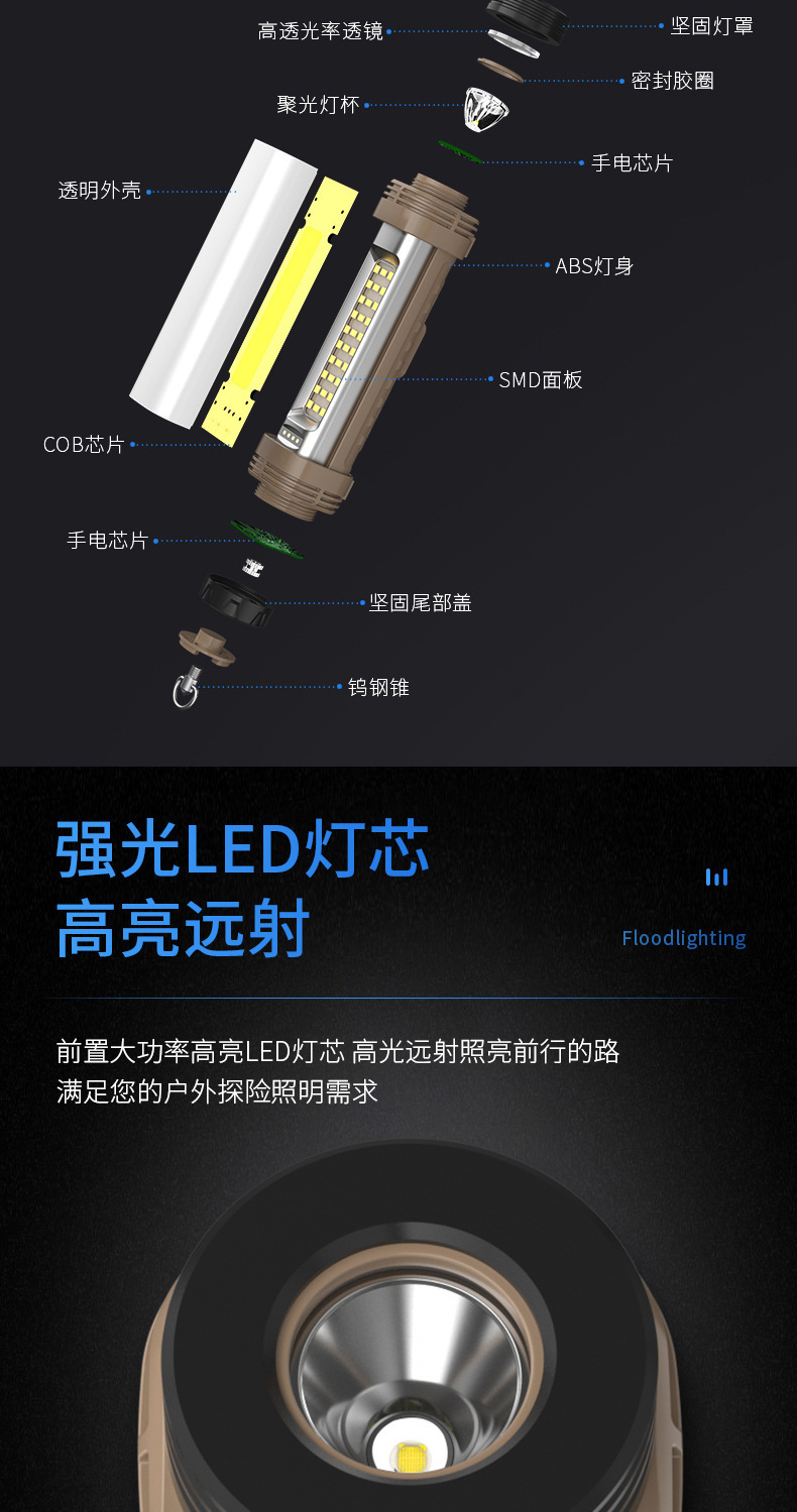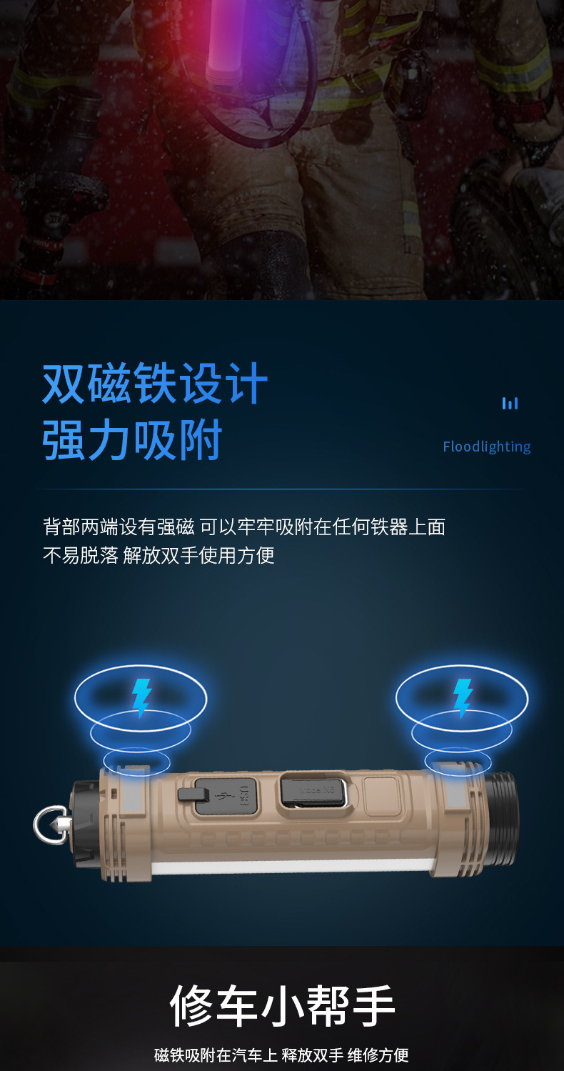 Lámpara de trabajo de mano multifuncional de reparación de automóviles linterna de carga de luz fuerte gancho de cinta de succión magnética fuerte lámpara de iluminación de emergencia