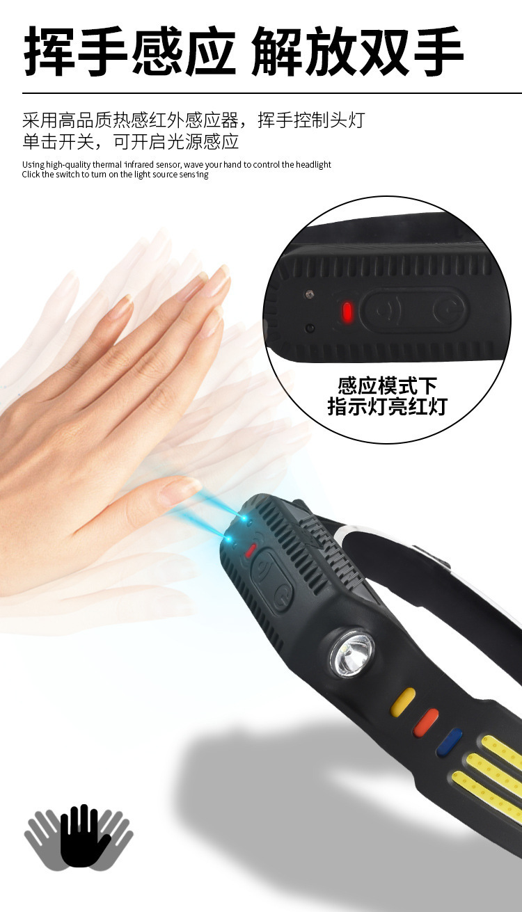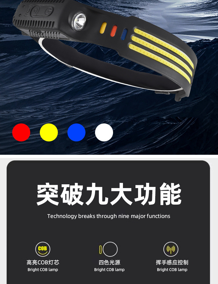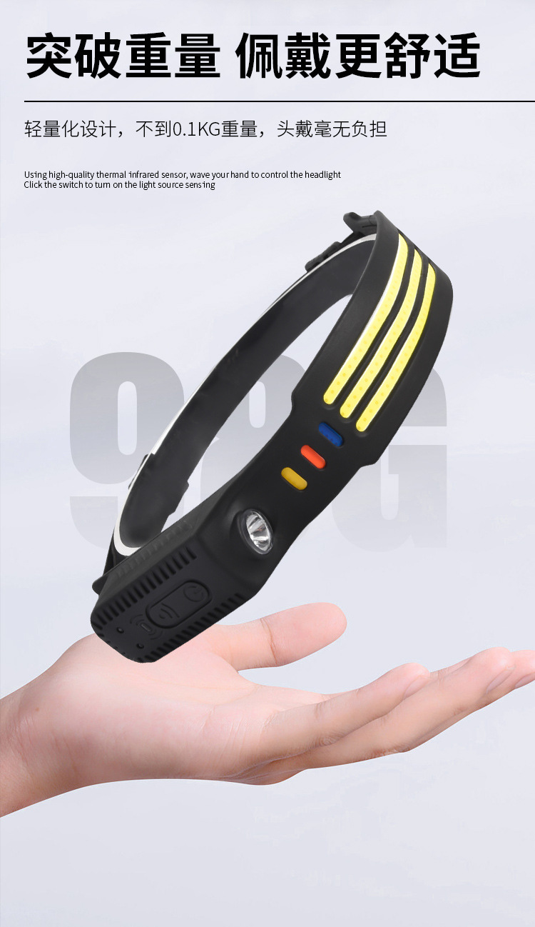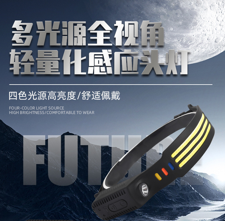 Transfronterizos nuevos faro de inducción al aire libre conducir luz USB recargable luz de carrera nocturna LED luz de cabeza calva fuerte pesca nocturna