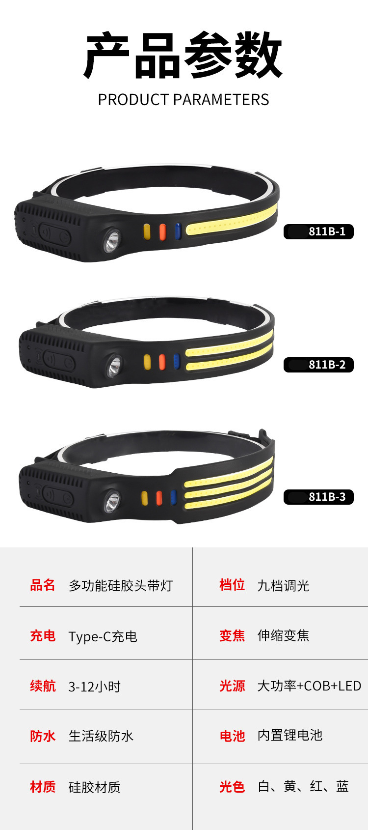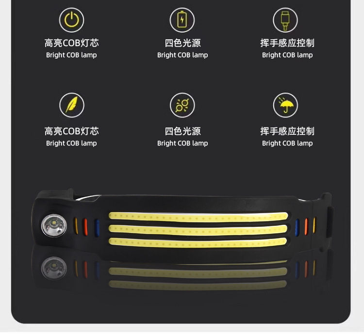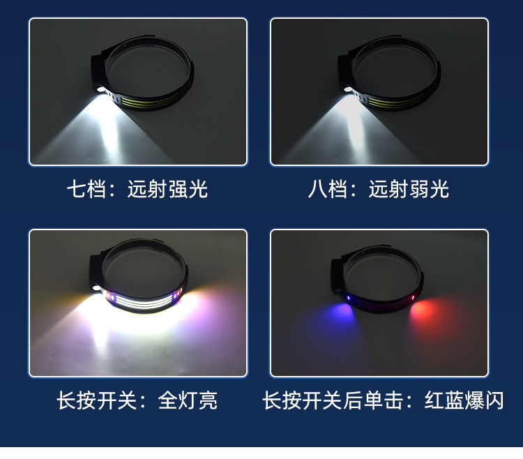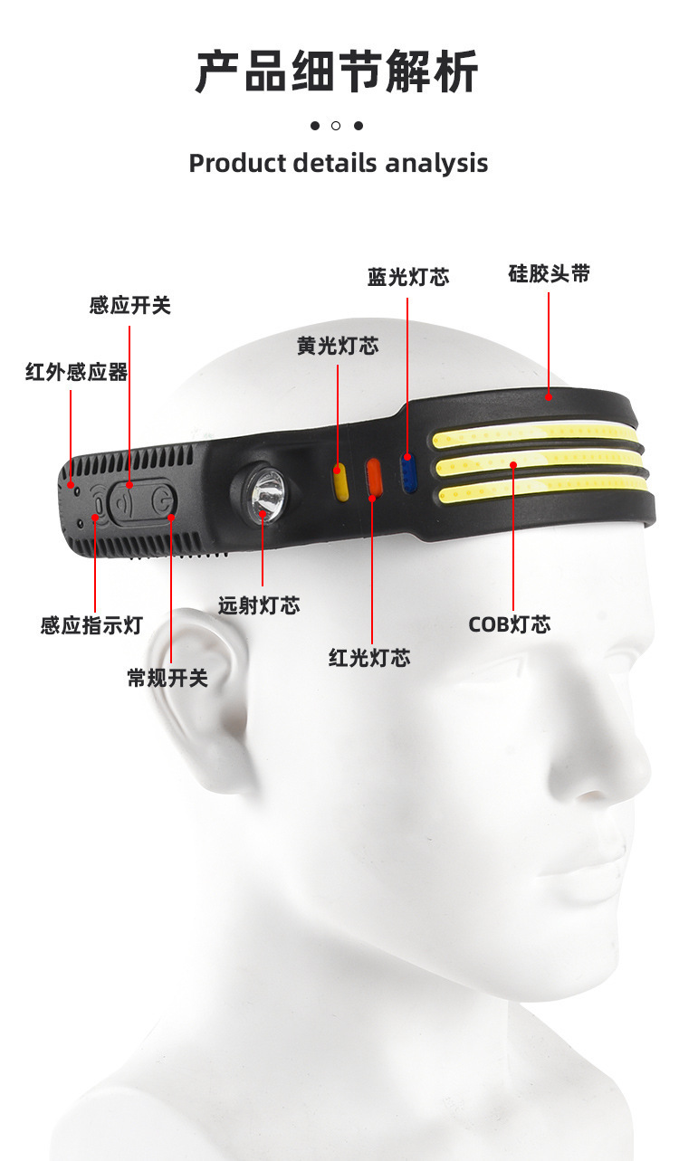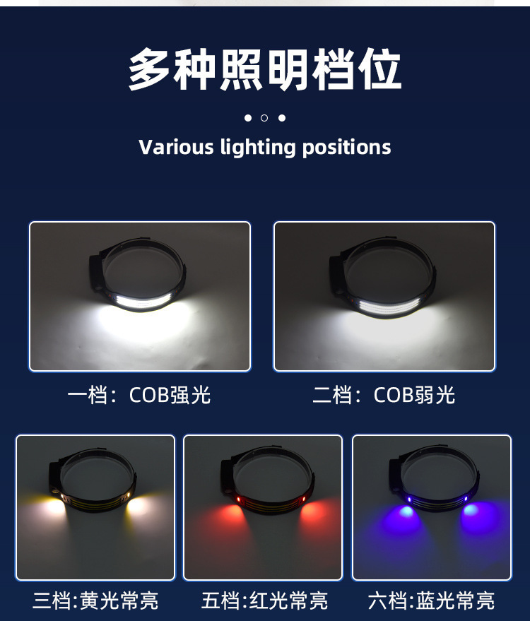 Transfronterizos nuevos faro de inducción al aire libre conducir luz USB recargable luz de carrera nocturna LED luz de cabeza calva fuerte pesca nocturna