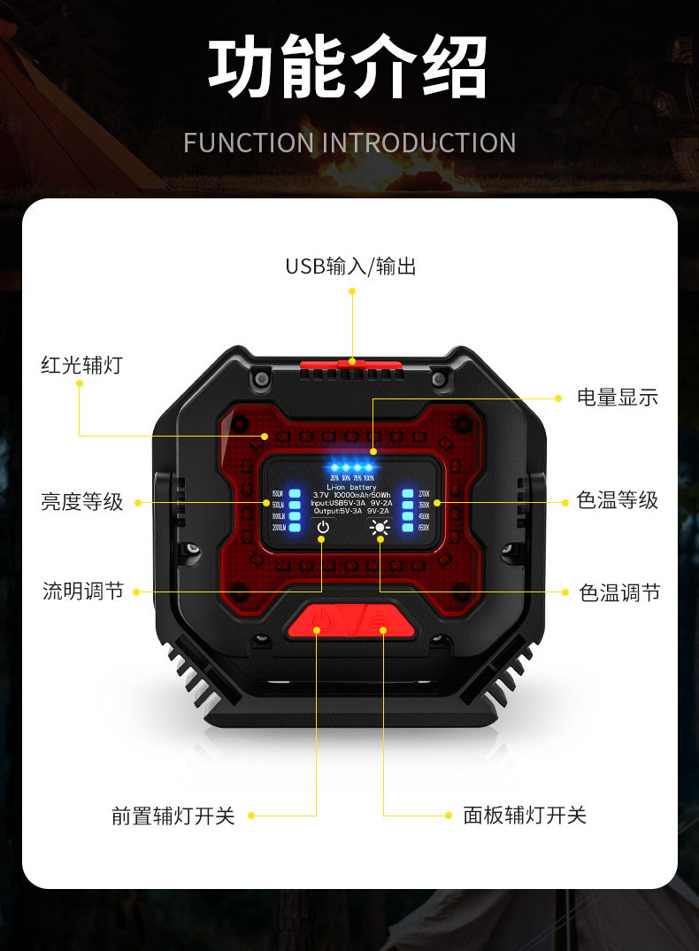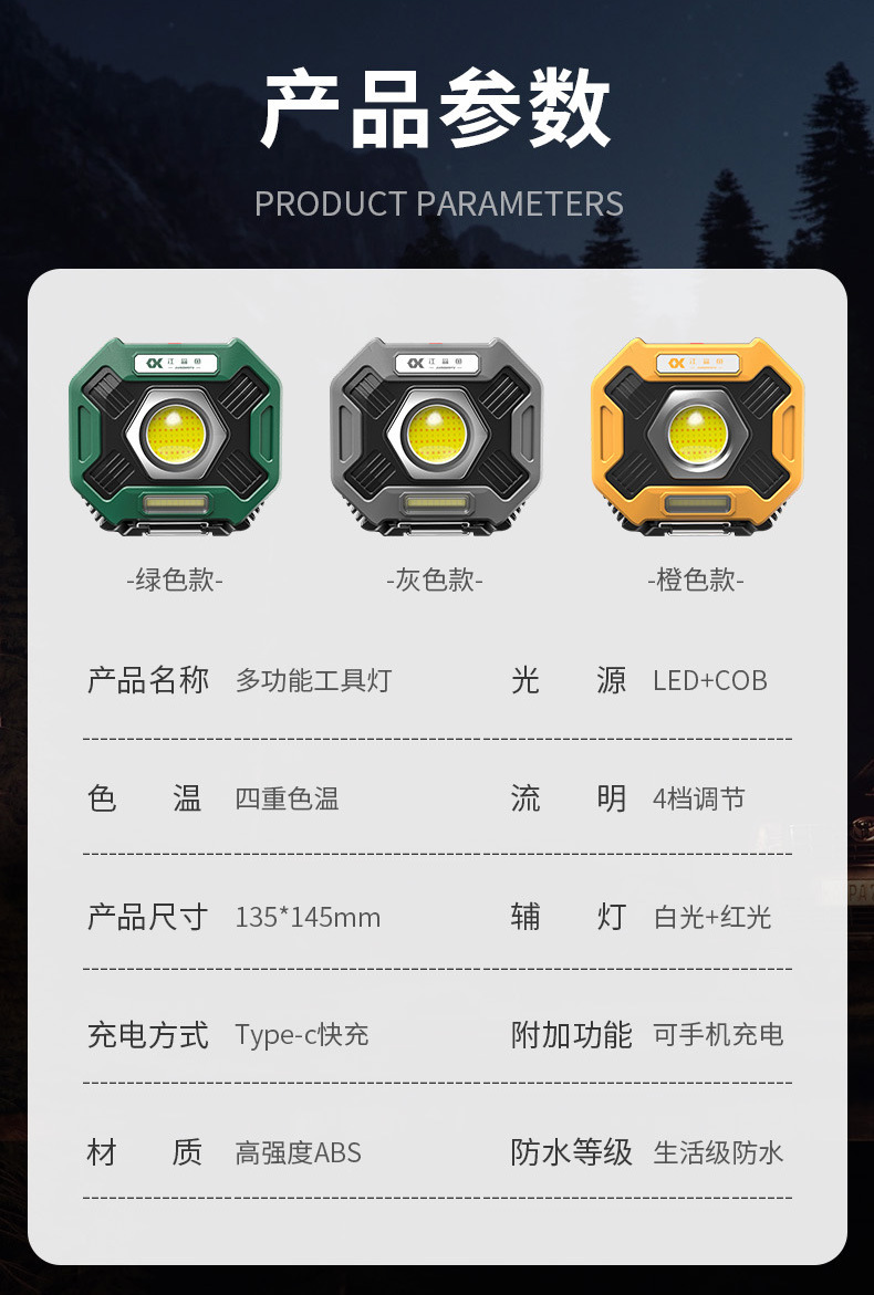 reparación de automóviles reparación de automóviles lámpara de trabajo reparación de herramientas LED carga magnética fuerte iluminación de emergencia anti-caída multifunción