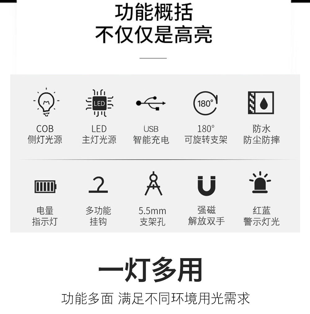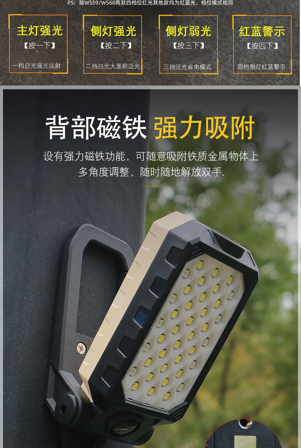 luces de trabajo w599 reparación de automóviles luz de luz super brillante con imán de verificación de automóviles luz de emergencia linterna