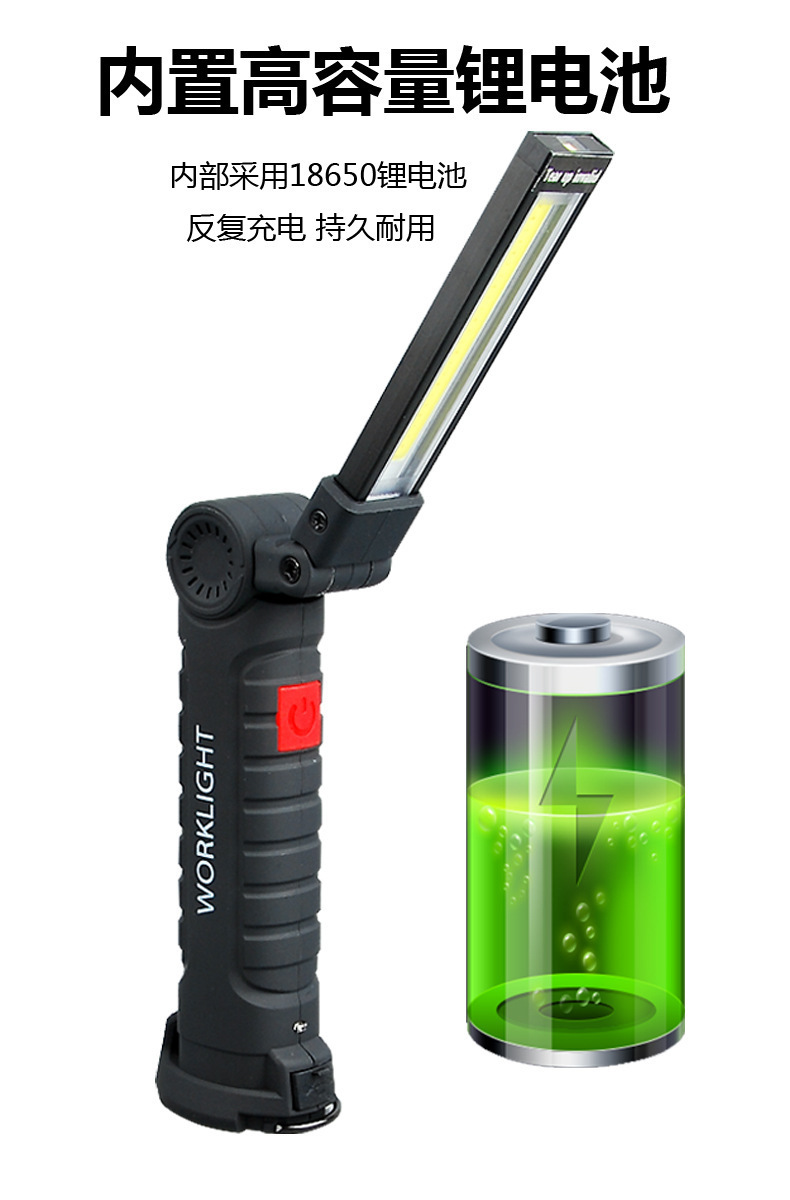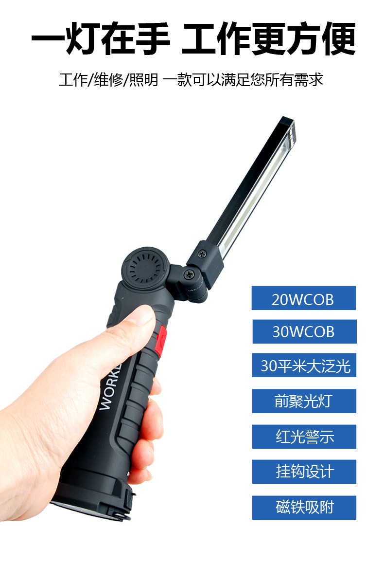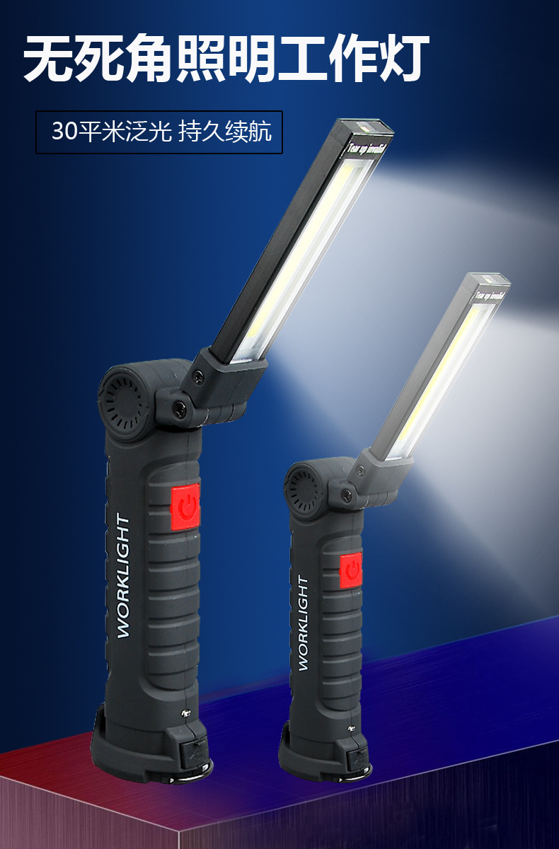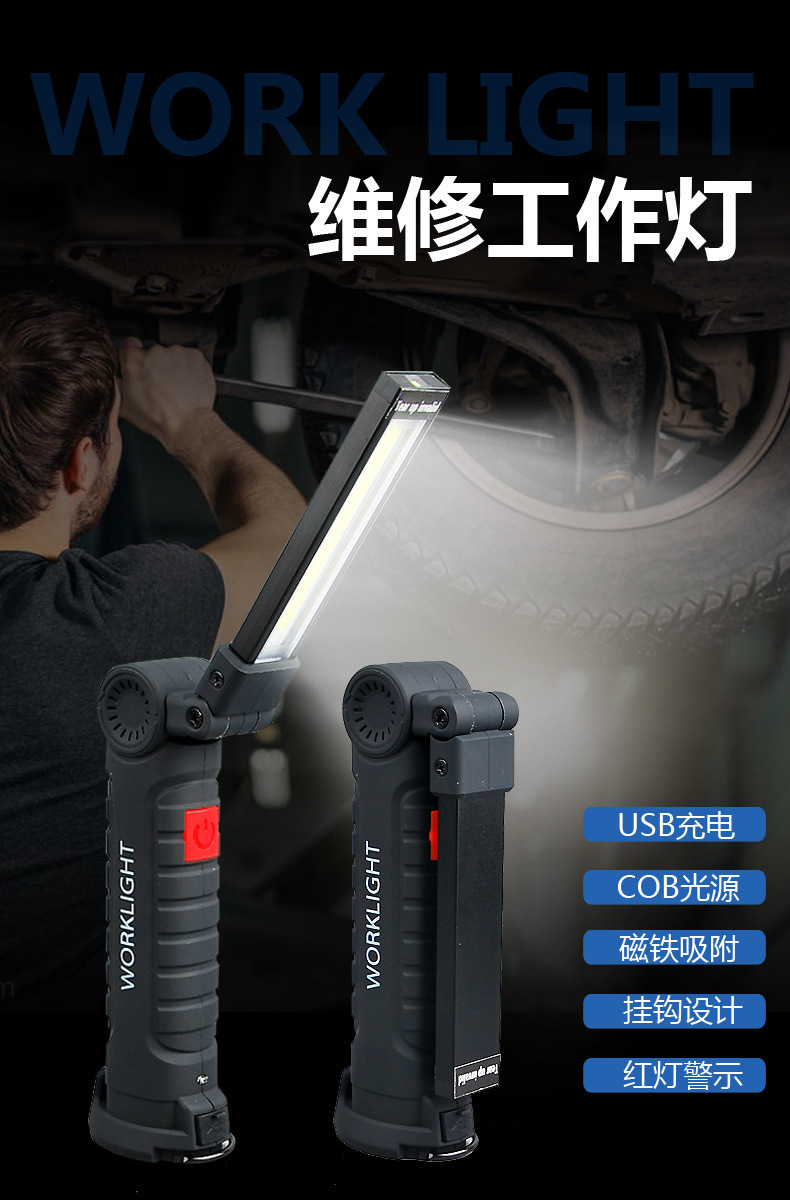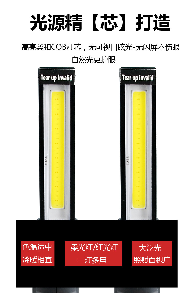 Luz de reparación de auto con imán multifuncional COB transfronterizo, luz de advertencia LED roja, linterna potente, luz de mantenimiento