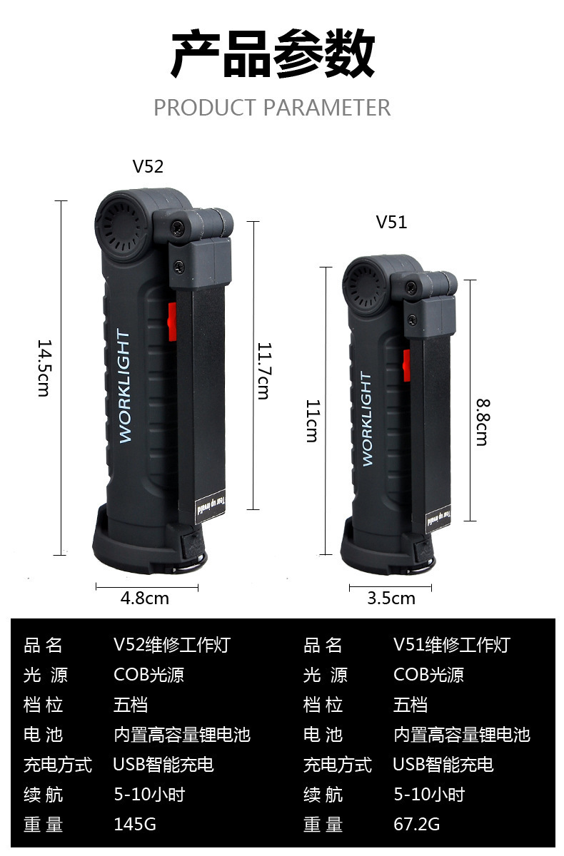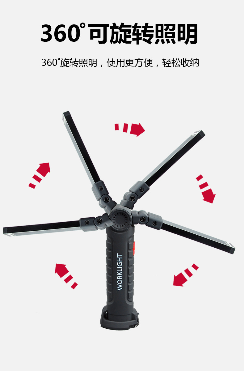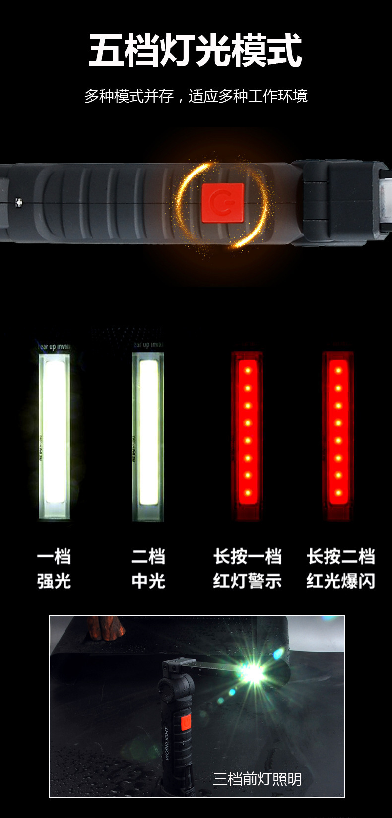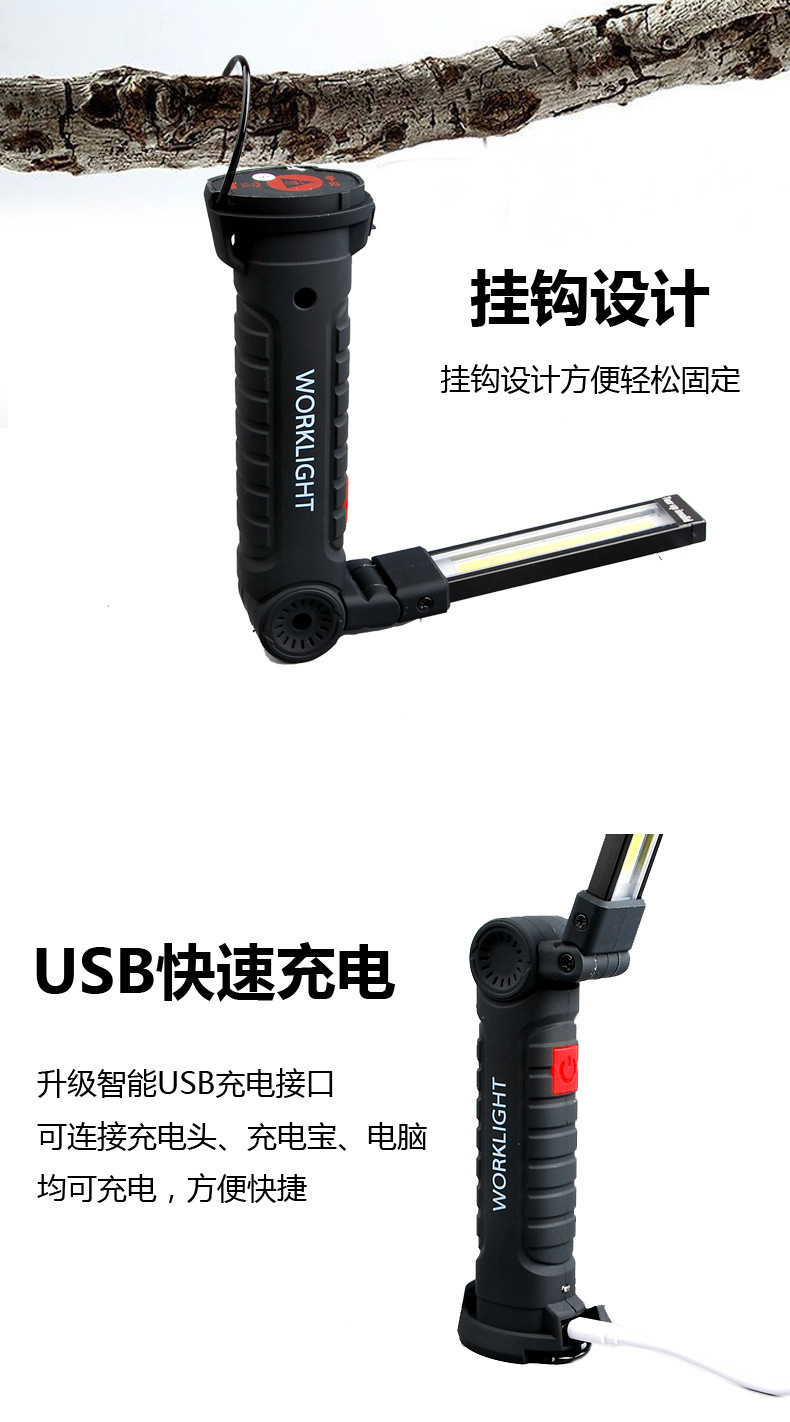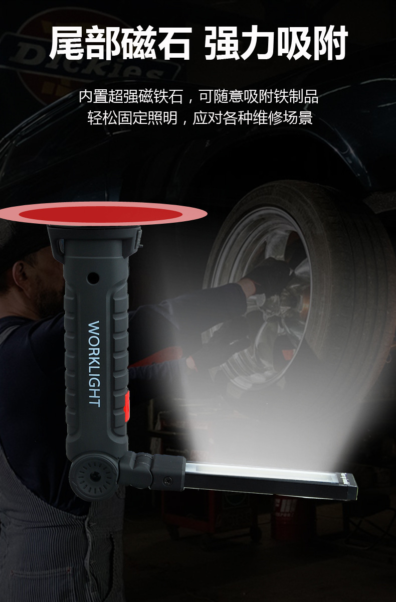 Luz de reparación de auto con imán multifuncional COB transfronterizo, luz de advertencia LED roja, linterna potente, luz de mantenimiento