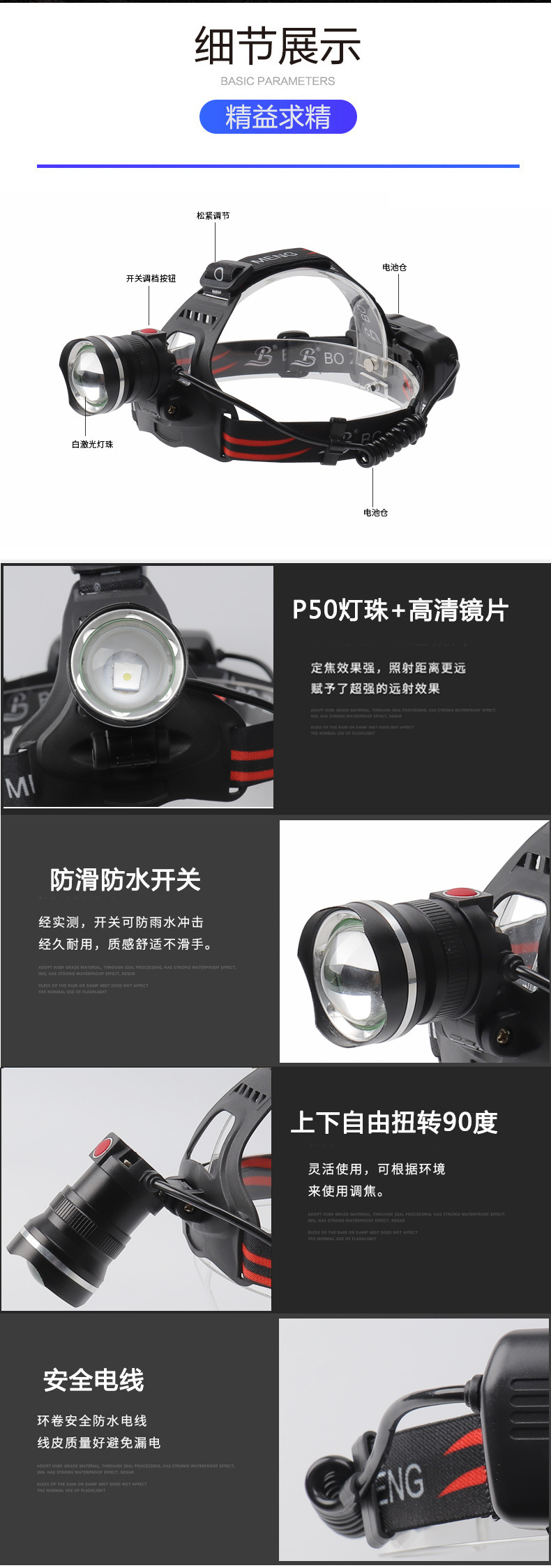 Generación de una sola pieza de luz fuerte faro blanco láser faro USB carga telescópica zoom aleación de aluminio al aire libre proyector remoto