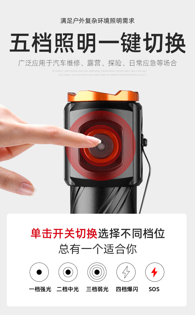 Nuevo portátil fuerte luz linterna TYPE-C recargable al aire libre resaltar pluma titular mini foco fijo linterna pequeña