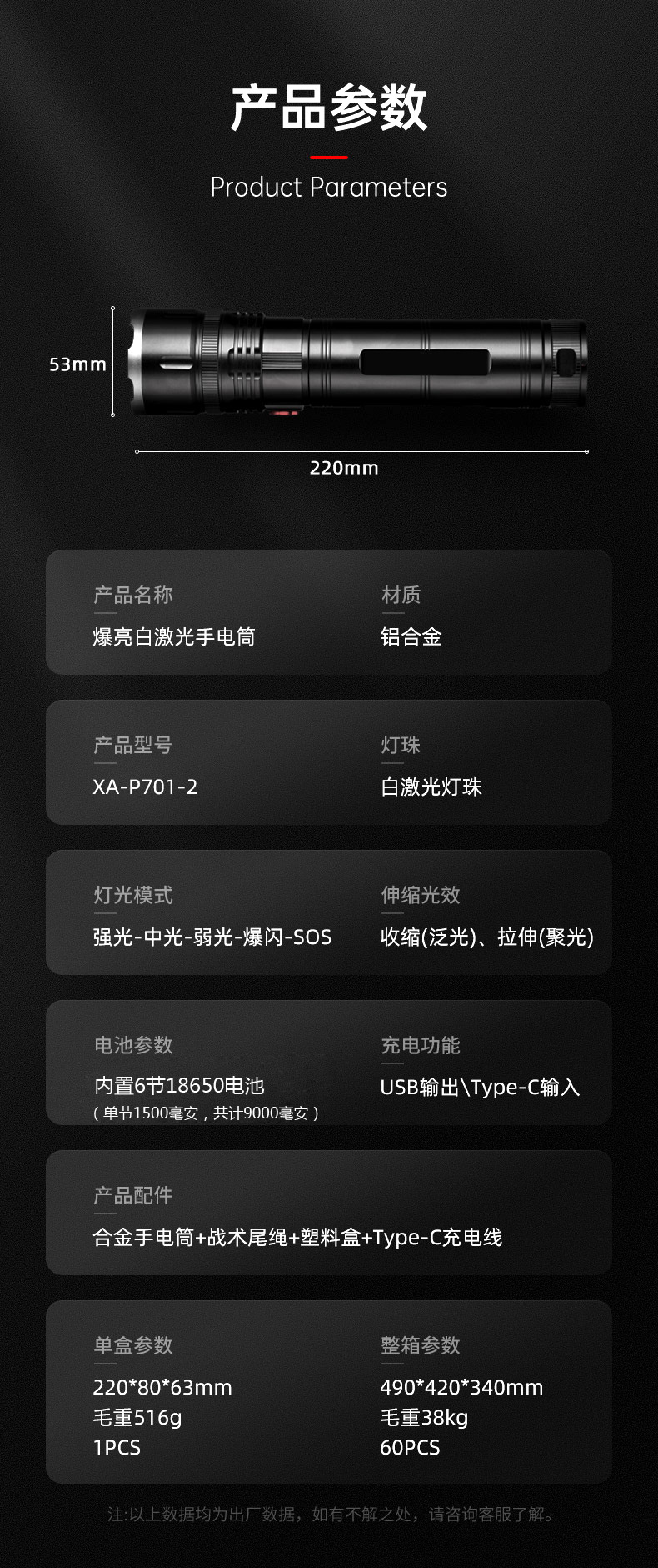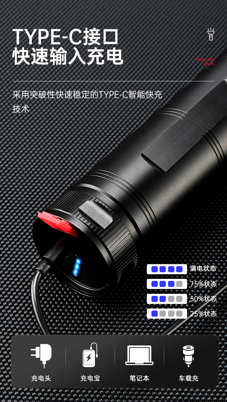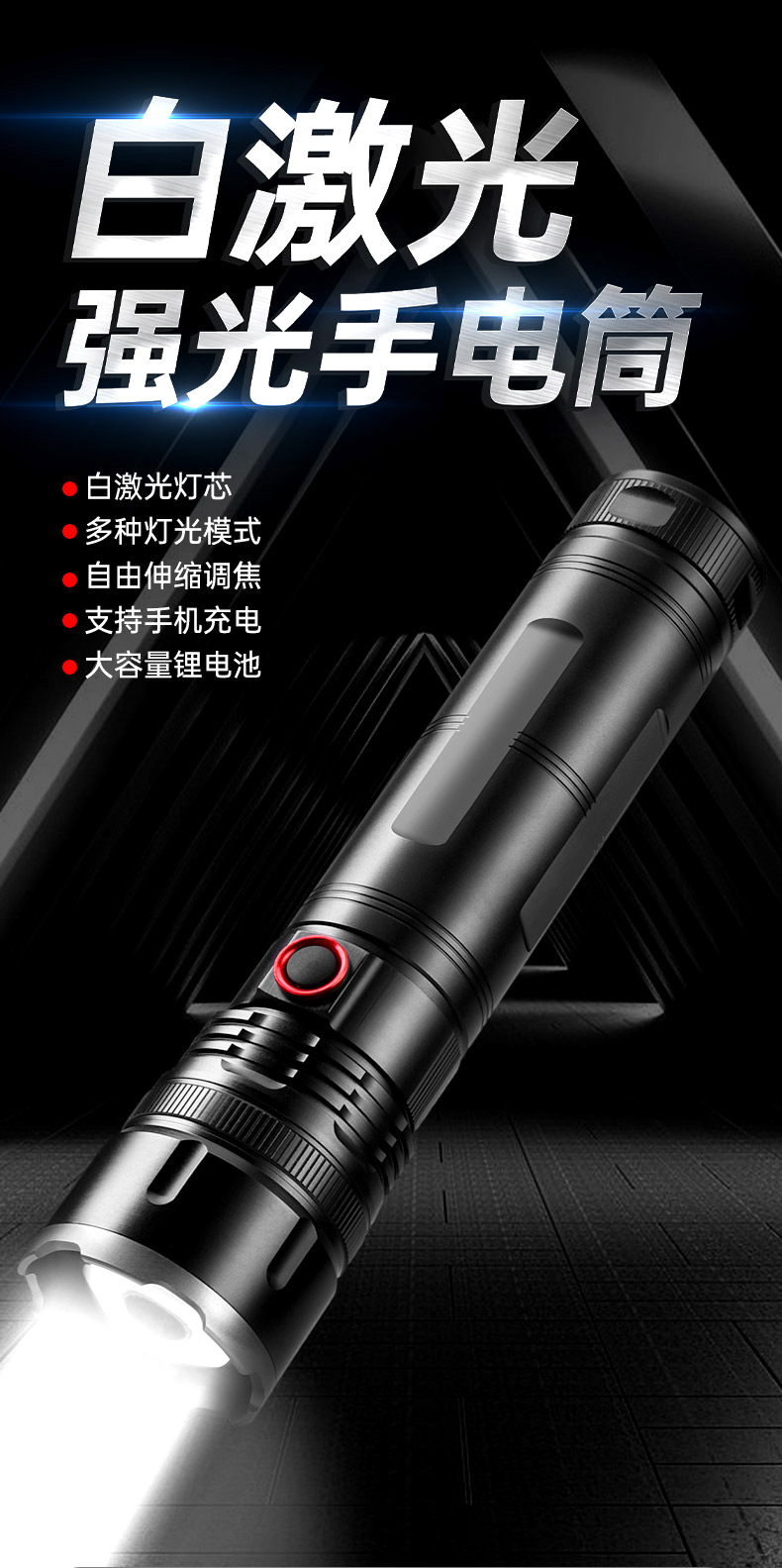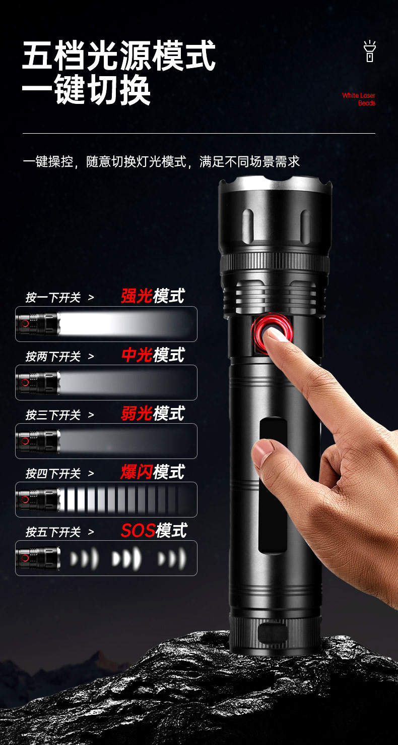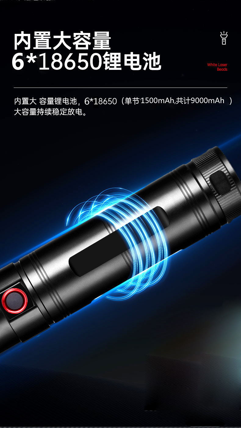 De alta potencia láser pistola linterna fuerte luz recargable zoom telescópico Super brillante de largo alcance linterna al aire libre