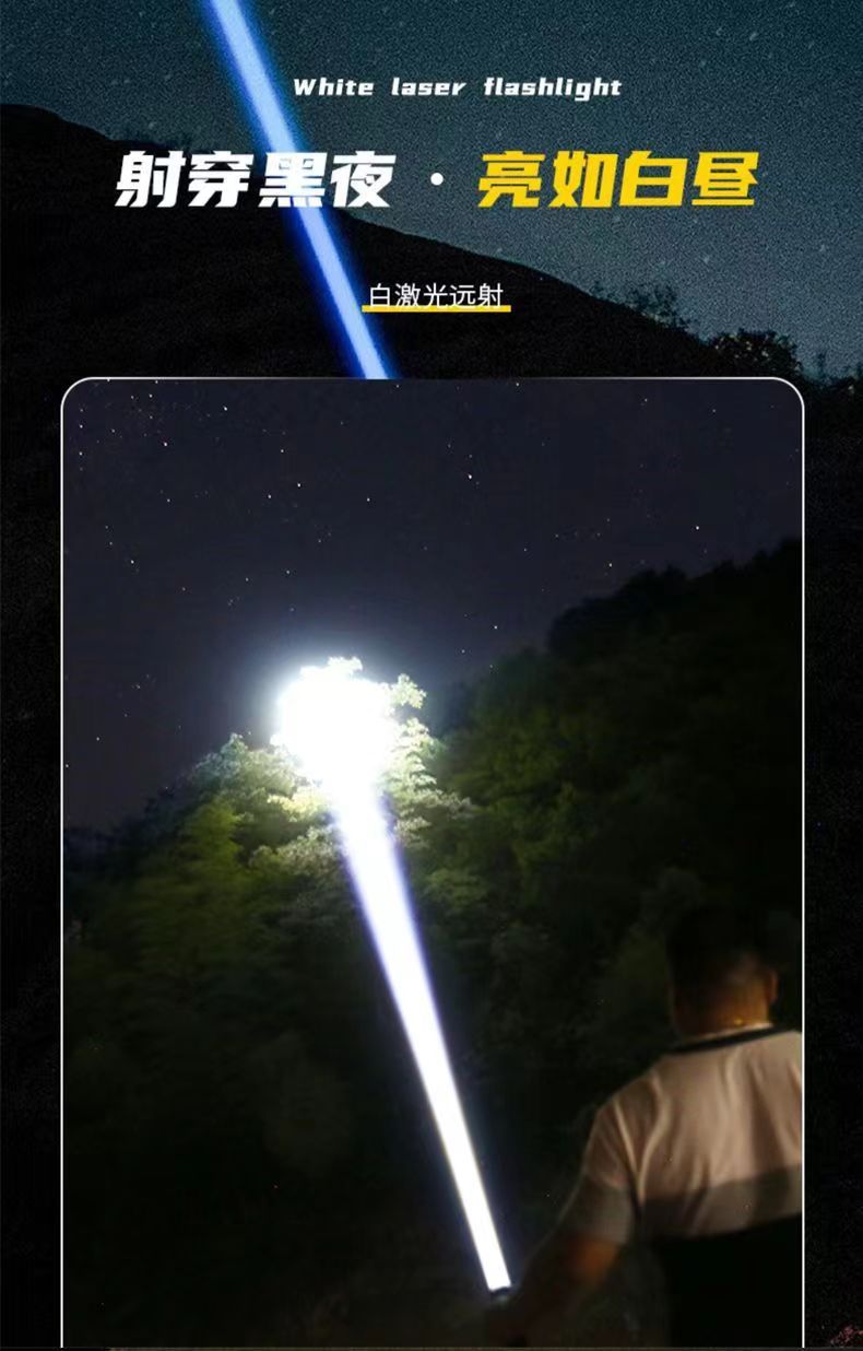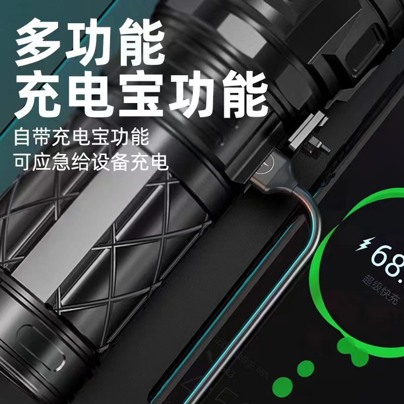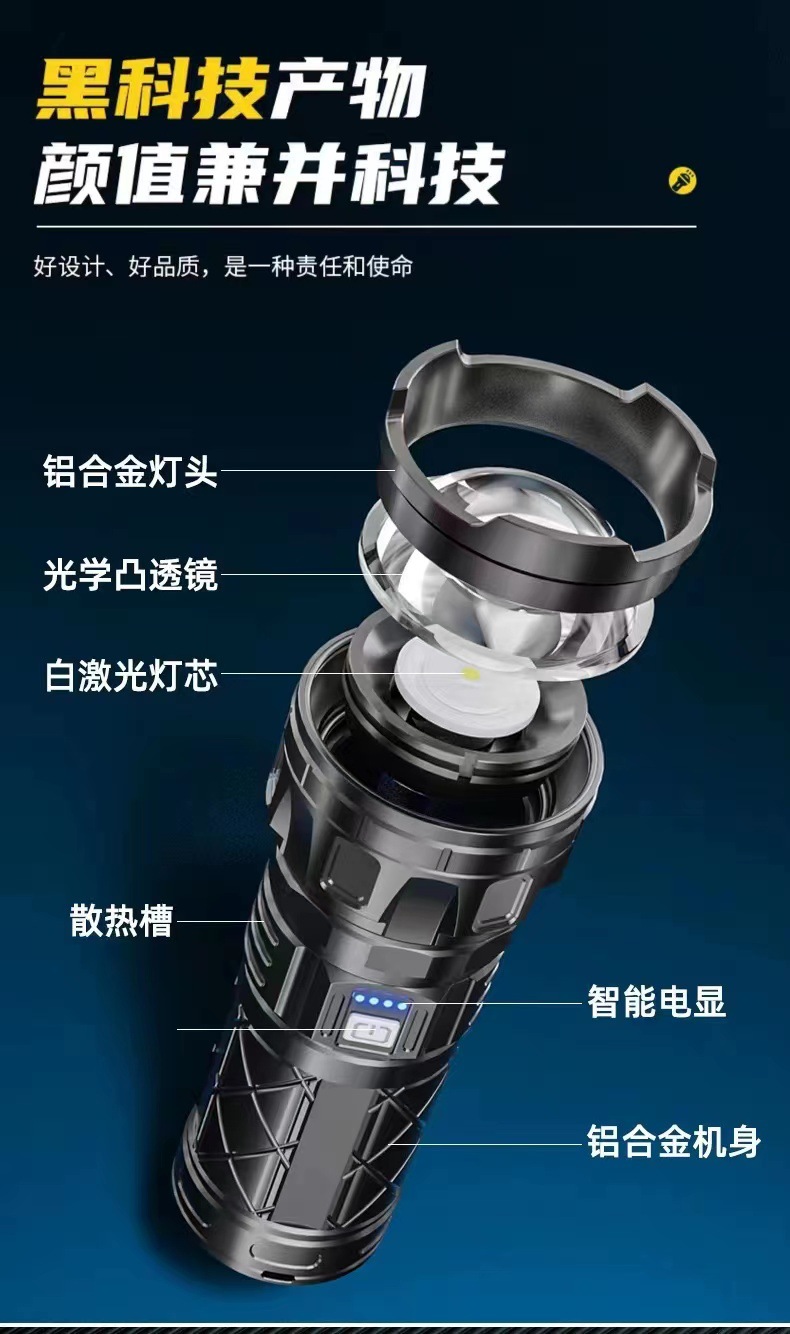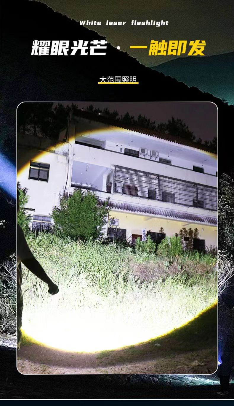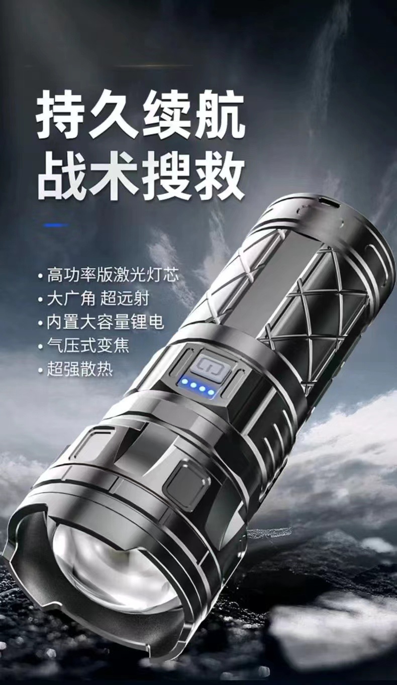Linterna láser blanco al aire libre tipo-C de carga de emergencia de larga resistencia pantalla de potencia lámpara de iluminación de zoom telescópico