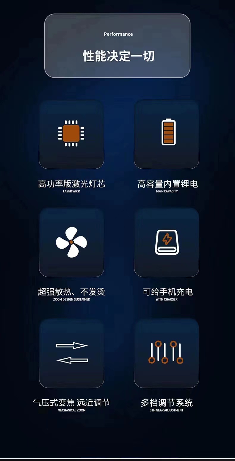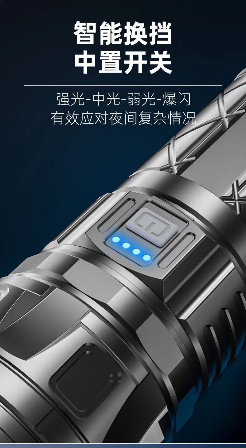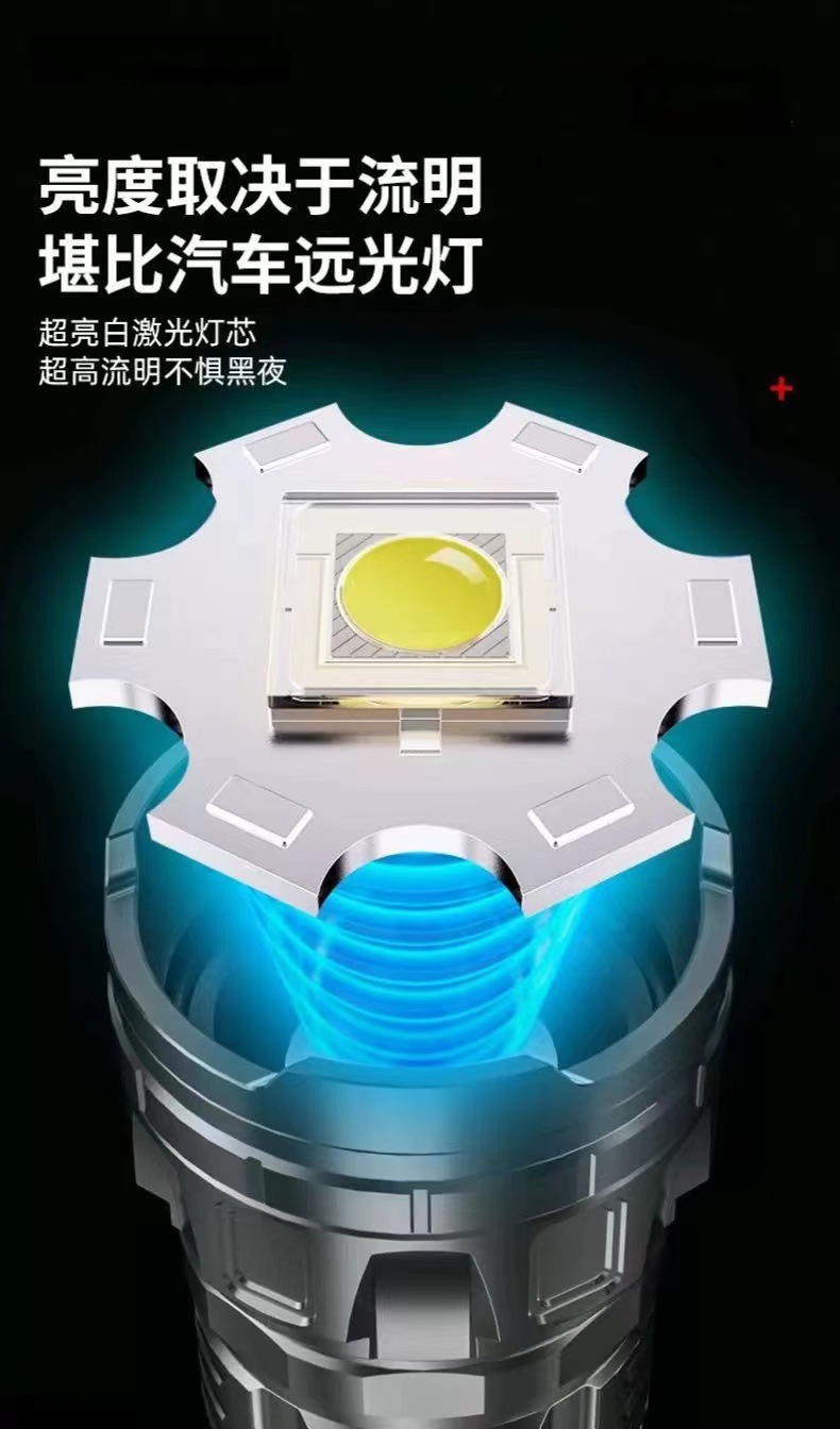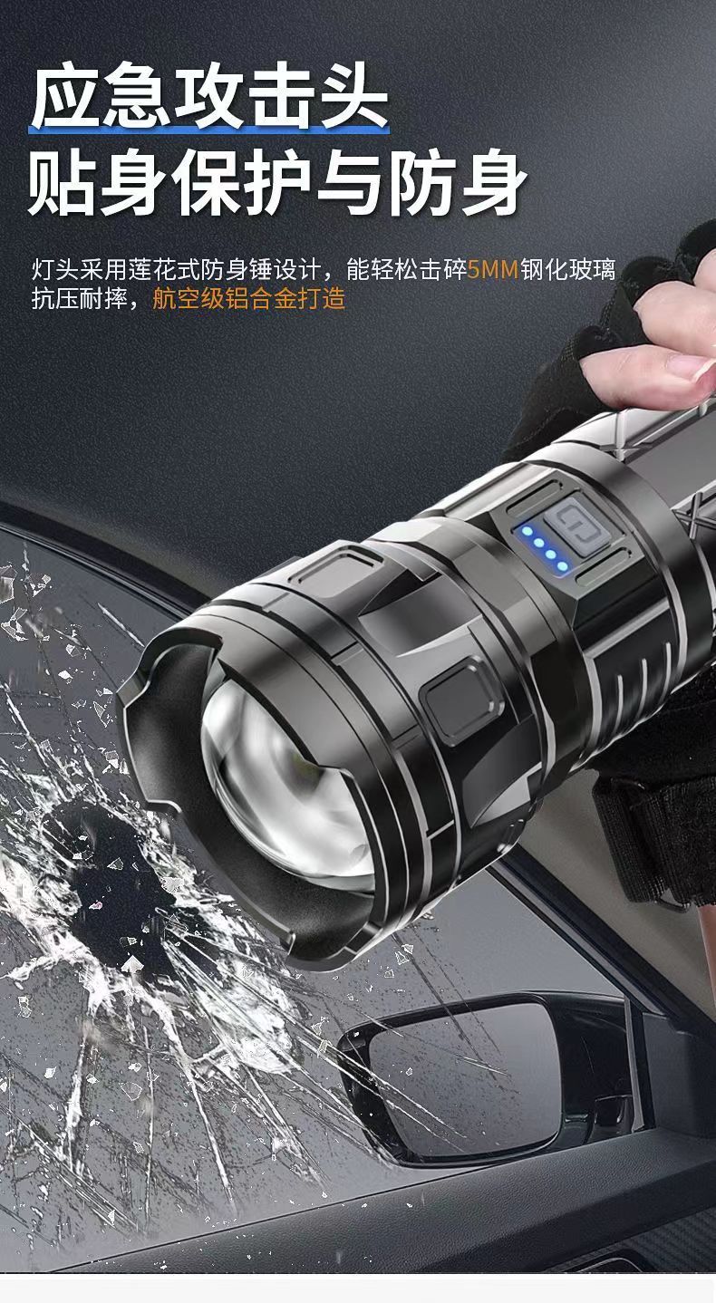 Linterna láser blanco al aire libre tipo-C de carga de emergencia de larga resistencia pantalla de potencia lámpara de iluminación de zoom telescópico