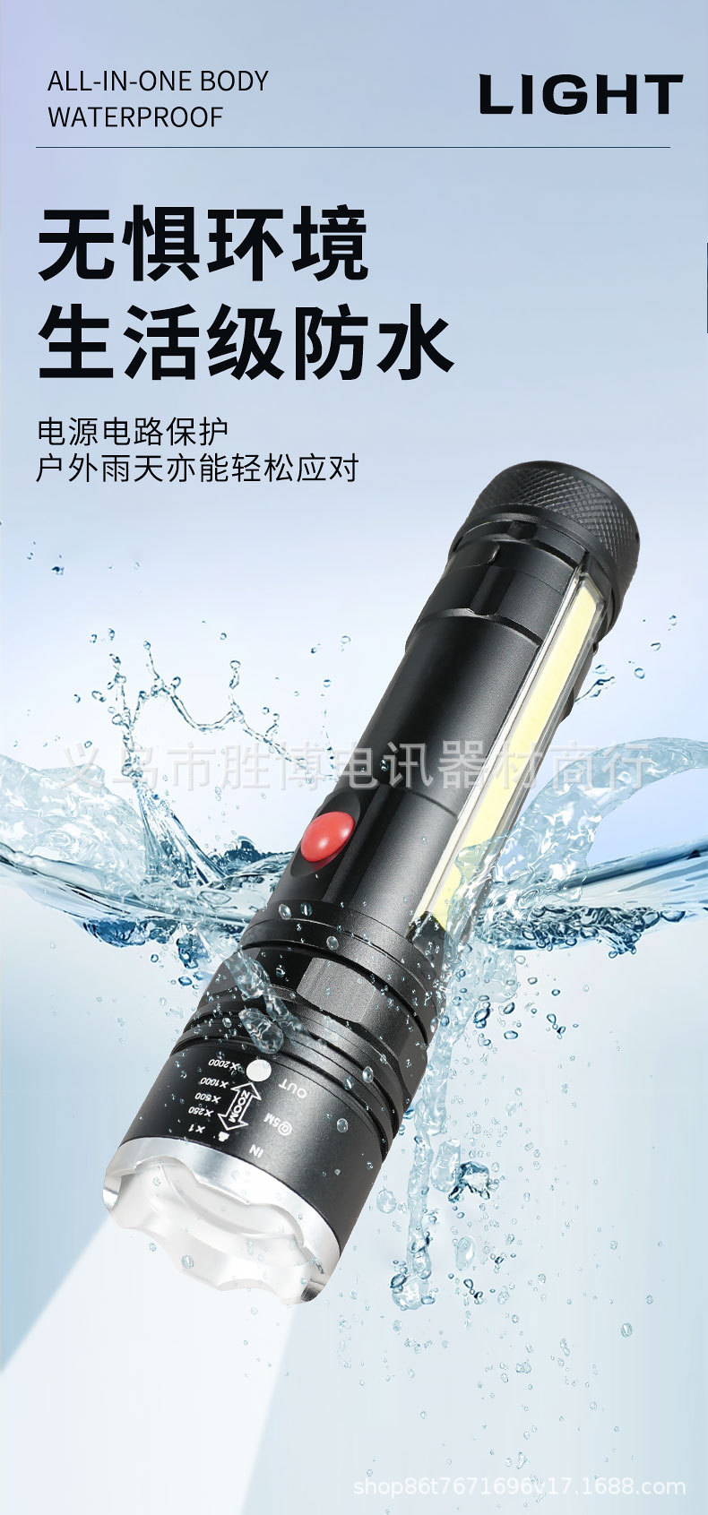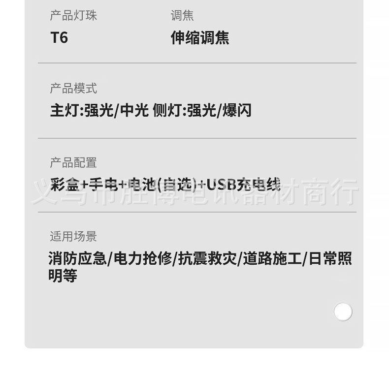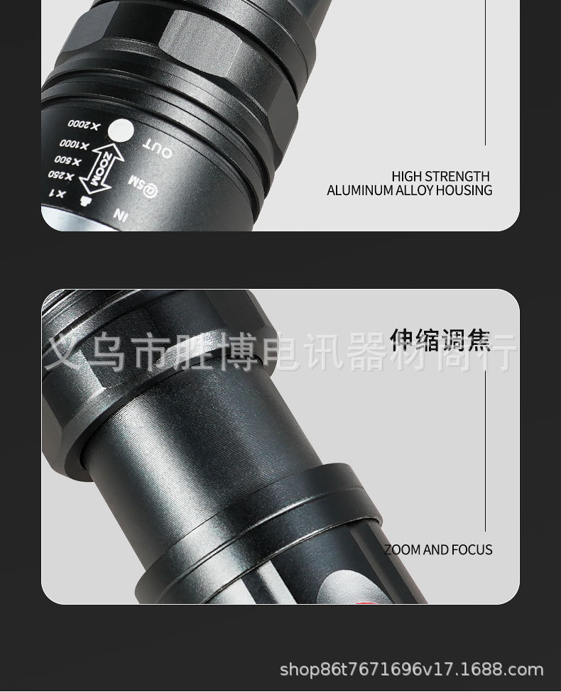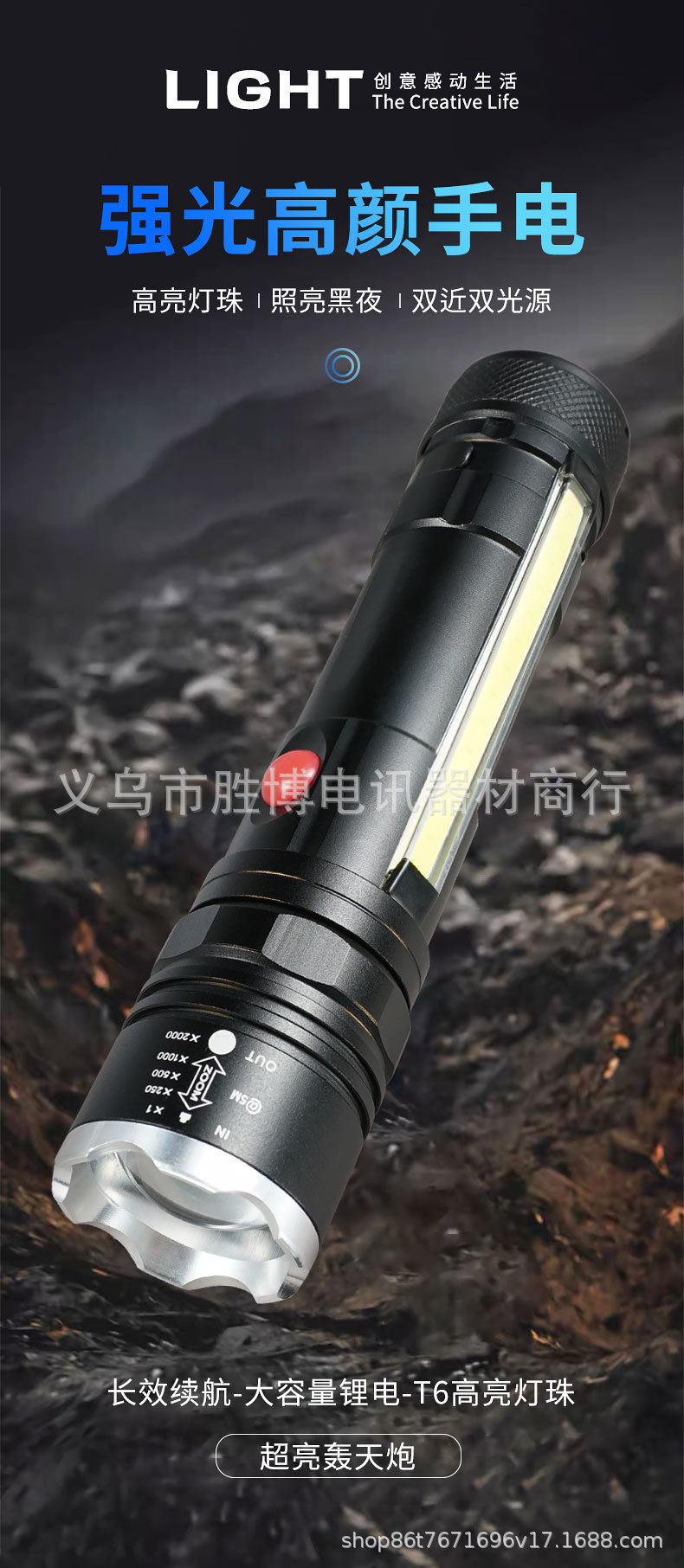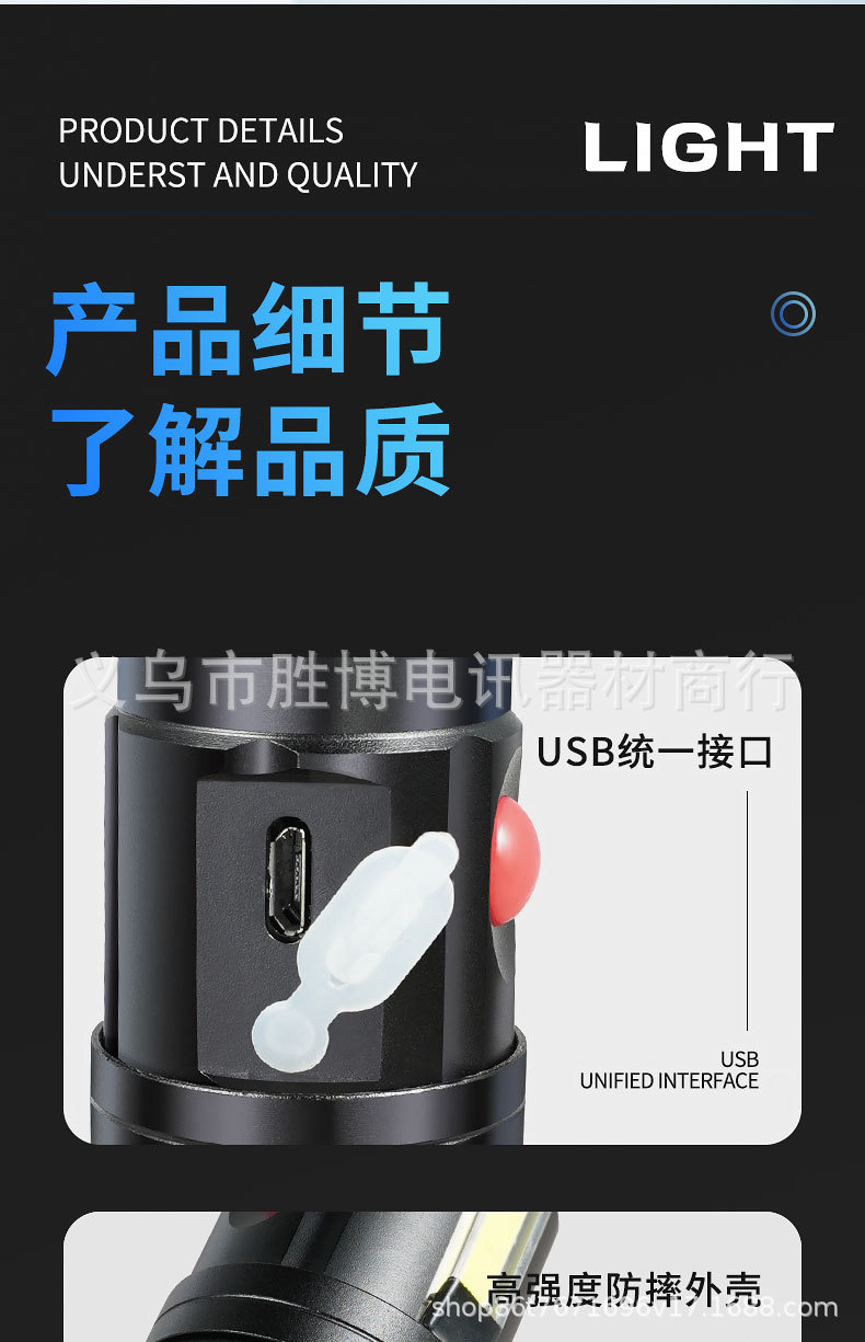 Transfronterizo T6 linterna telescópica zoom luz intensa al aire libre con imán COB lámpara lateral de aleación de aluminio linterna carga USB