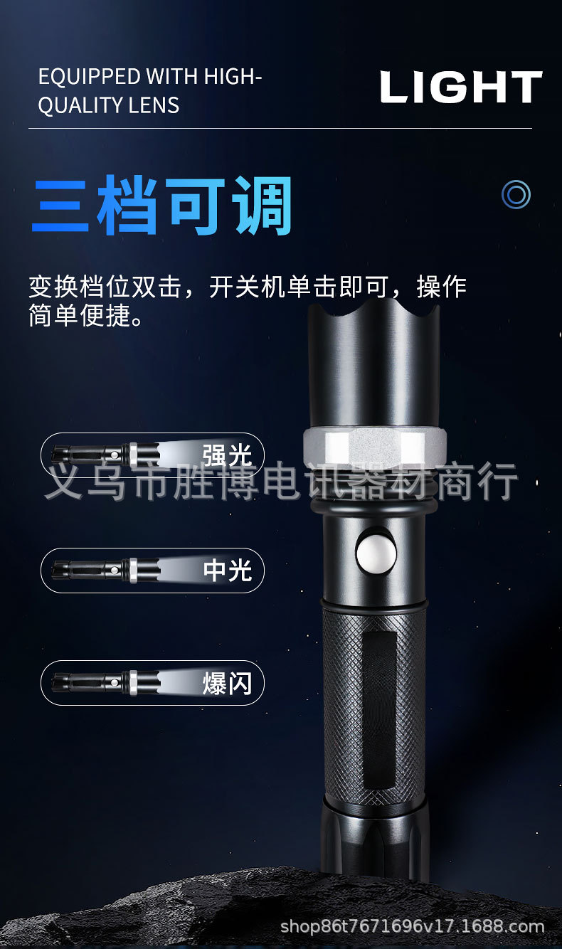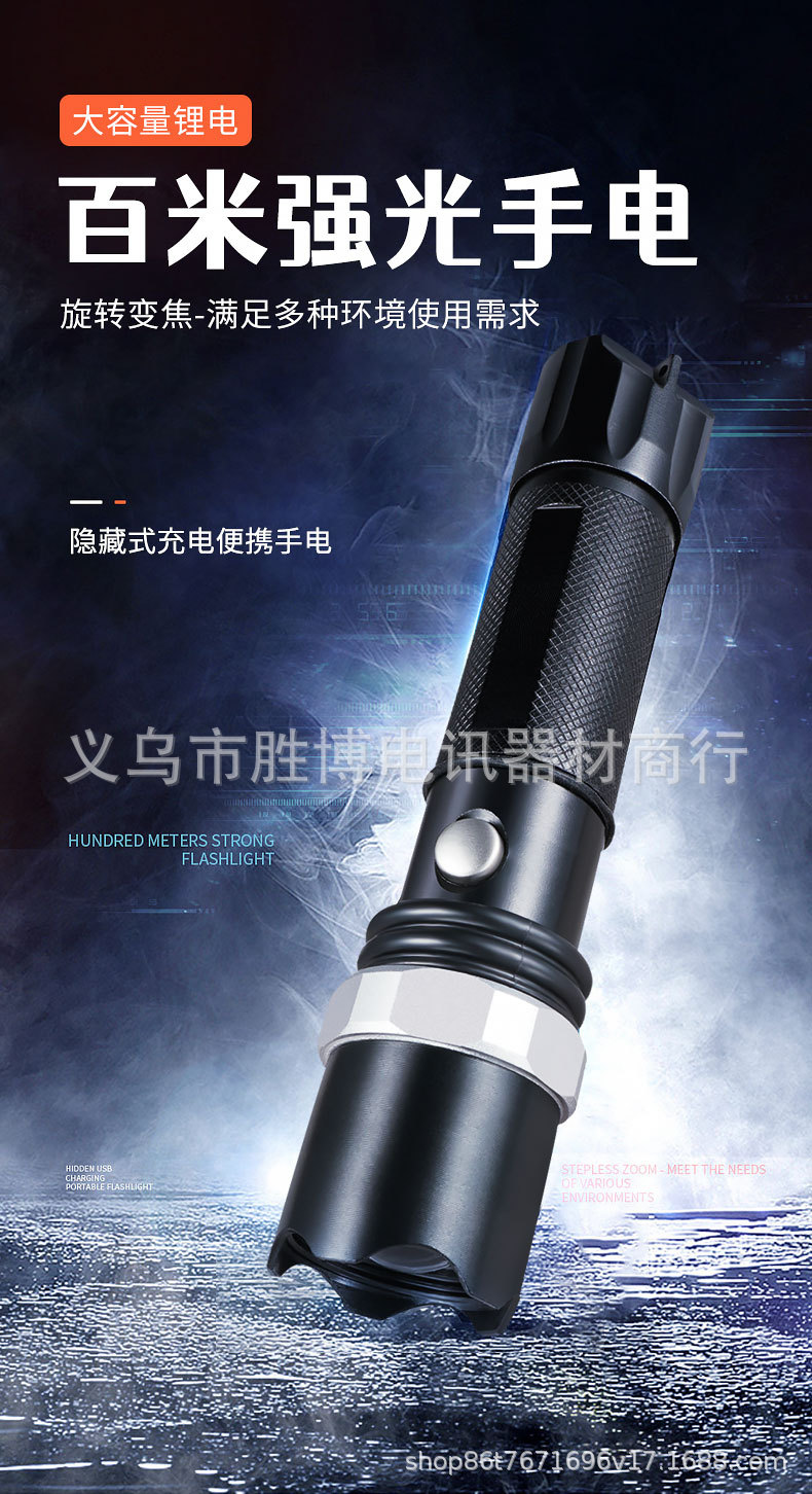 Antorcha de luz de aleación de aluminio LED multifuncional rotación al aire libre zoom portátil antorcha roja recargable